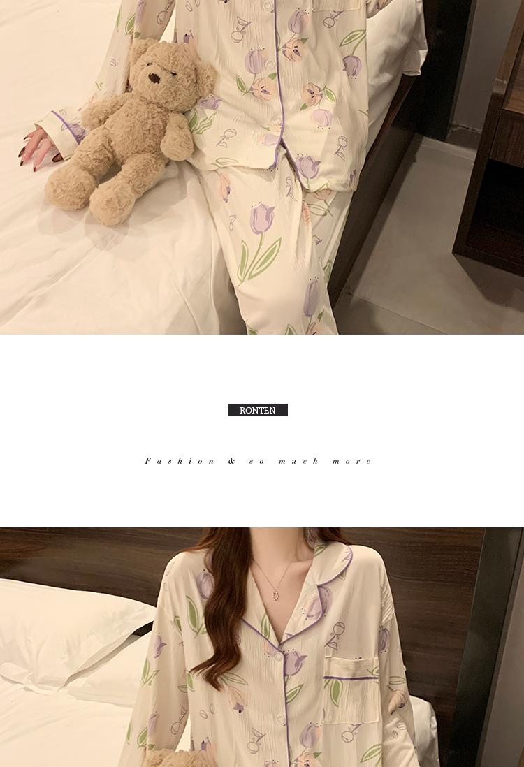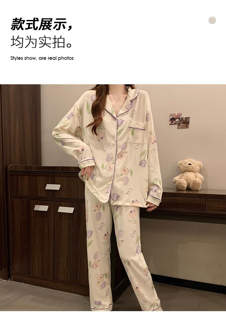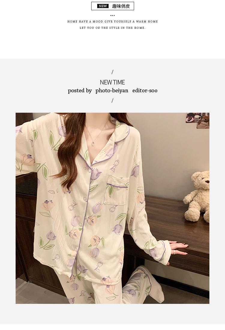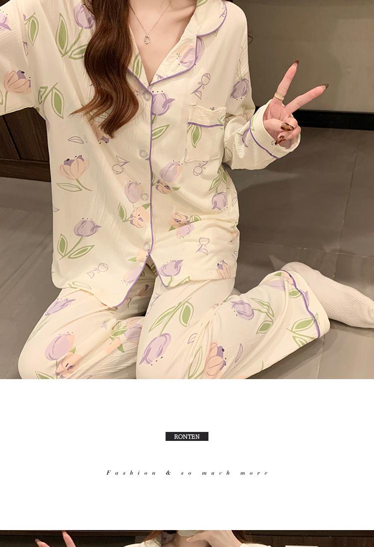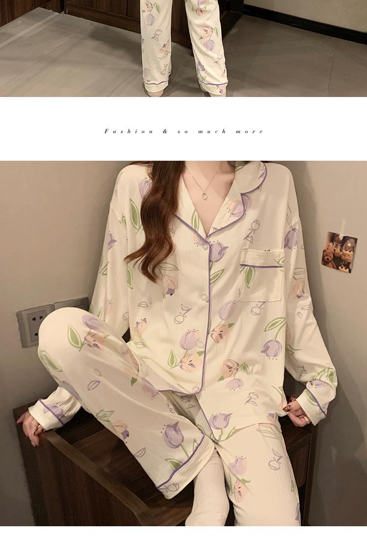 Pijama de manga larga de tela arrugada suave y cómoda para mujer, ropa de casa blanca tulipán para el día de primavera, se puede usar como traje al por mayor