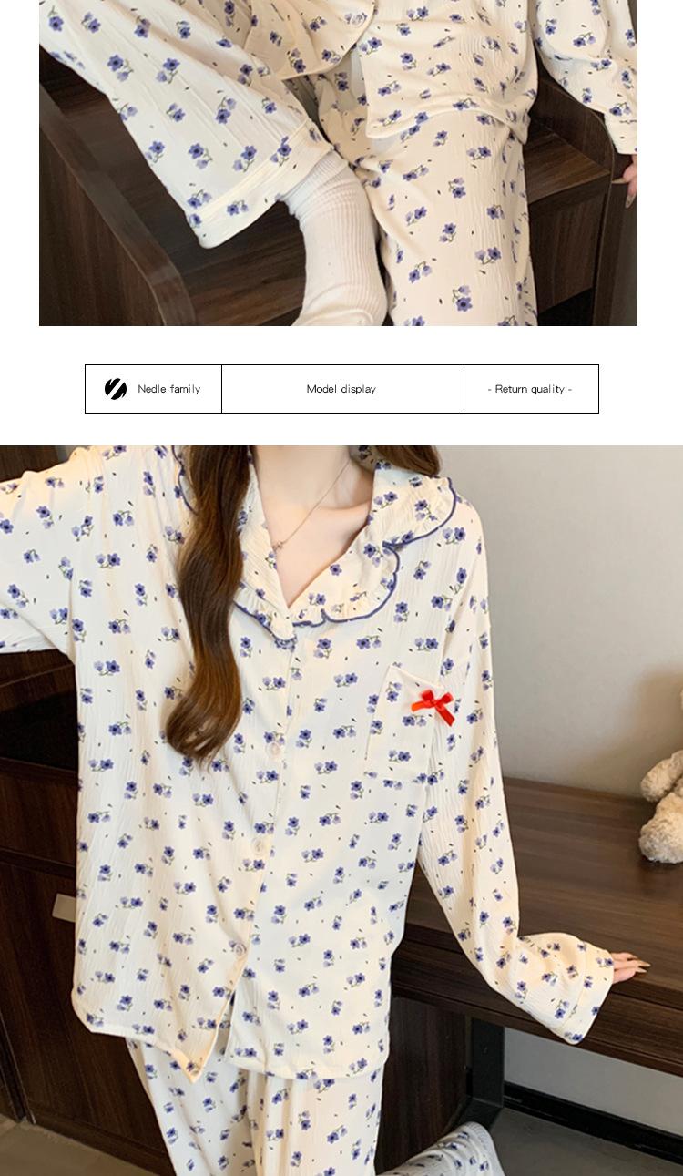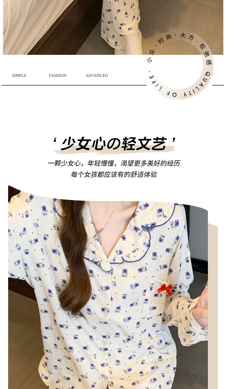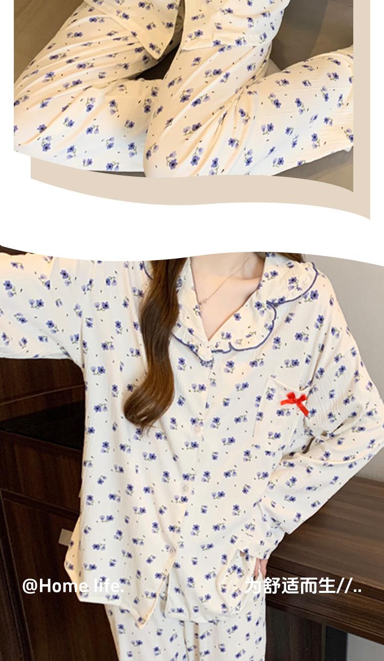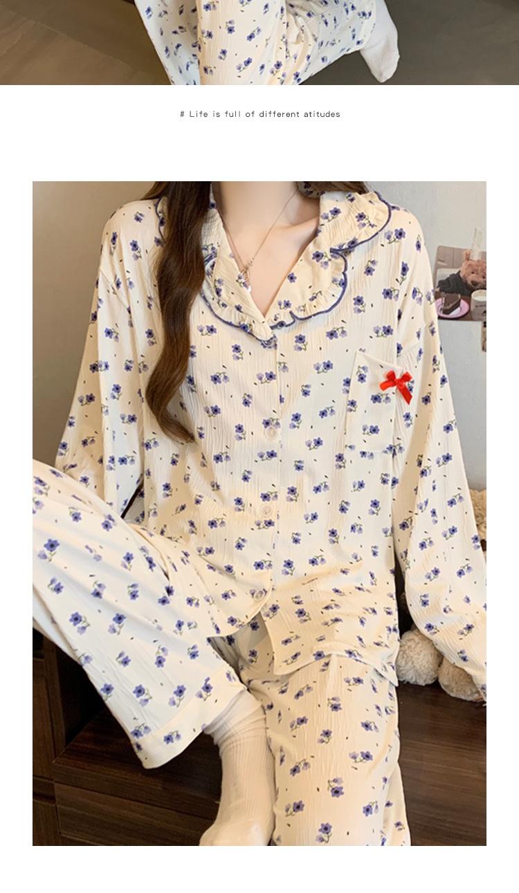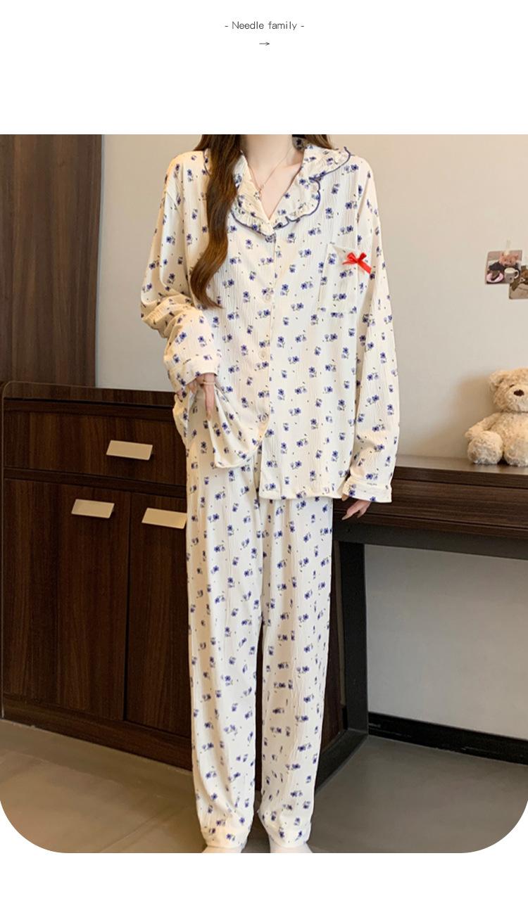 Pijamas florales pastorales para mujer, primavera y otoño, encaje fino con lazo, manga larga, ropa blanca para el hogar, traje de moda al por mayor