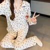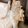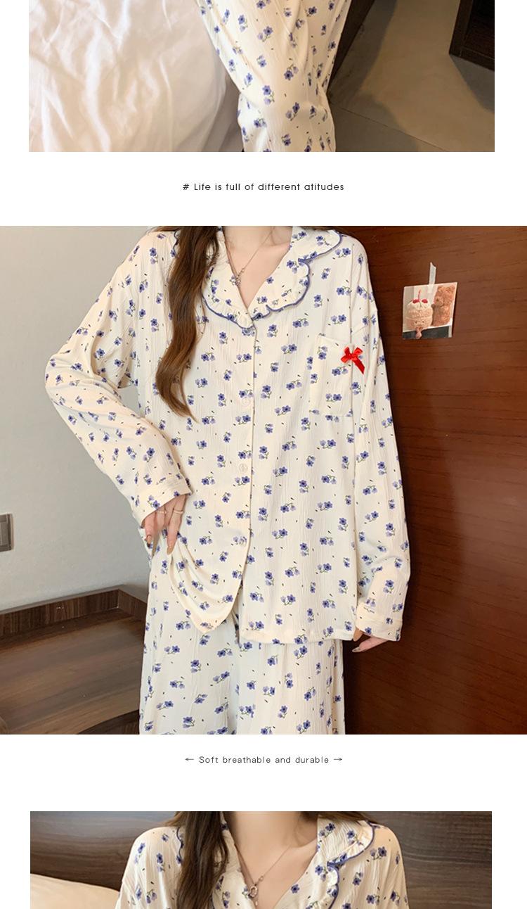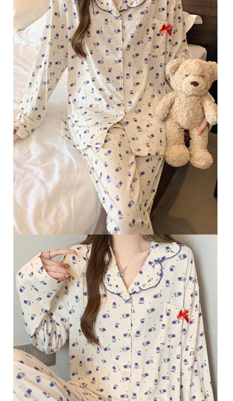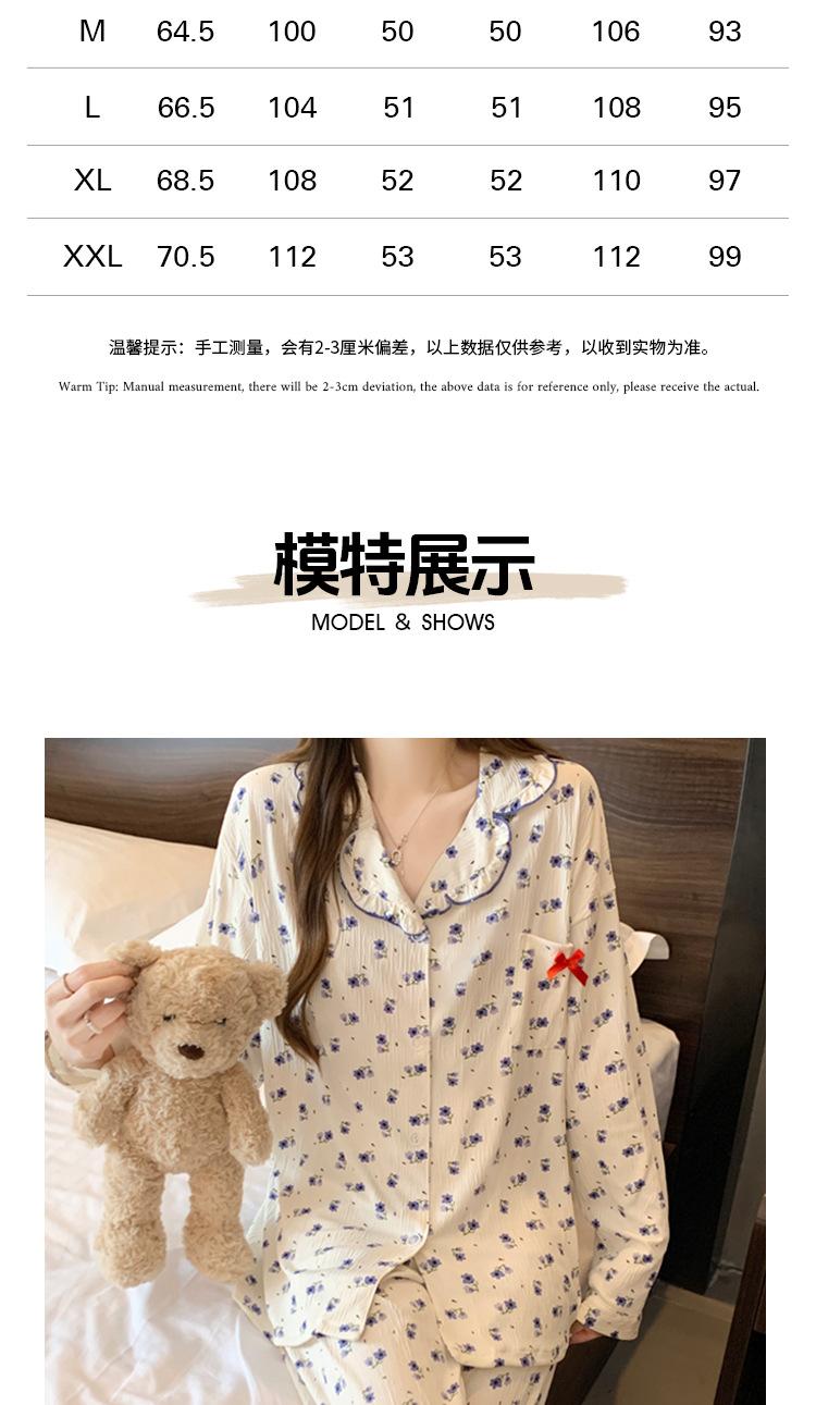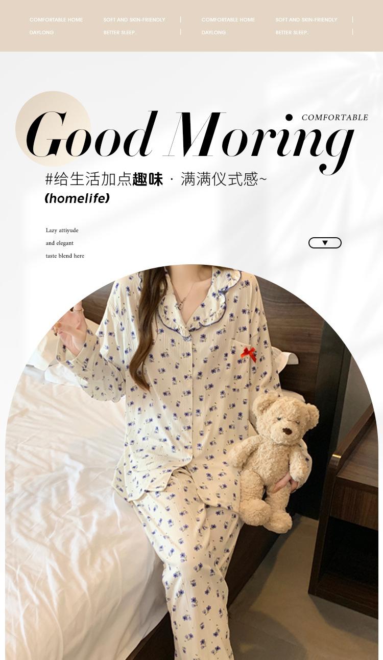 Pijamas florales pastorales para mujer, primavera y otoño, encaje fino con lazo, manga larga, ropa blanca para el hogar, traje de moda al por mayor