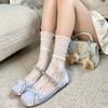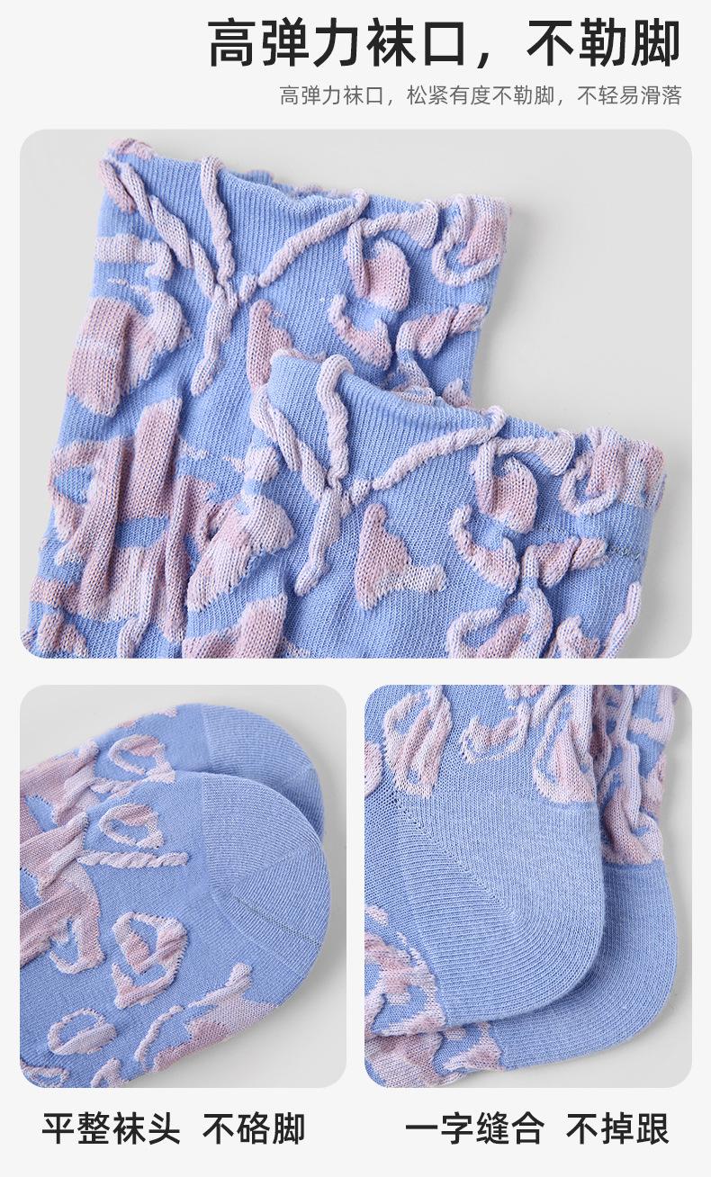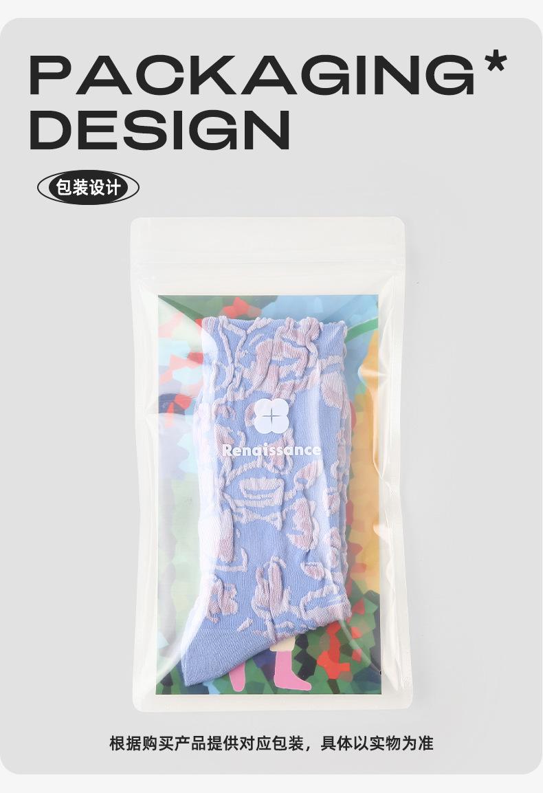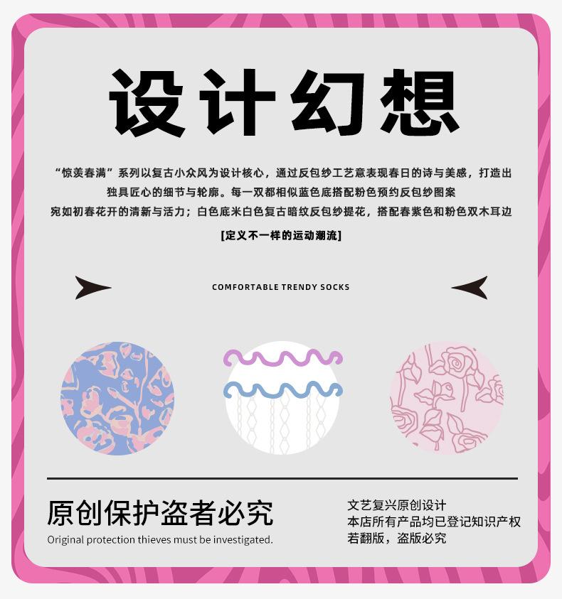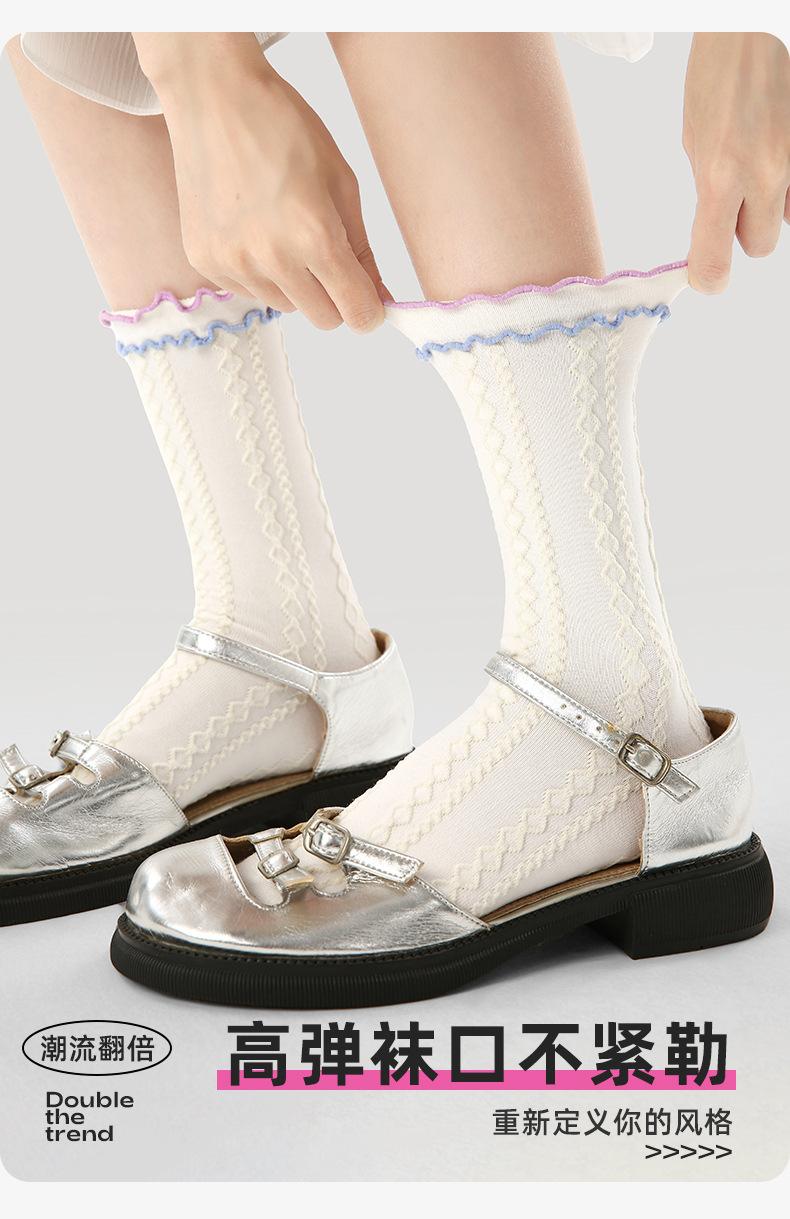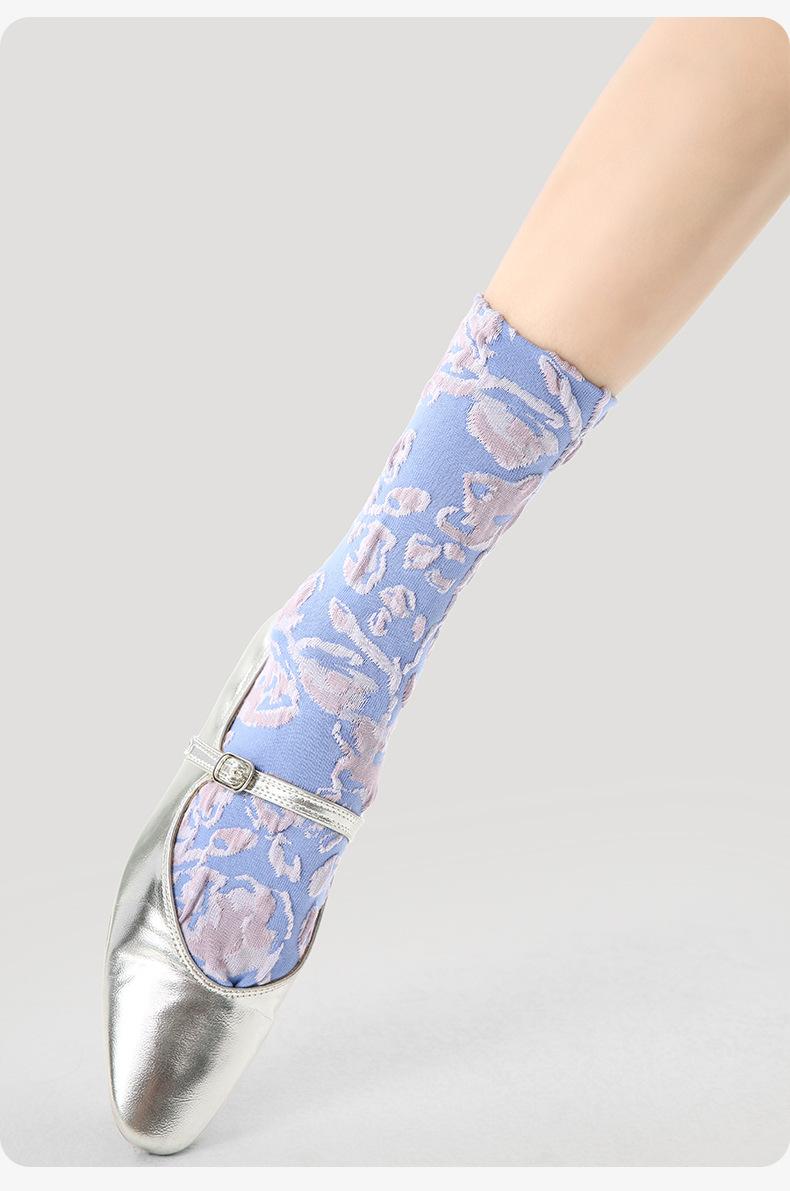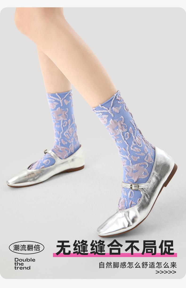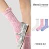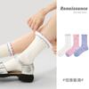 Calcetines de tubo de color liso con flores en relieve de primavera y verano renacentistas, calcetines de princesa de encaje, calcetines de algodón peinado para mujer