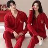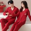 Pijamas de Pareja de Solapa Nuevos de Primavera y Otoño Listos para Usar, Modernos para Mujer de Manga Larga Rojos para Boda, Ropa de Casa para Hombre, Conjunto de Dos Piezas