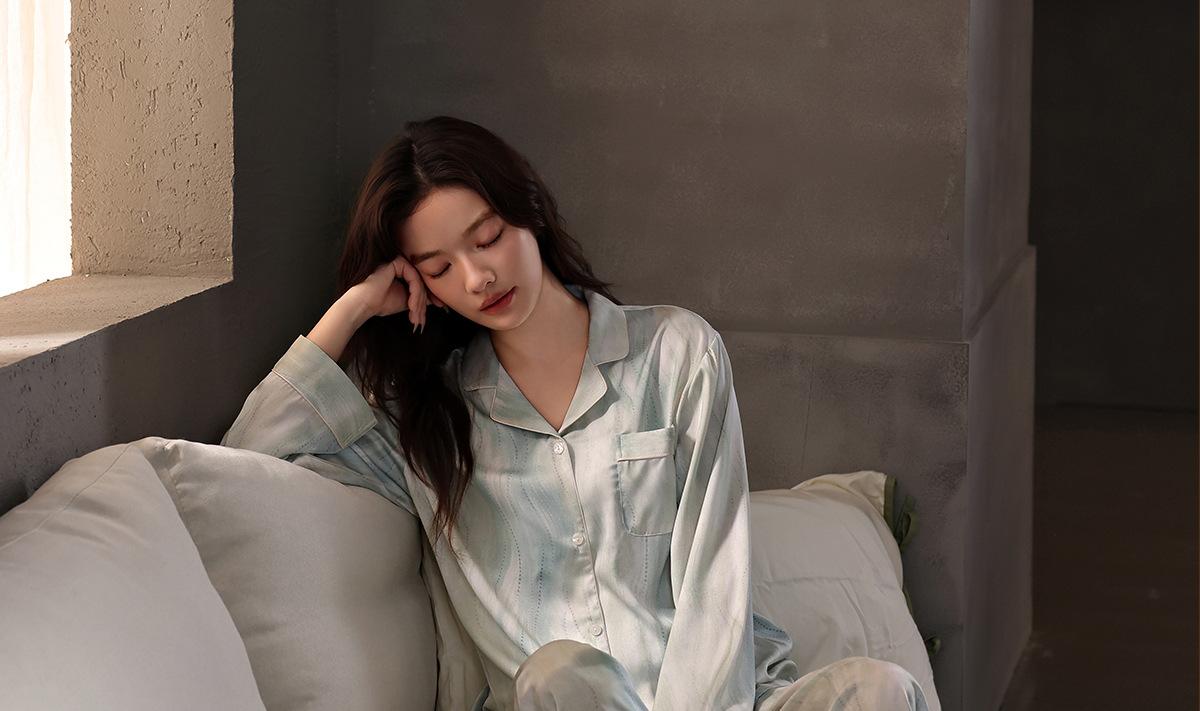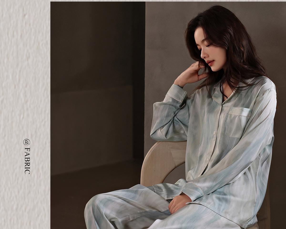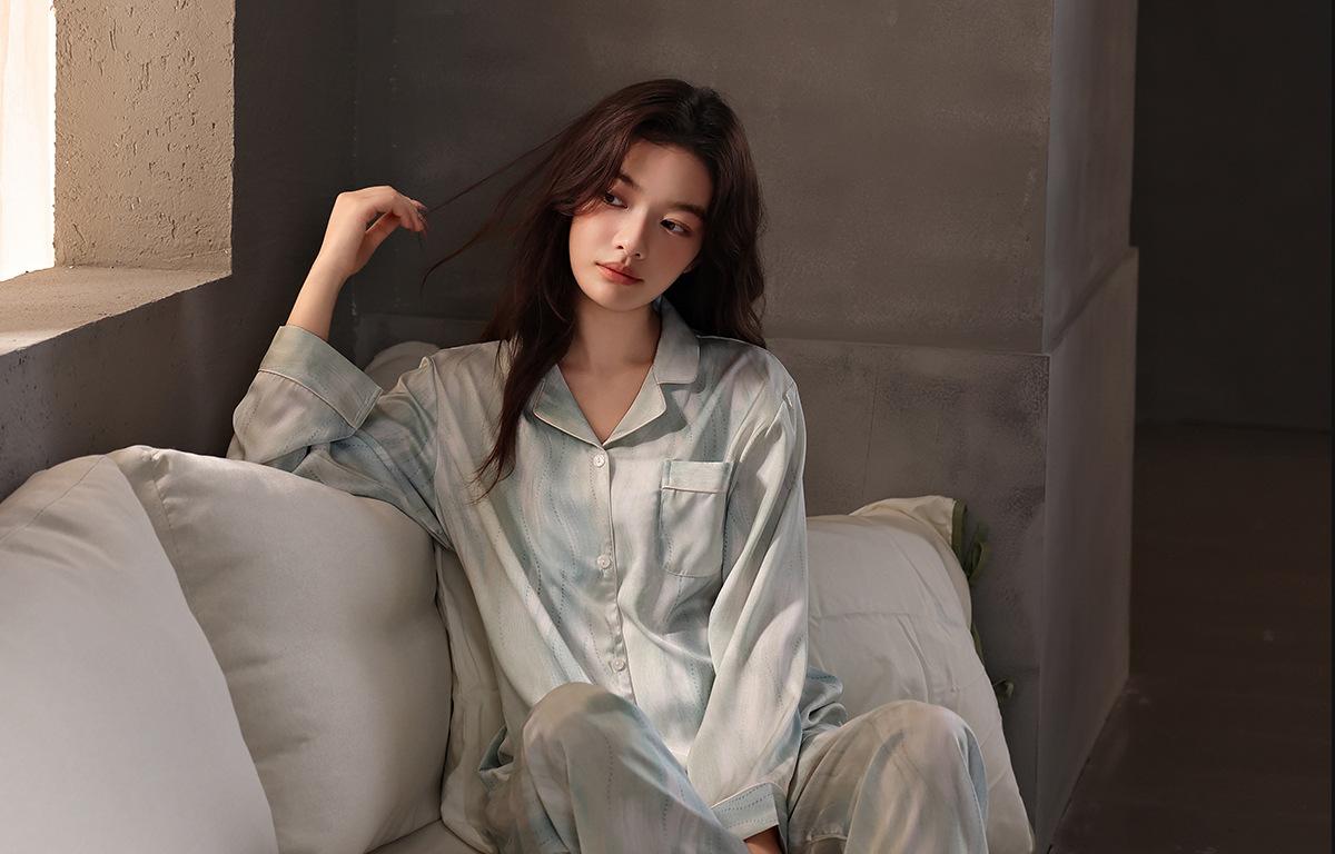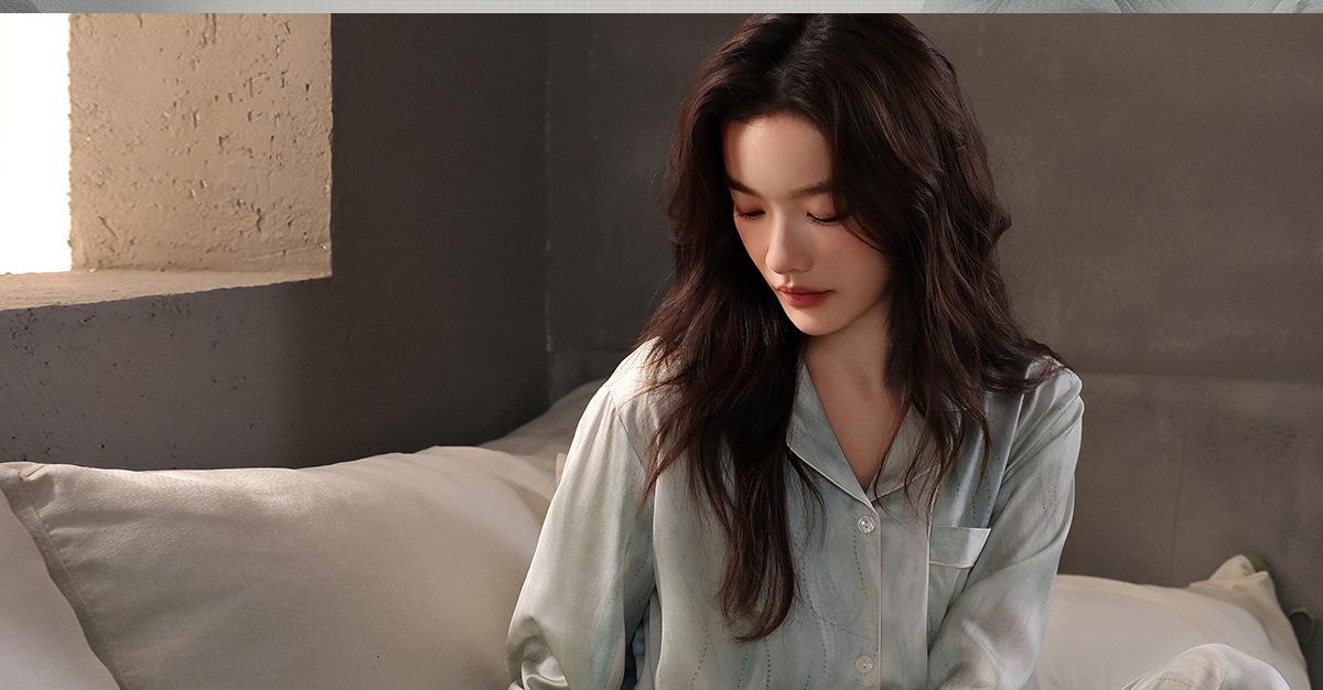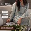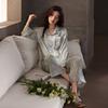 [Seda de hielo] Pijamas de seda de alta calidad para mujer, de verano, de seda de hielo, talla grande, de manga larga, para primavera y otoño, ropa para el hogar.