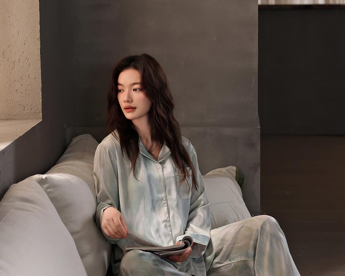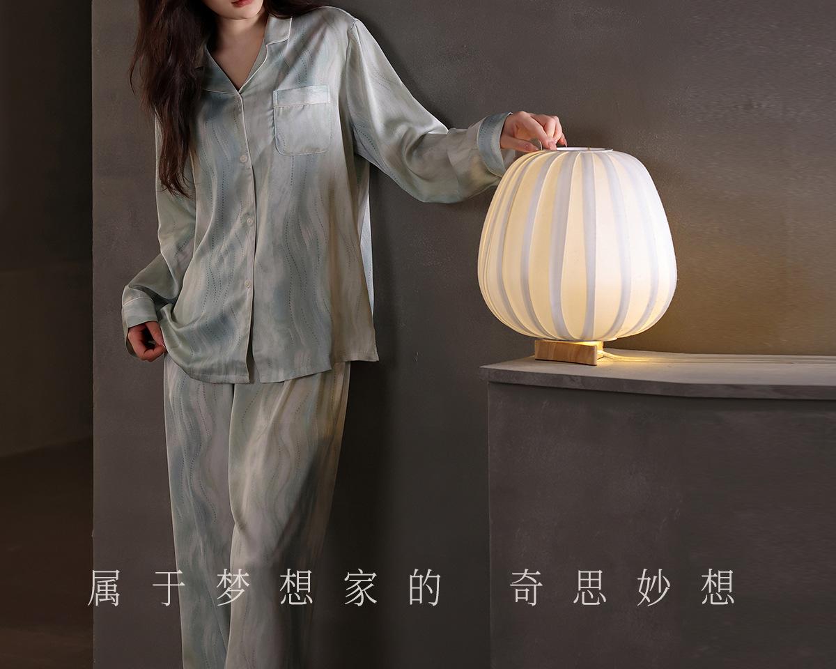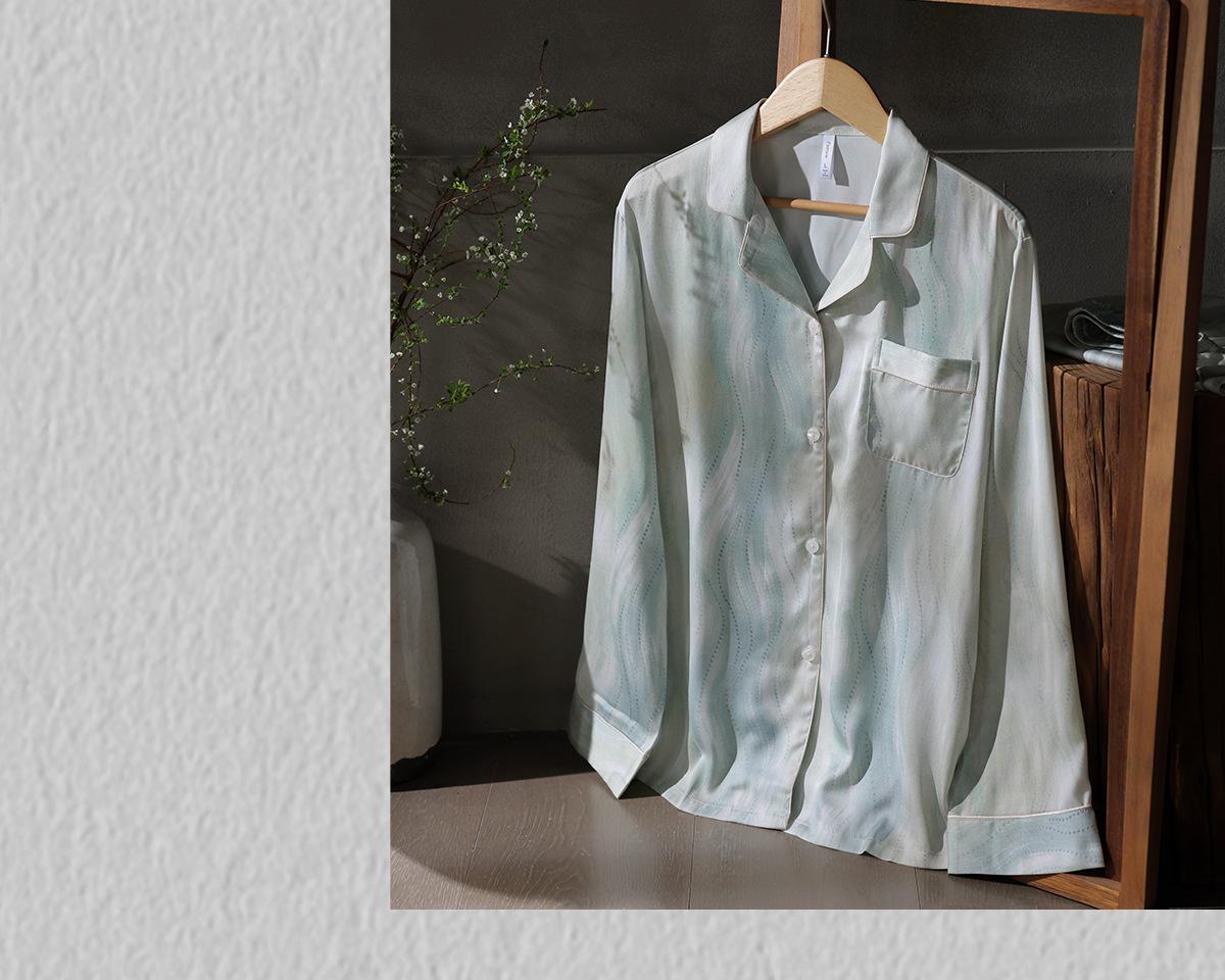 [Seda de hielo] Pijamas de seda de alta calidad para mujer, de verano, de seda de hielo, talla grande, de manga larga, para primavera y otoño, ropa para el hogar.