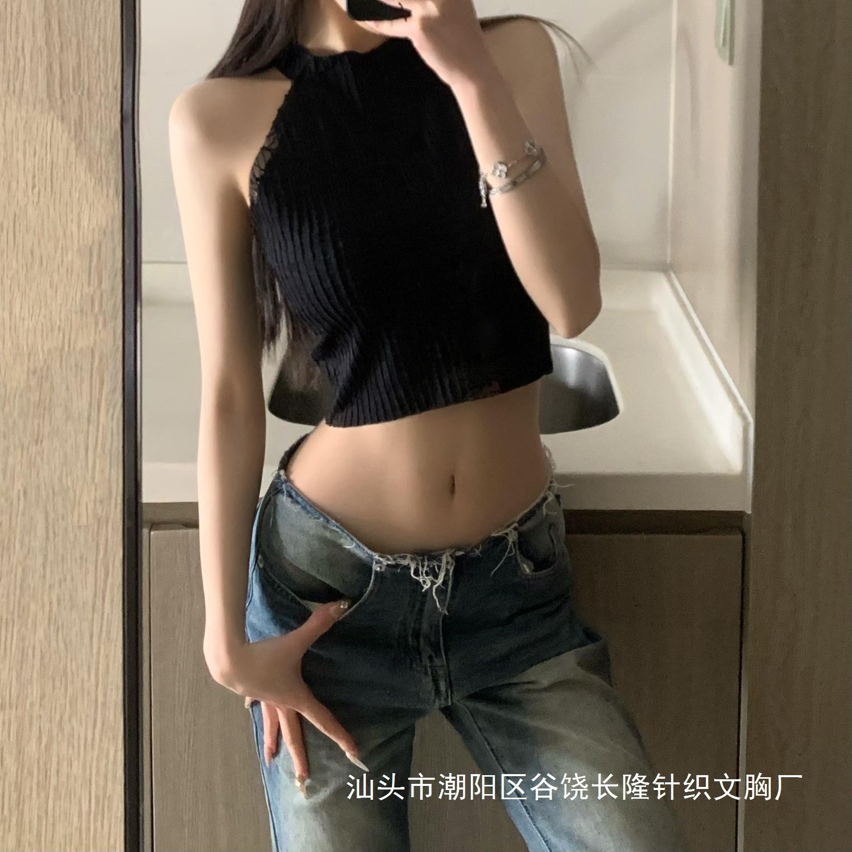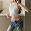 Camisola Sexy Halter sin Espalda con Abertura Hermosa Espalda Sexy Slim Ropa Exterior Corta Camisola Top con Almohadillas para el Busto