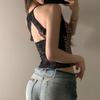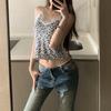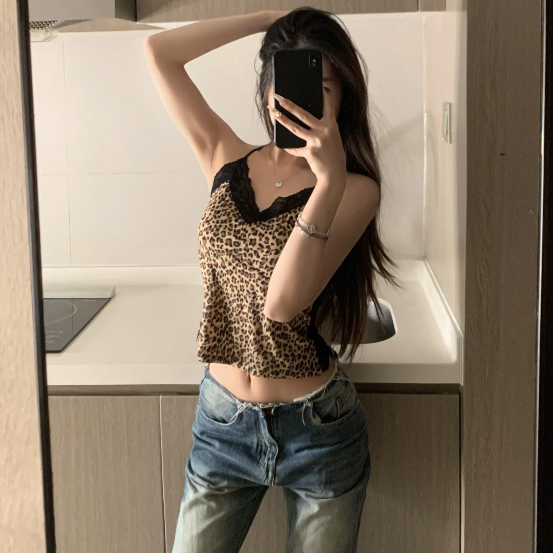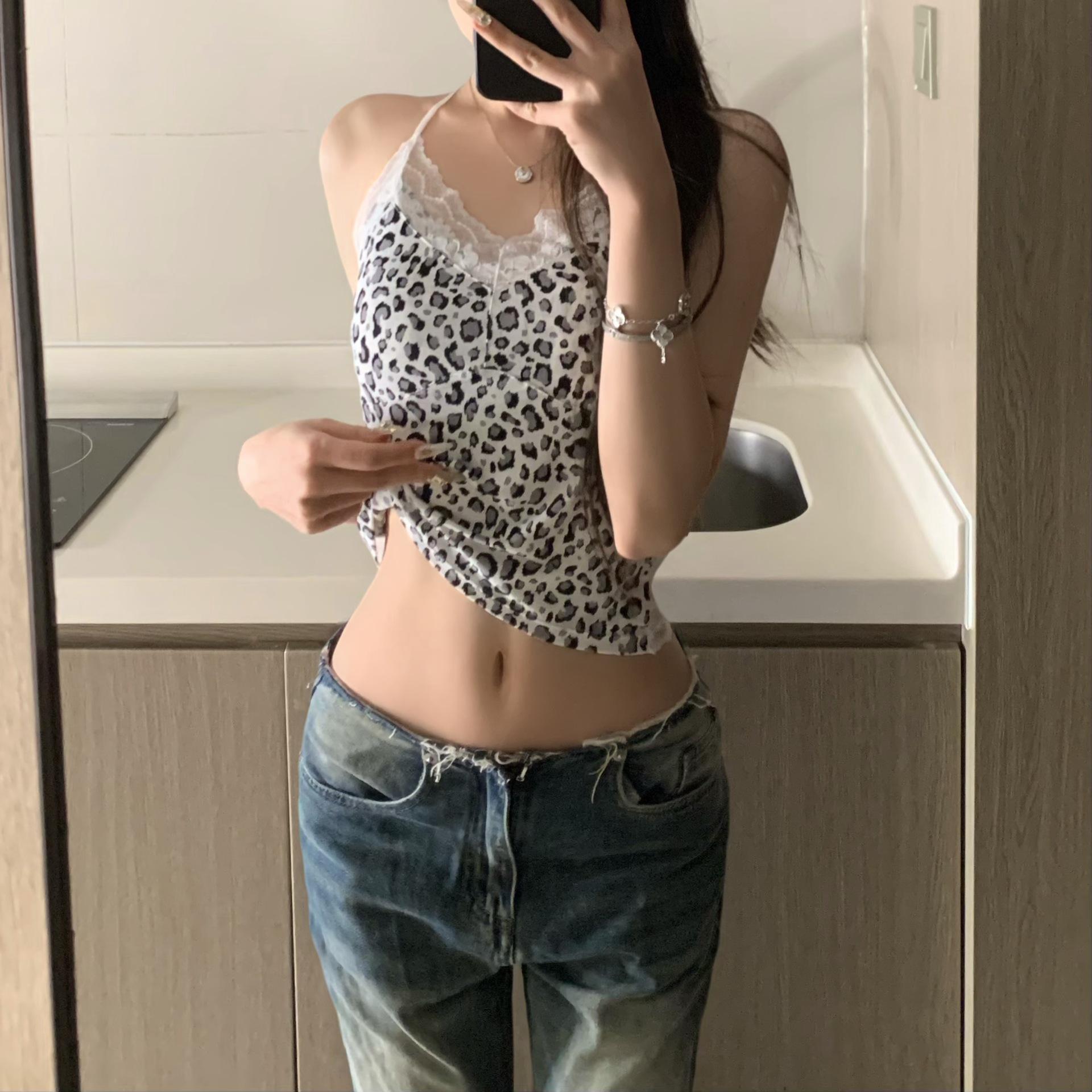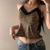 Nuevo Estilo Americano Spice Girl Encaje Sexy Estampado Leopardo Hermoso Espalda Descubierta Tirantes Ajustados Adelgazante con Almohadilla en el Pecho Interior Puro Top Corto