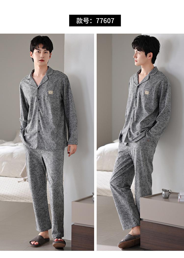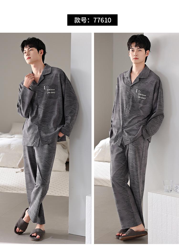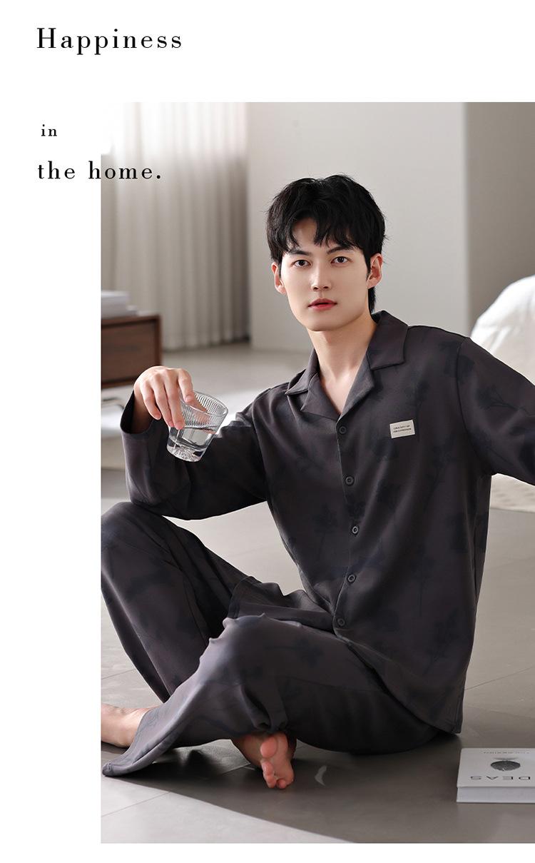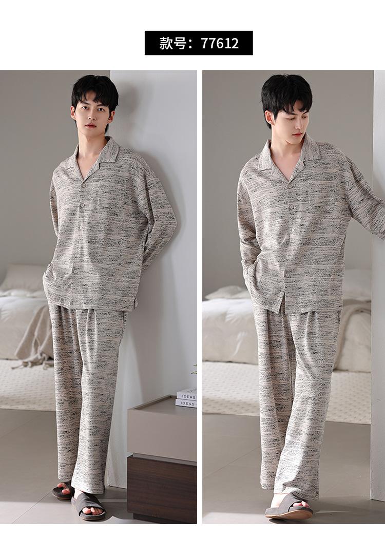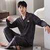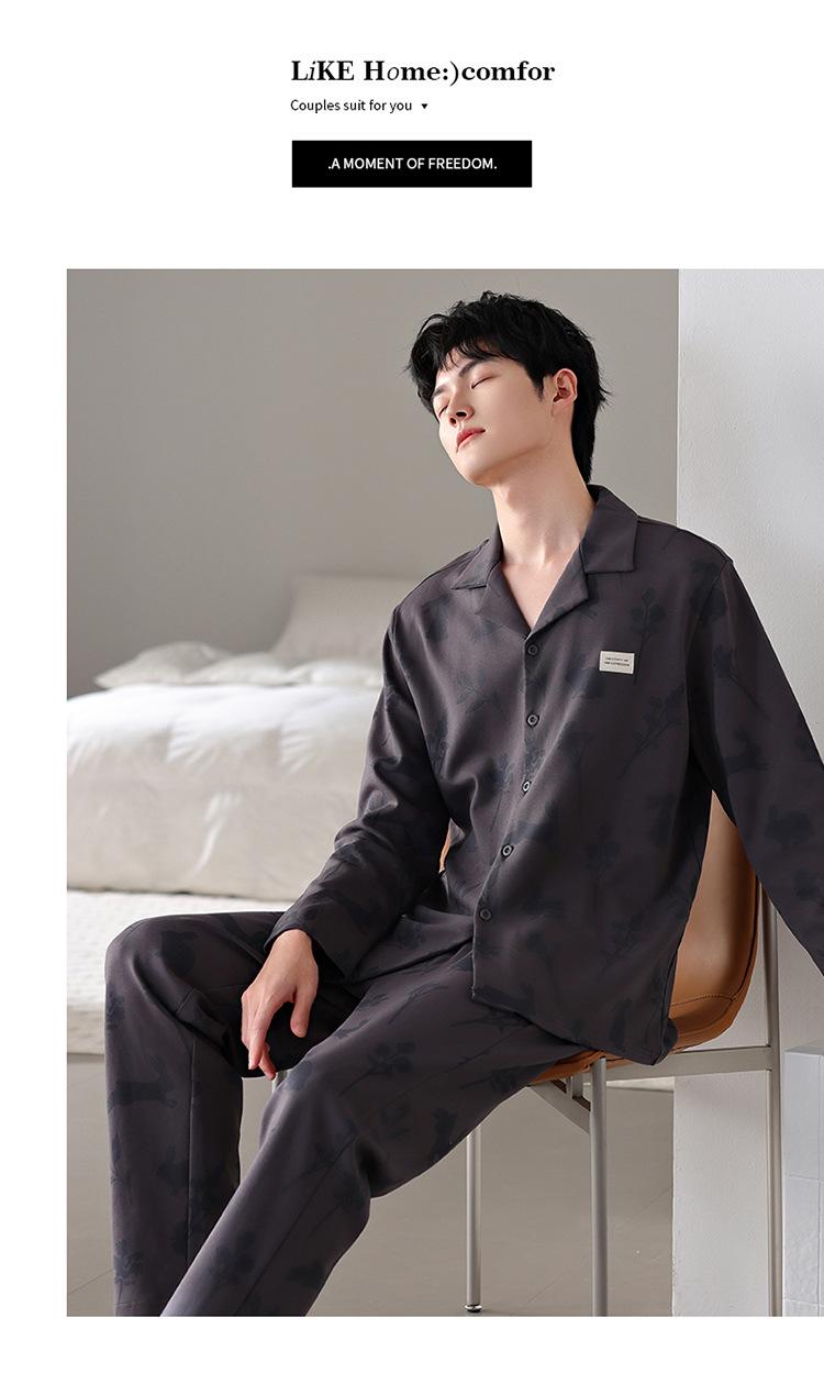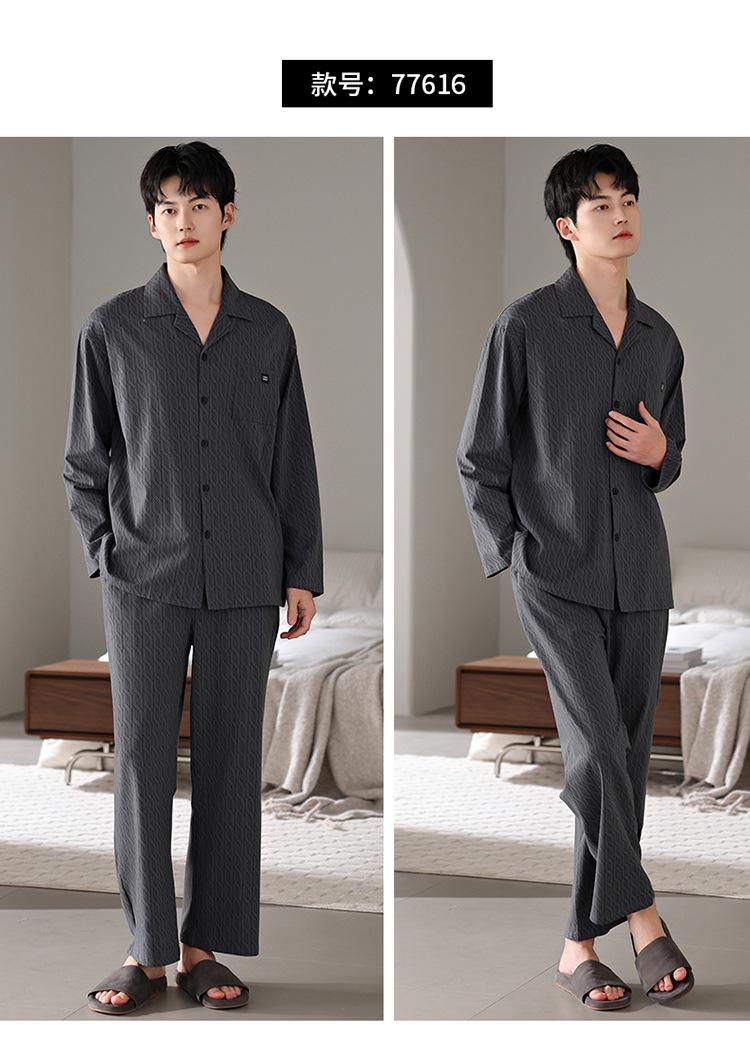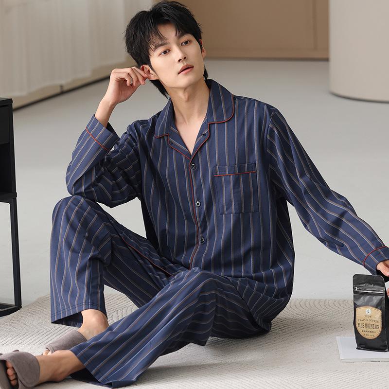 Pijama de Algodón Nuevo para Hombre Primavera y Otoño Manga Larga Solapa Cárdigan Sencillo Casual Traje Ropa de Casa Se Puede Usar