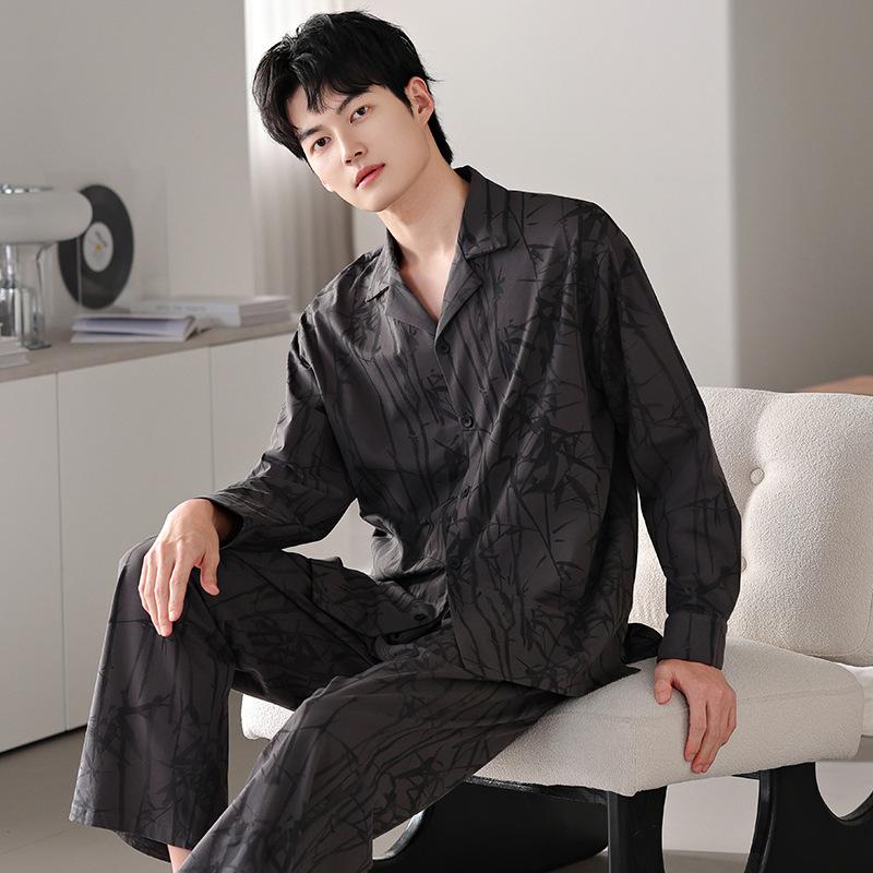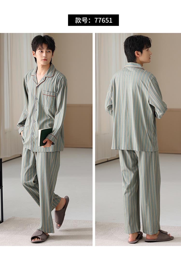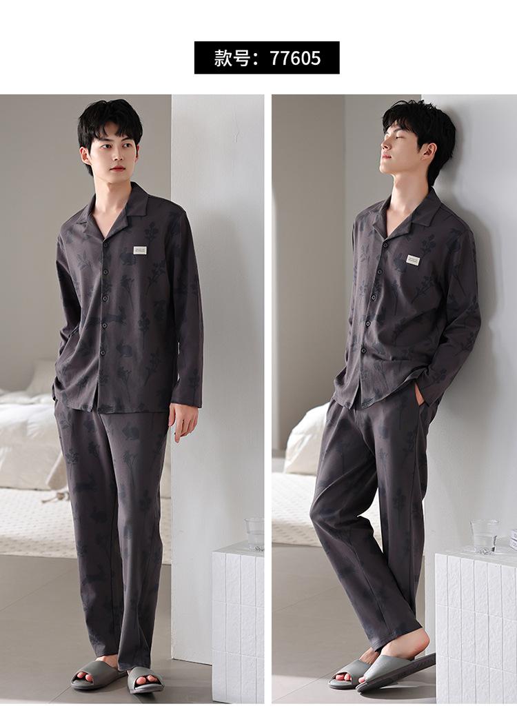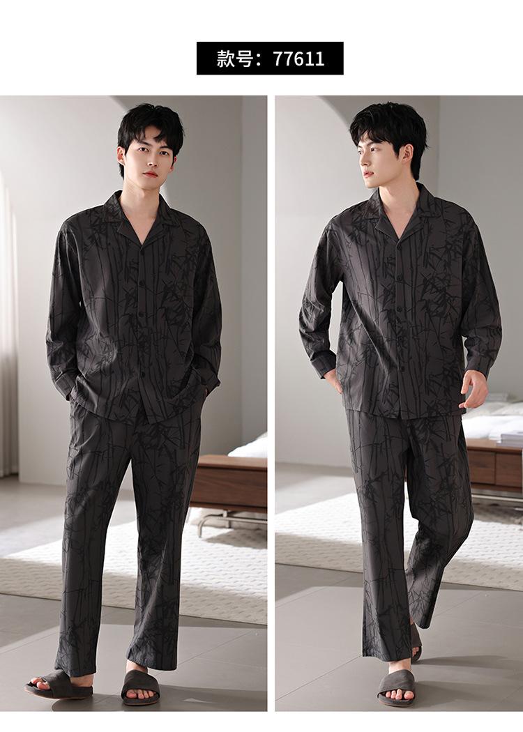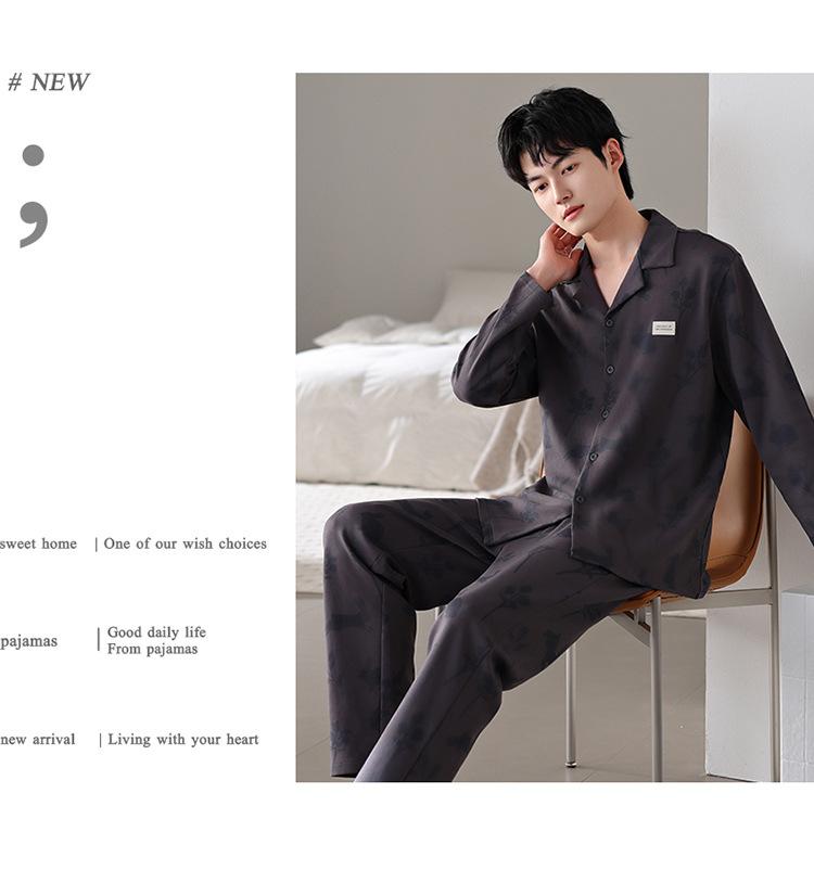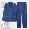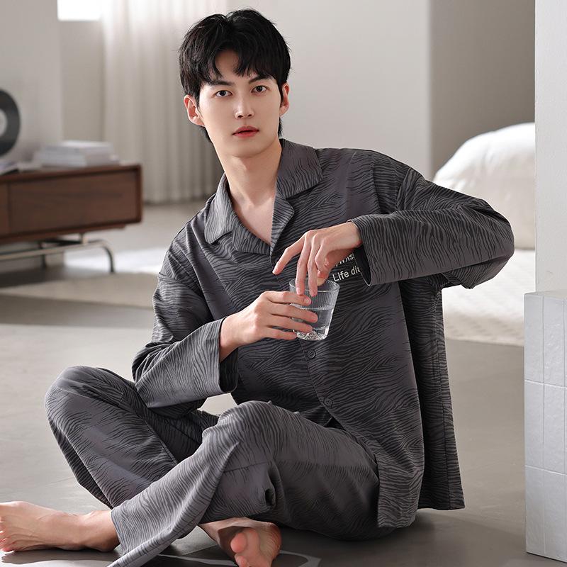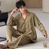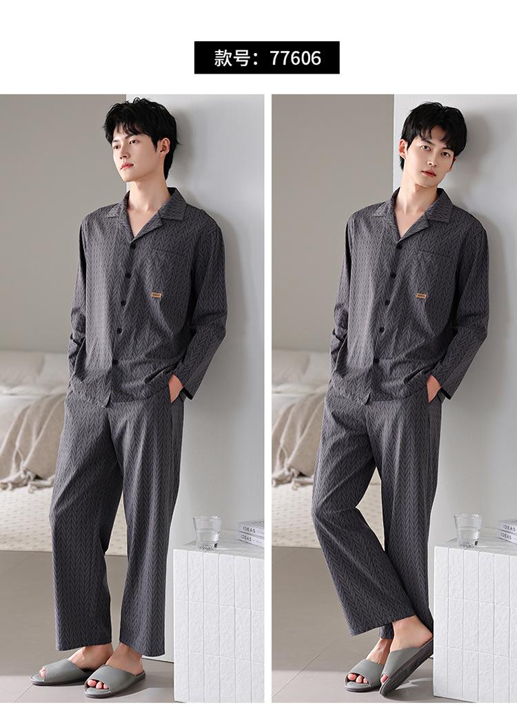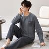 Pijama de Algodón Nuevo para Hombre Primavera y Otoño Manga Larga Solapa Cárdigan Sencillo Casual Traje Ropa de Casa Se Puede Usar