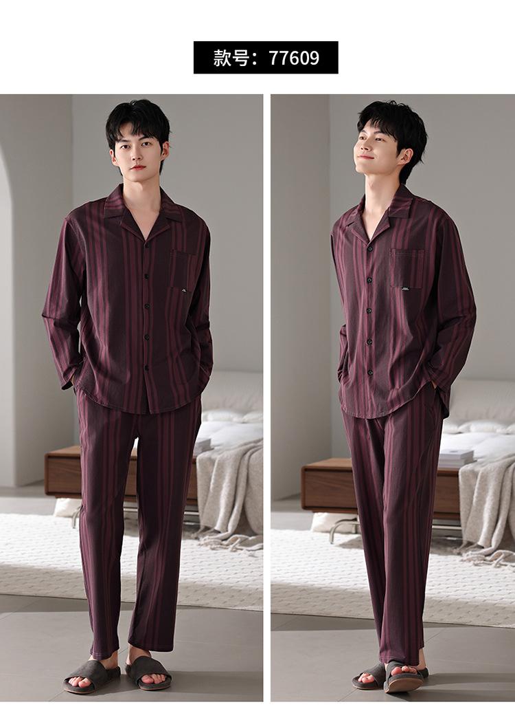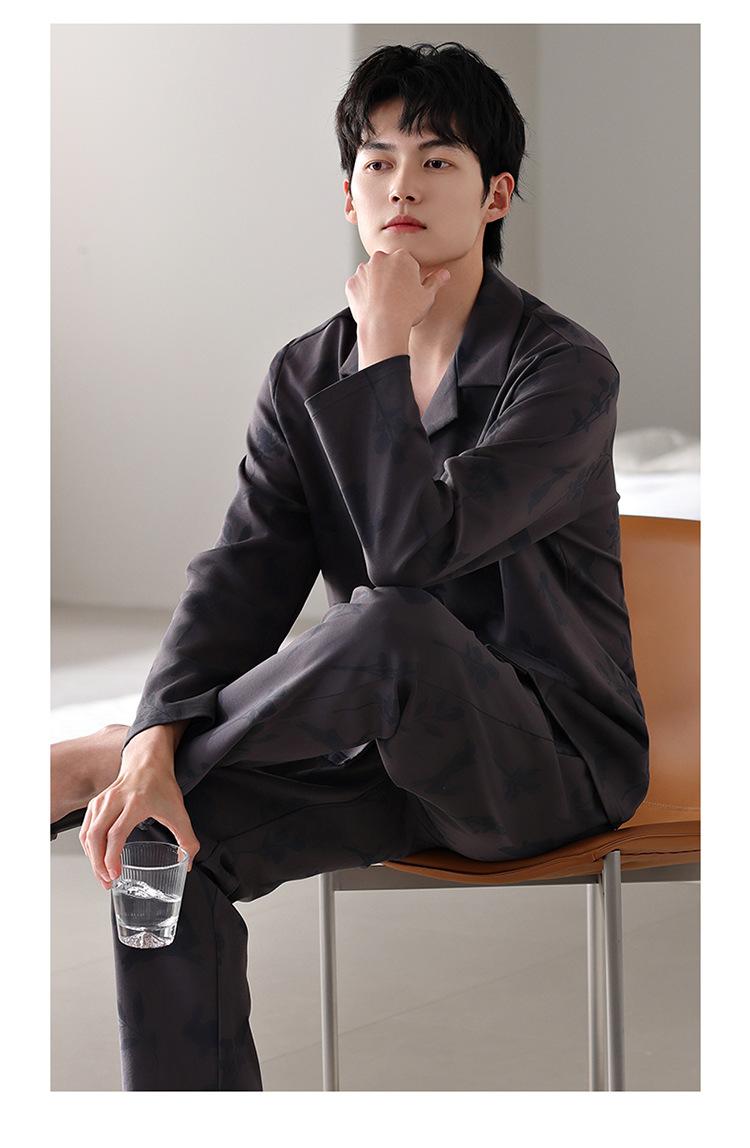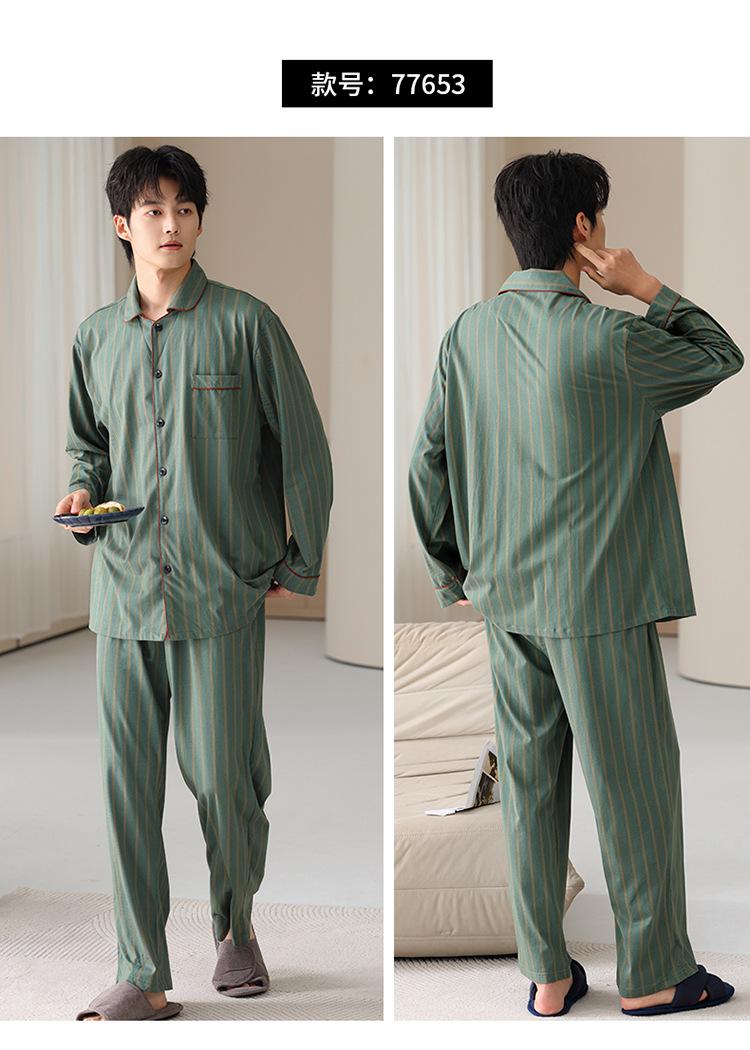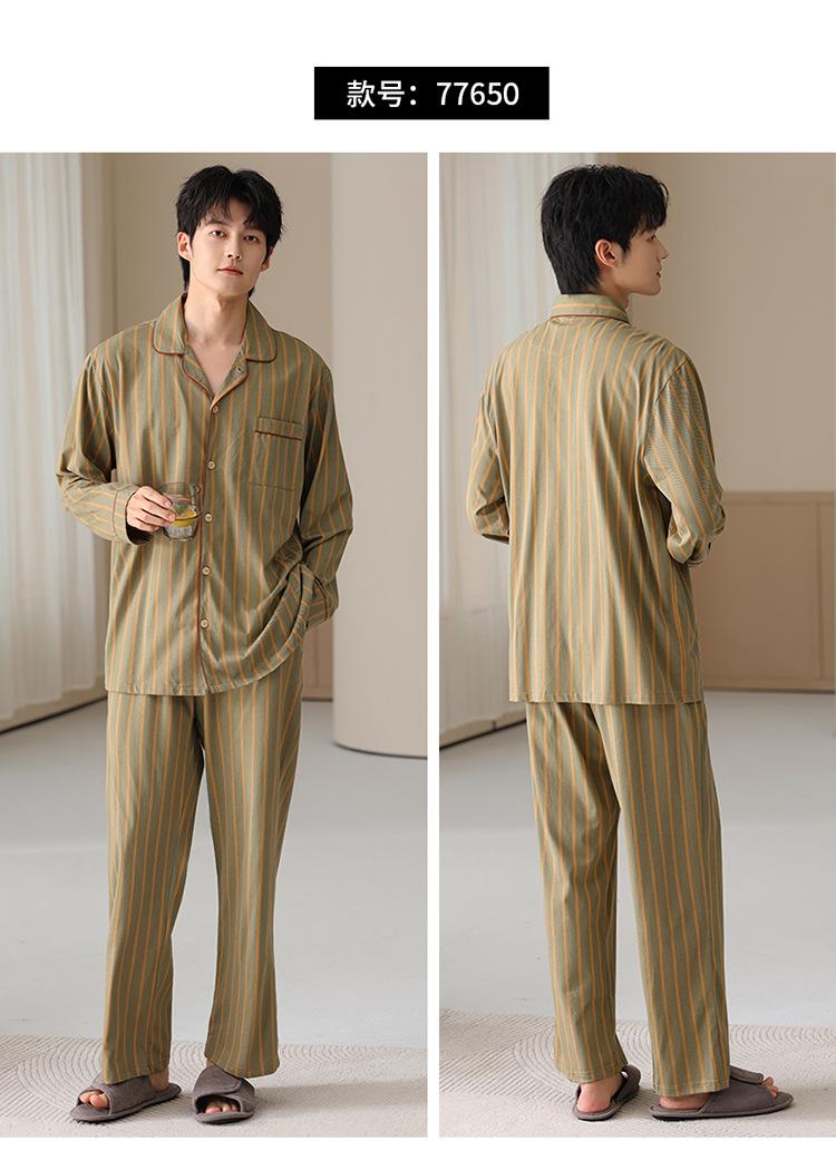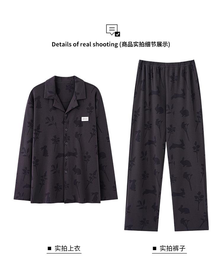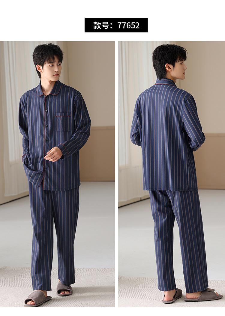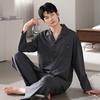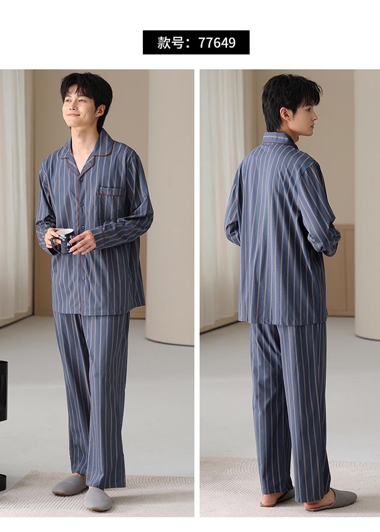 Pijama de Algodón Nuevo para Hombre Primavera y Otoño Manga Larga Solapa Cárdigan Sencillo Casual Traje Ropa de Casa Se Puede Usar