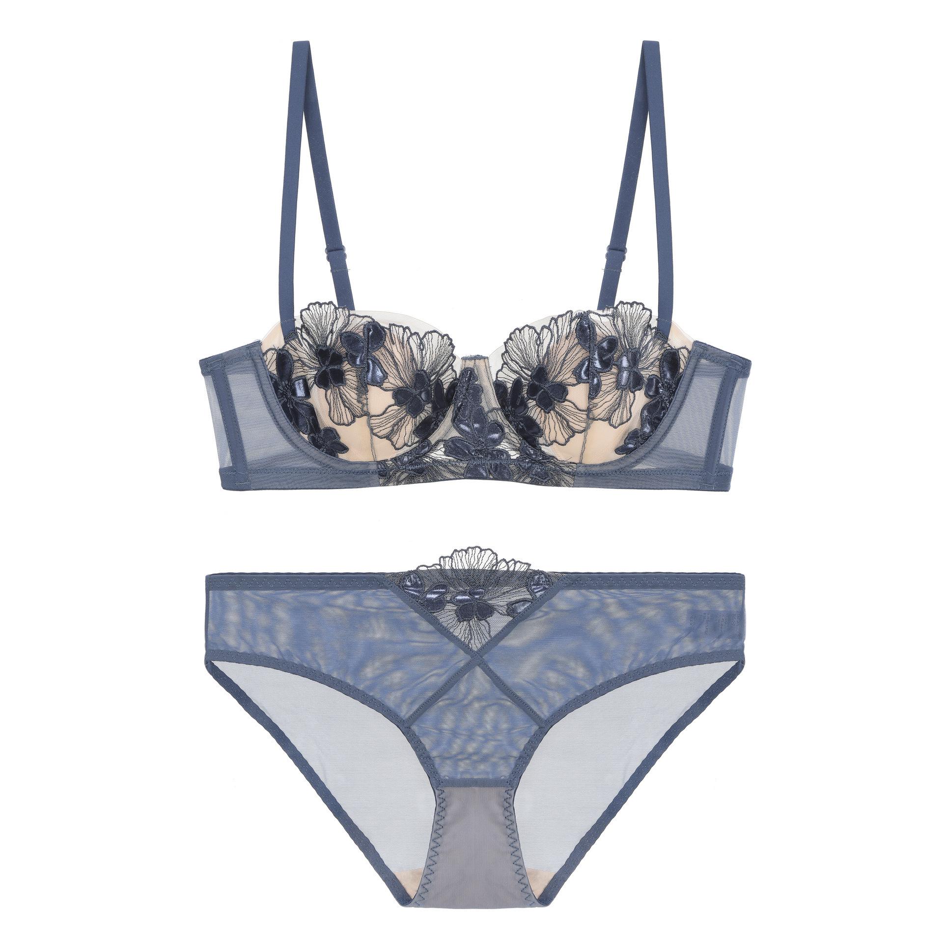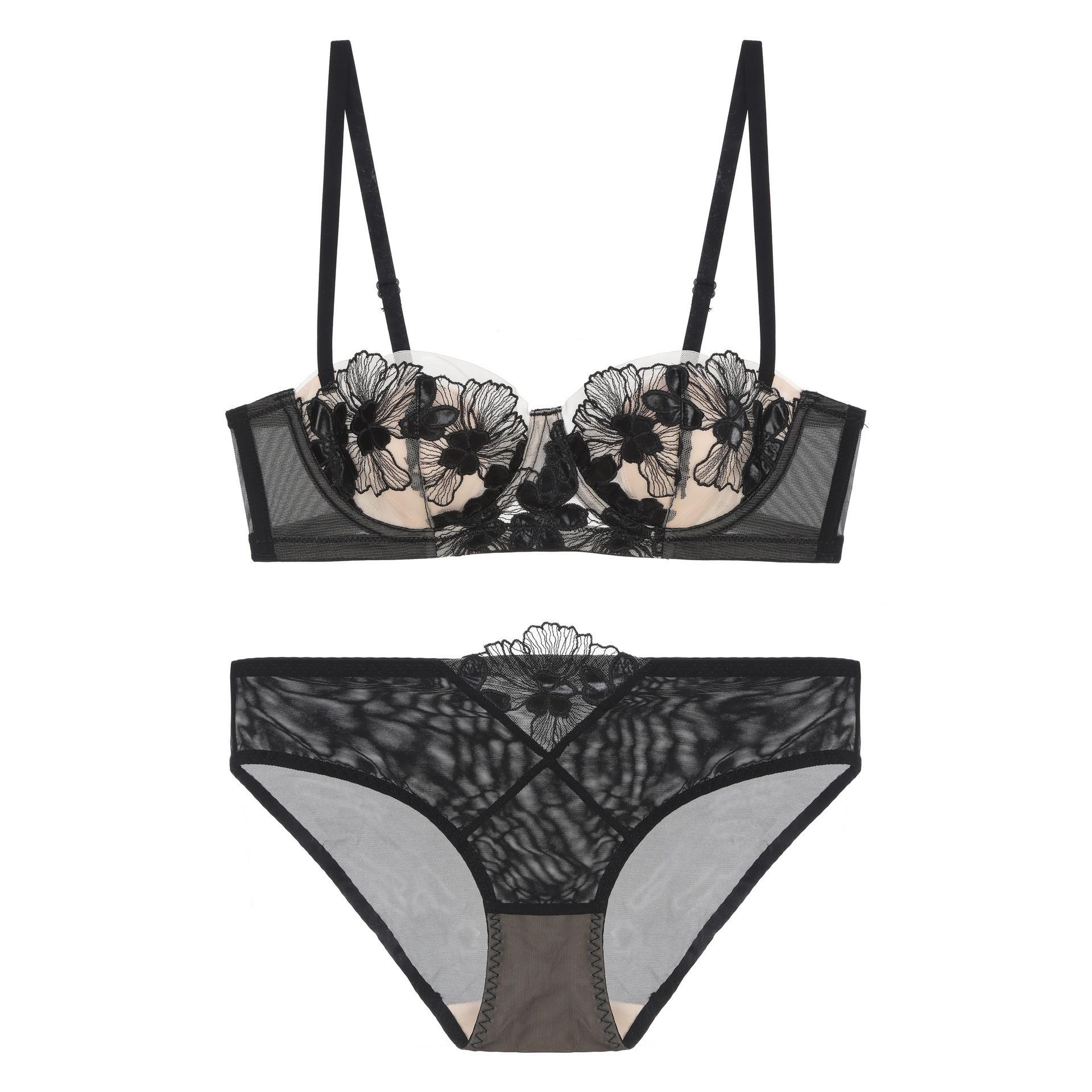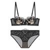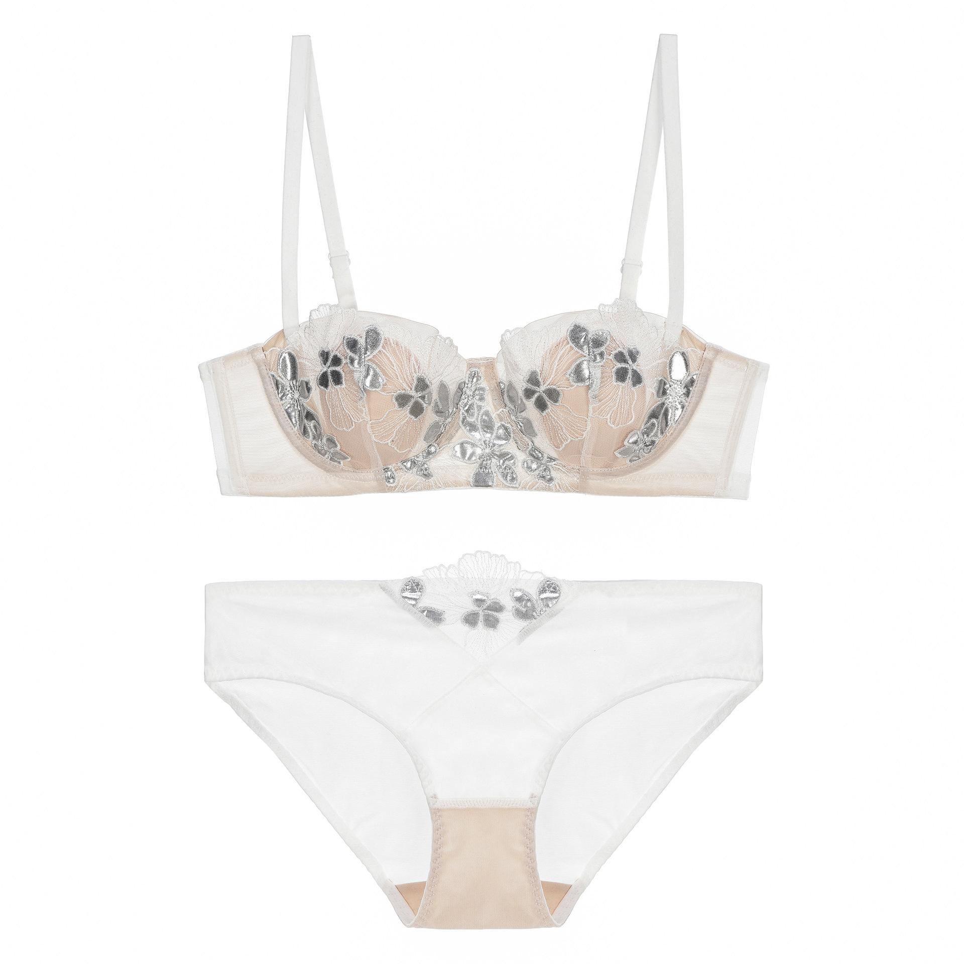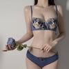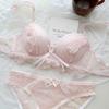 Lencería Sexy para Mujer, Estilo Francés, Deseo Puro, Sujetador de Encaje con Copa Fina de Orejas de Conejo, Busto Grande, Minimizador, Conjunto de Lencería Anticaída