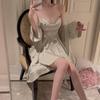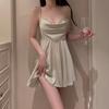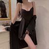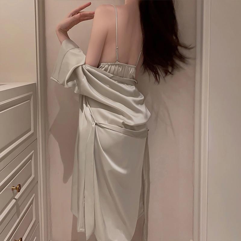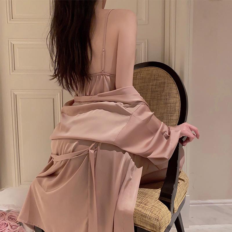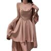Pijama sexy de primavera y otoño para mujer, de seda helada, con almohadillas para el pecho, falda y camisón, conjunto de dos piezas de seda pura y dulce.