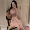 Bean green two-piece set [lace collar], Bean paste powder two-piece set [lace collar], Black two-piece set [la...