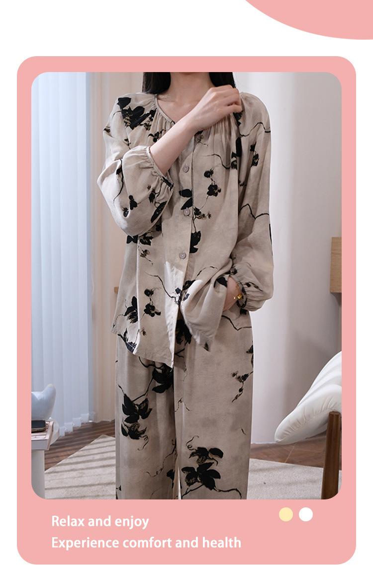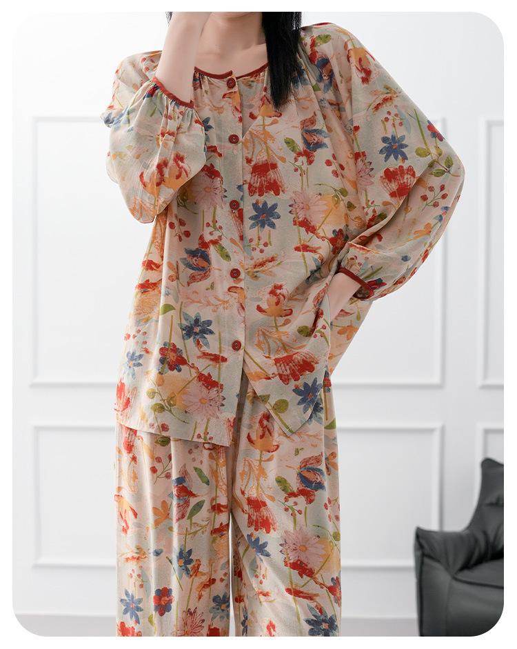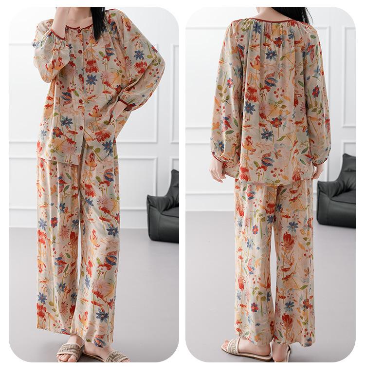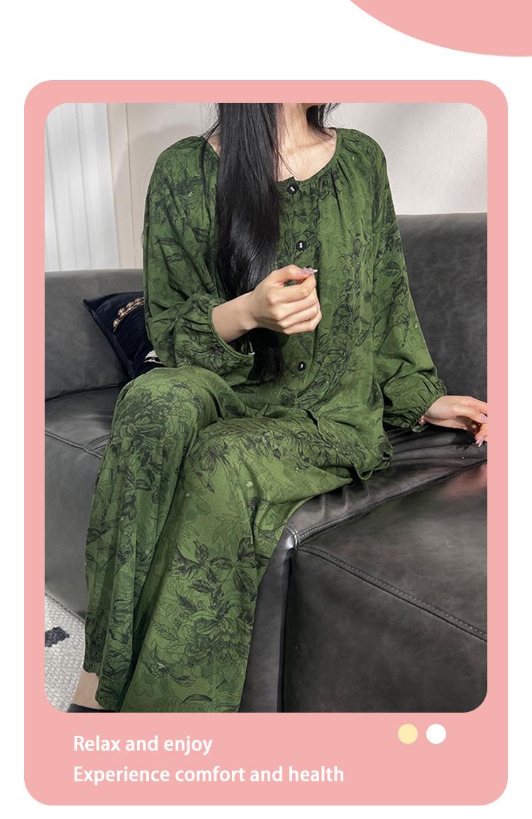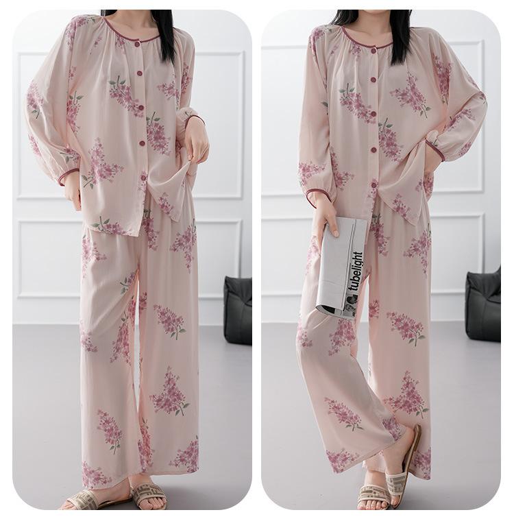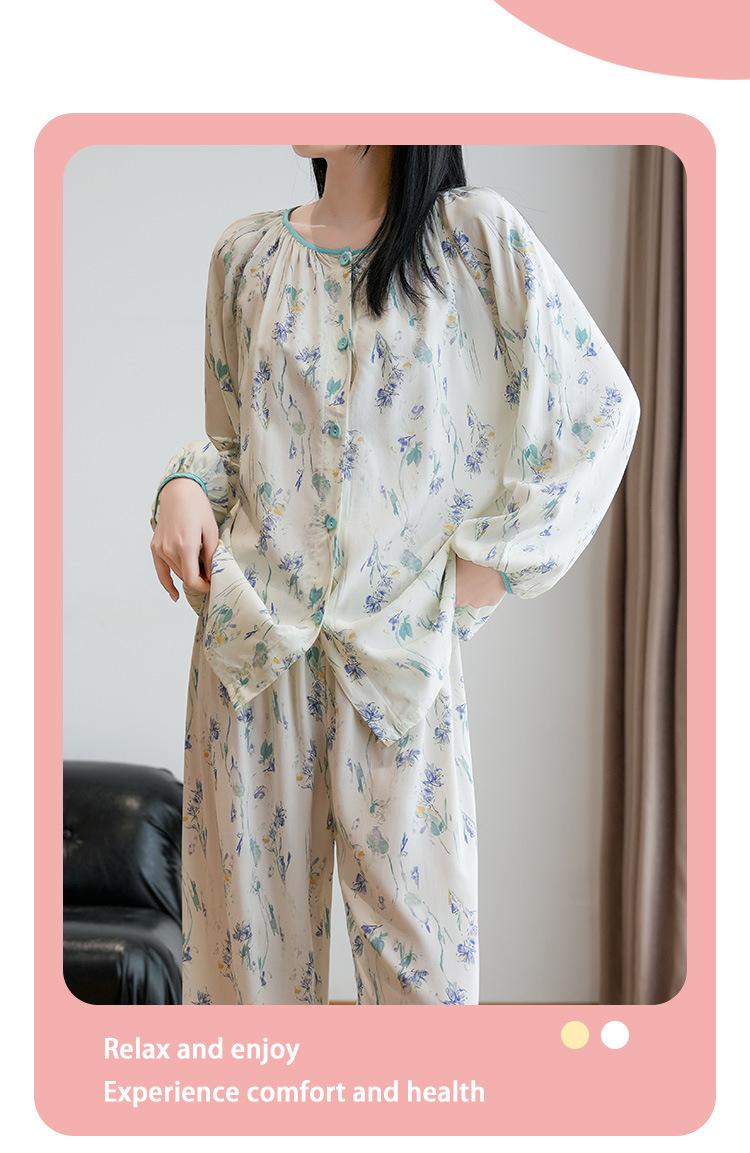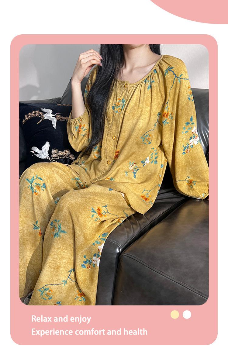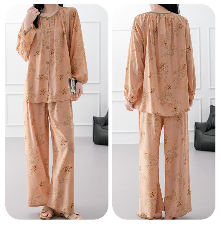 Pijamas de seda de algodón nuevos de 2025 para mujer, primavera y otoño, ropa de casa de seda de algodón para madres de mediana edad y mayores, que se puede usar en verano.