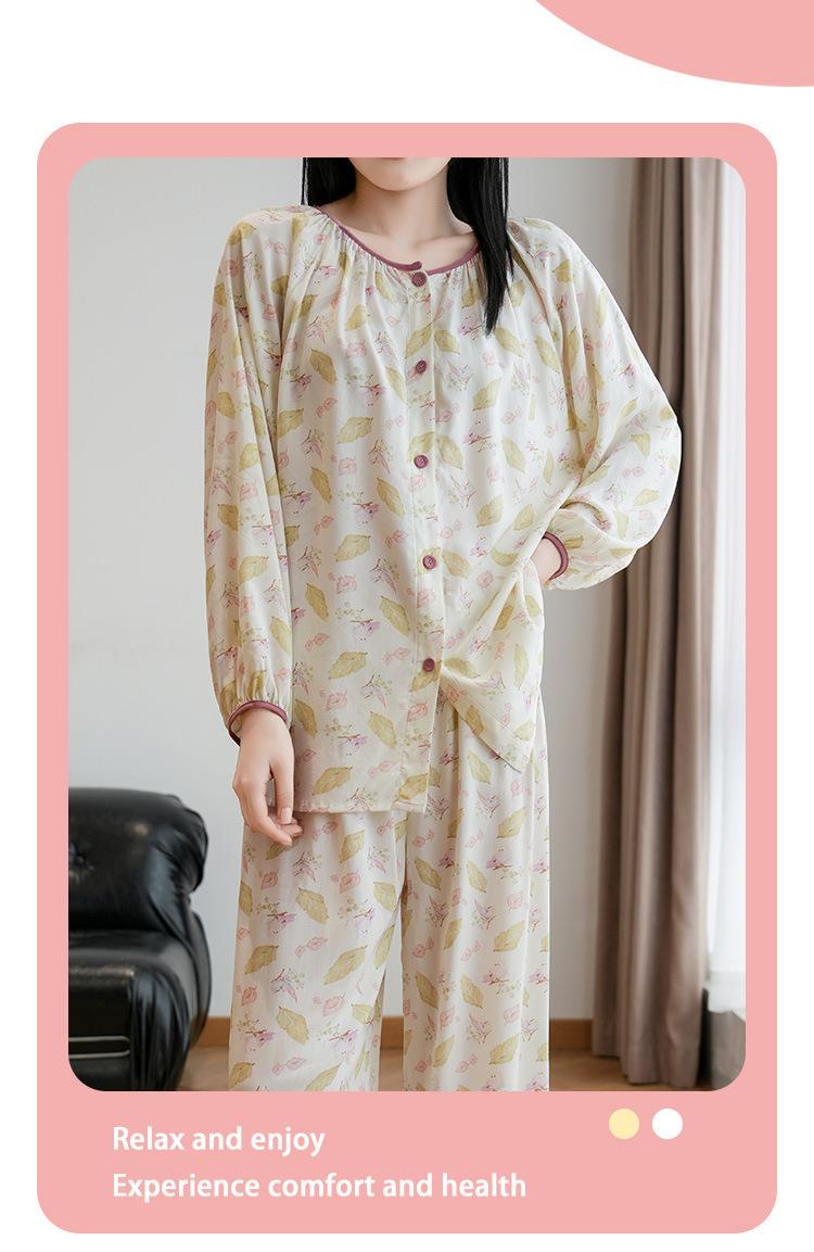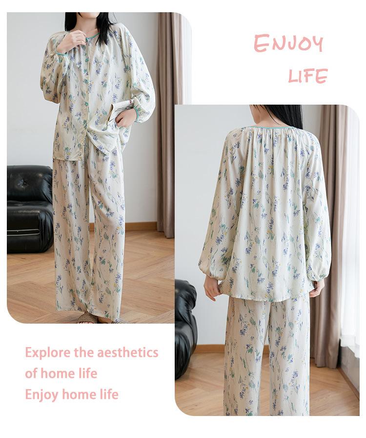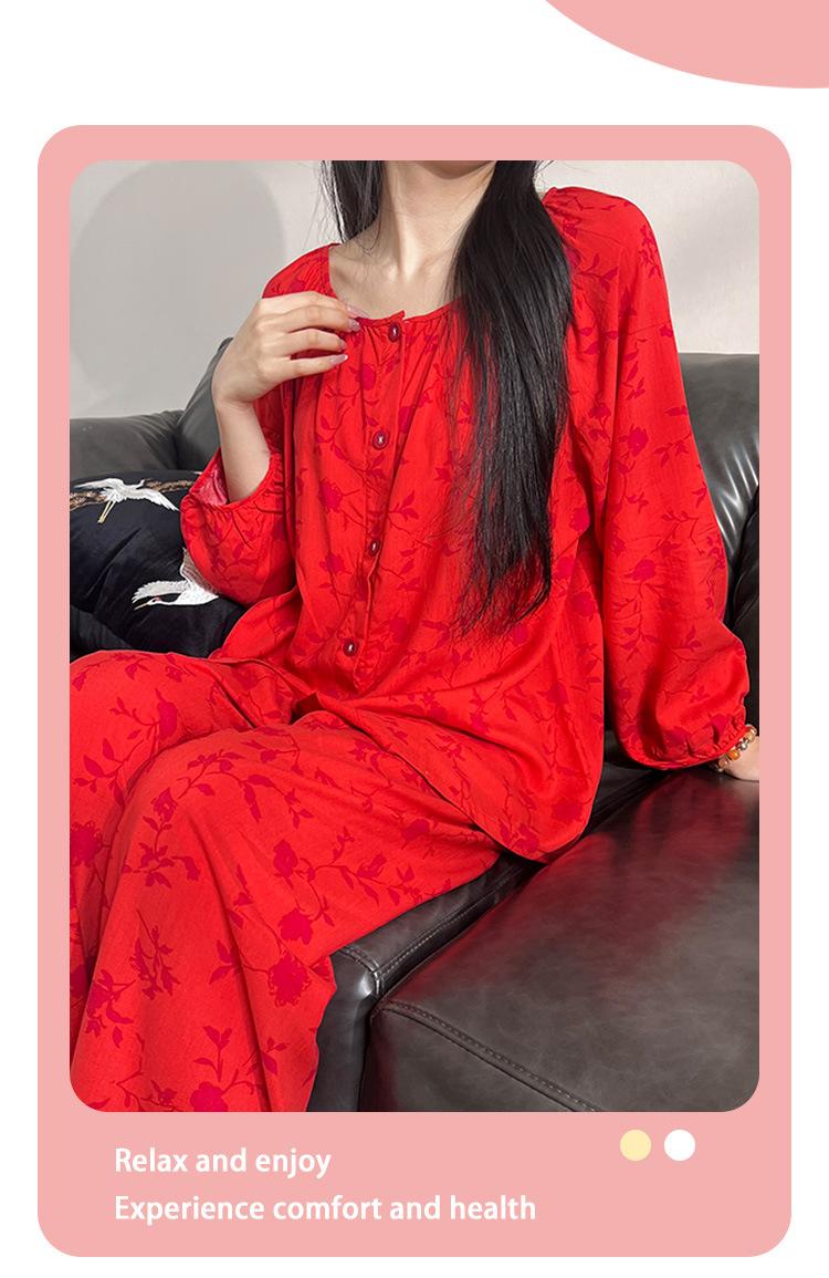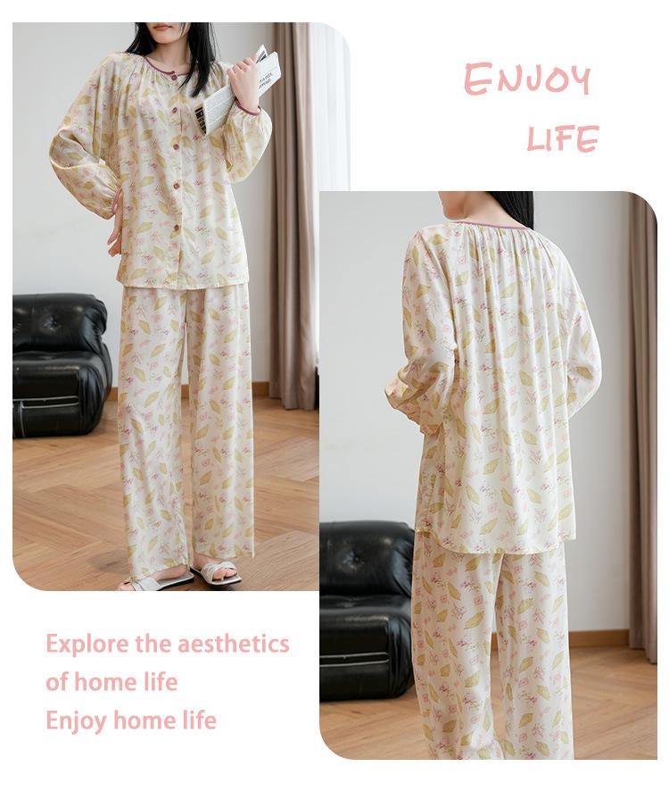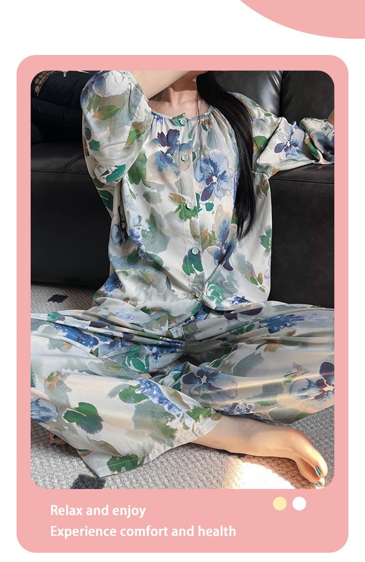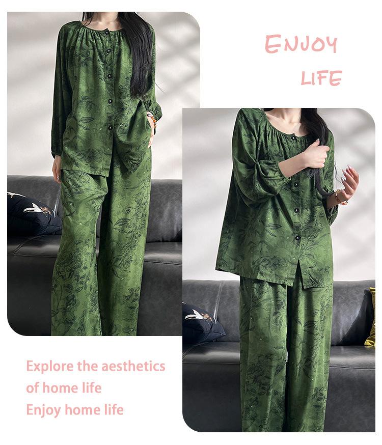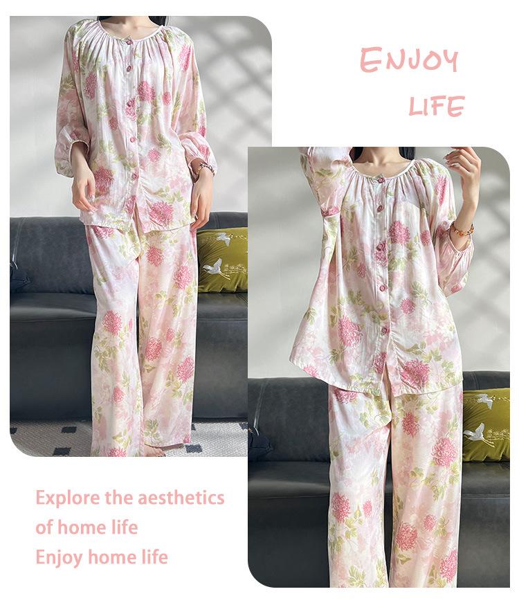 Pijamas de seda de algodón nuevos de 2025 para mujer, primavera y otoño, ropa de casa de seda de algodón para madres de mediana edad y mayores, que se puede usar en verano.