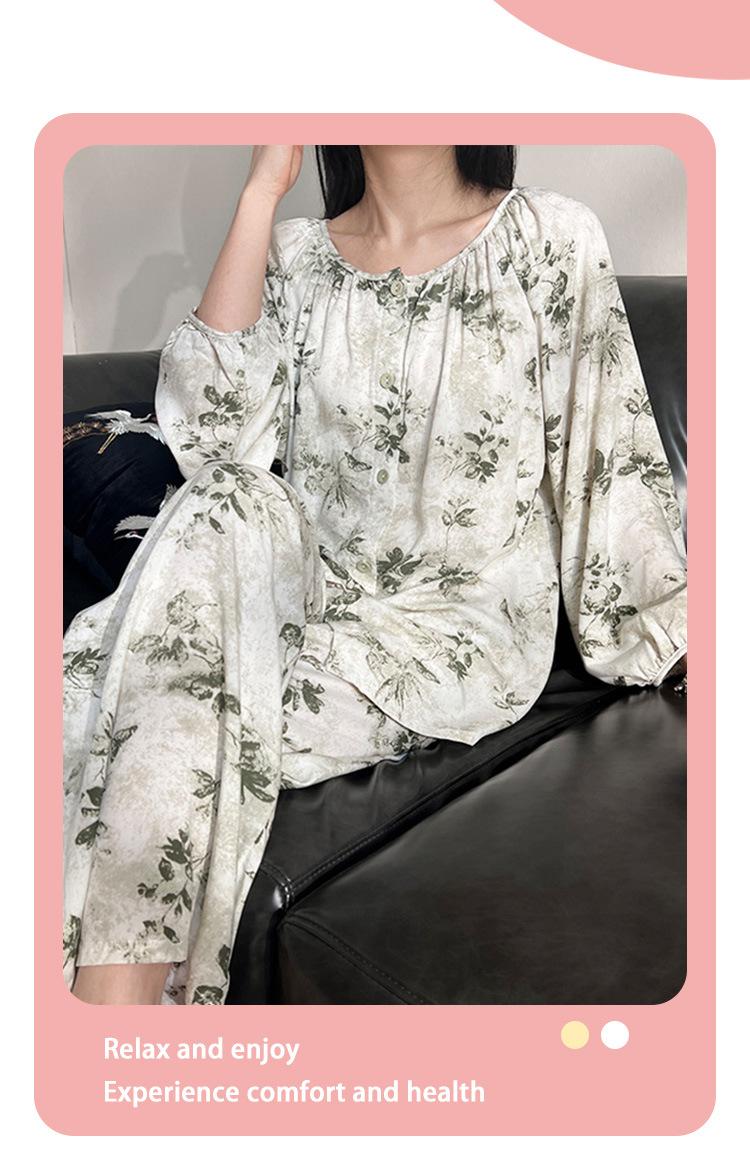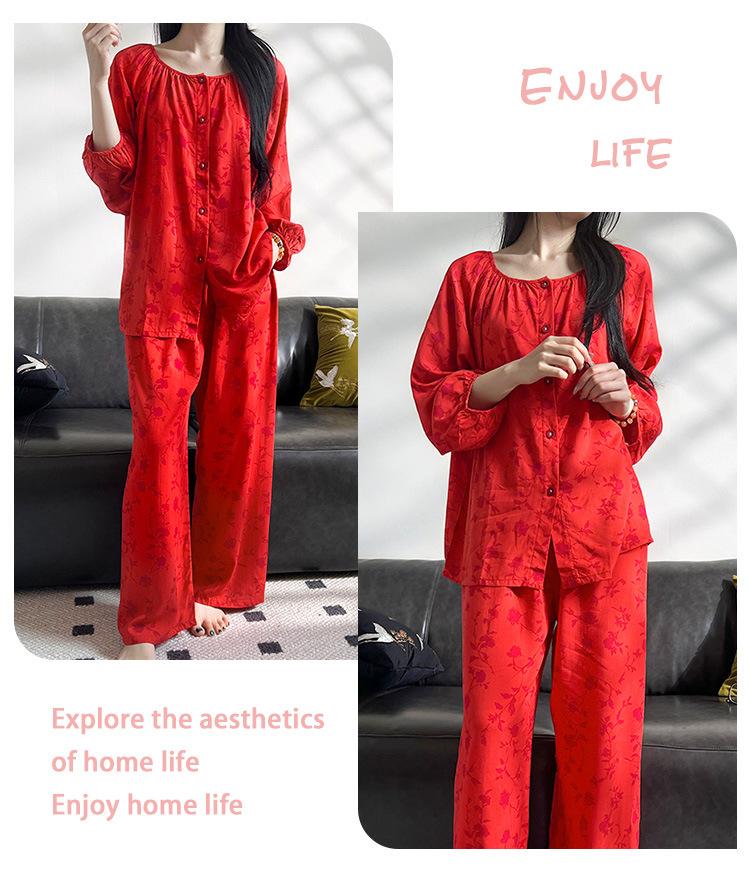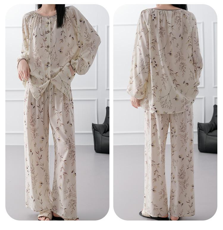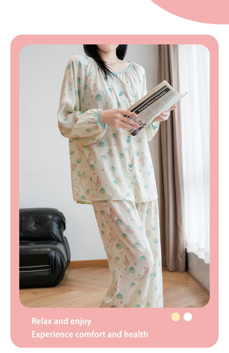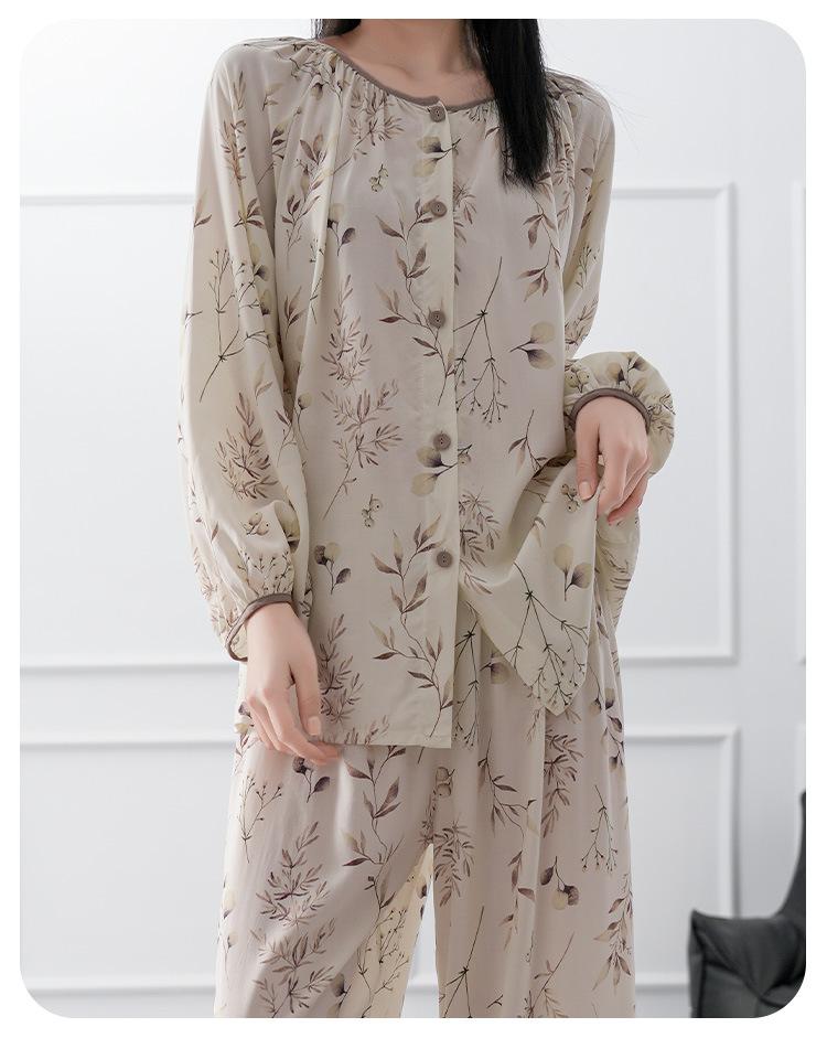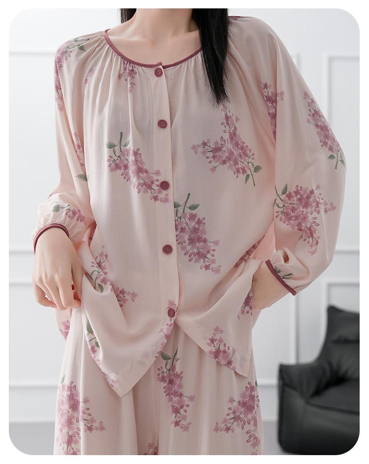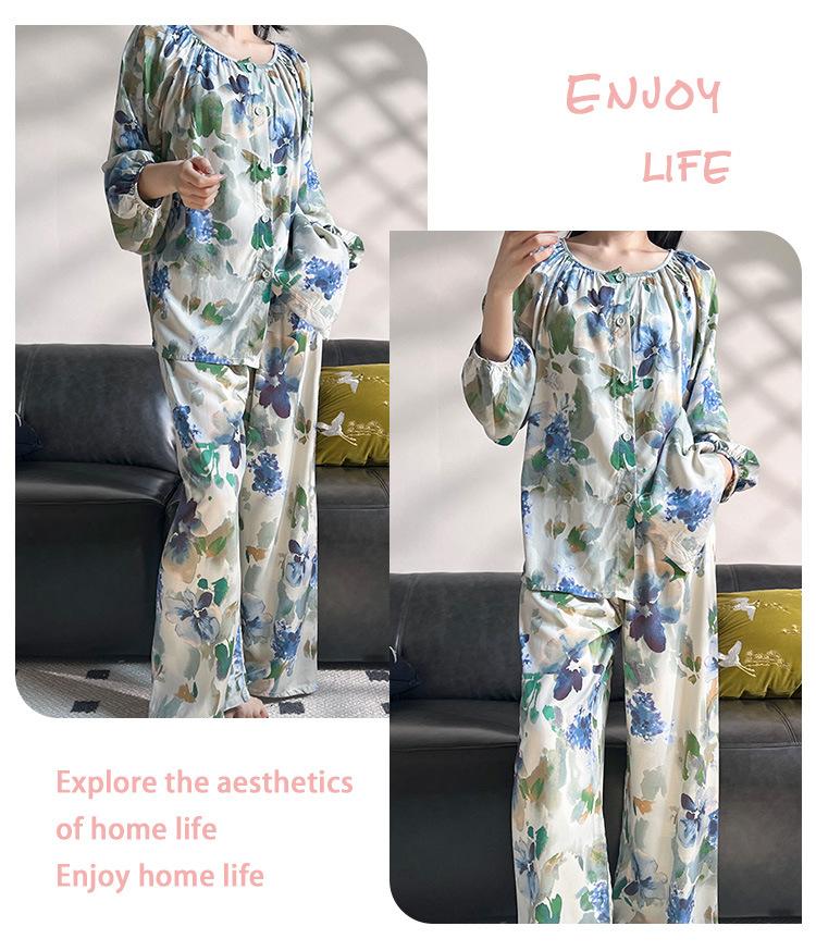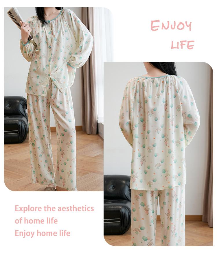 Pijamas de seda de algodón nuevos de 2025 para mujer, primavera y otoño, ropa de casa de seda de algodón para madres de mediana edad y mayores, que se puede usar en verano.