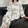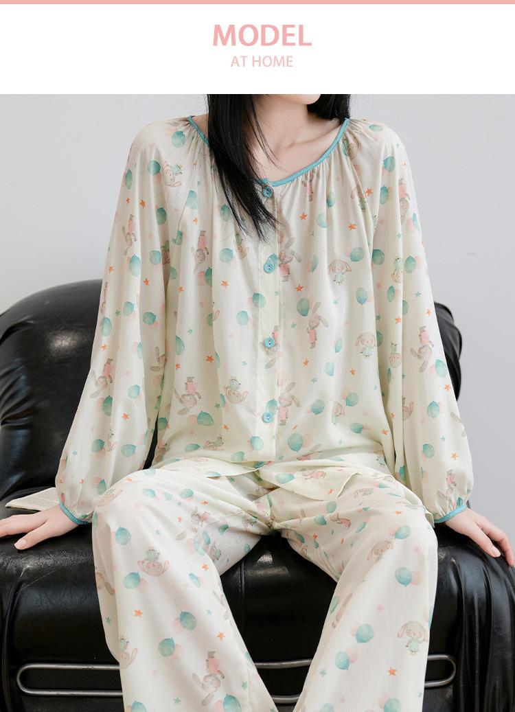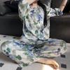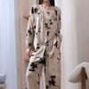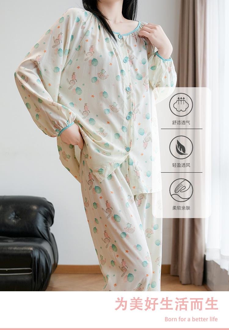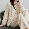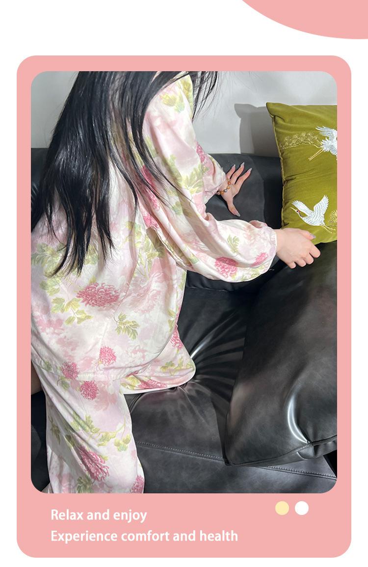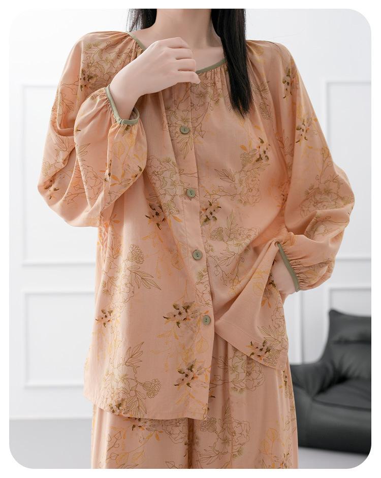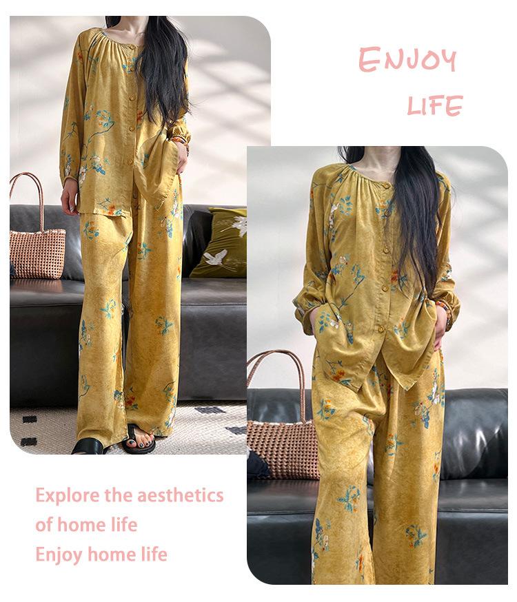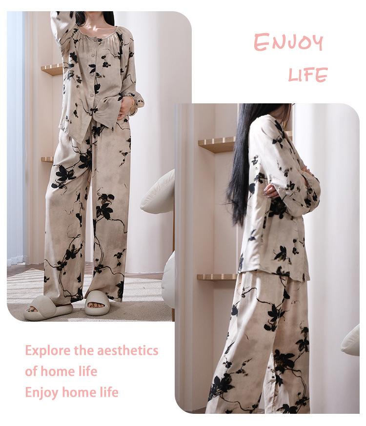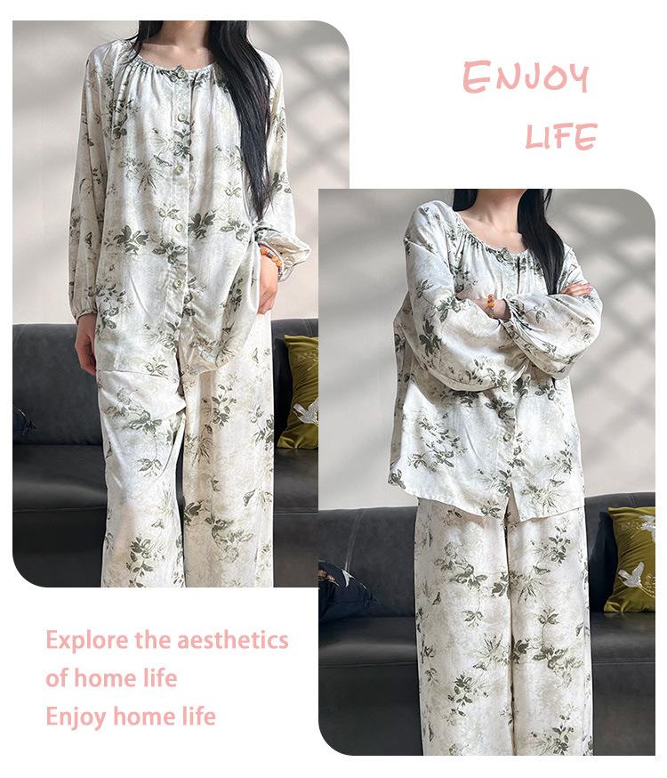 Pijamas de seda de algodón nuevos de 2025 para mujer, primavera y otoño, ropa de casa de seda de algodón para madres de mediana edad y mayores, que se puede usar en verano.