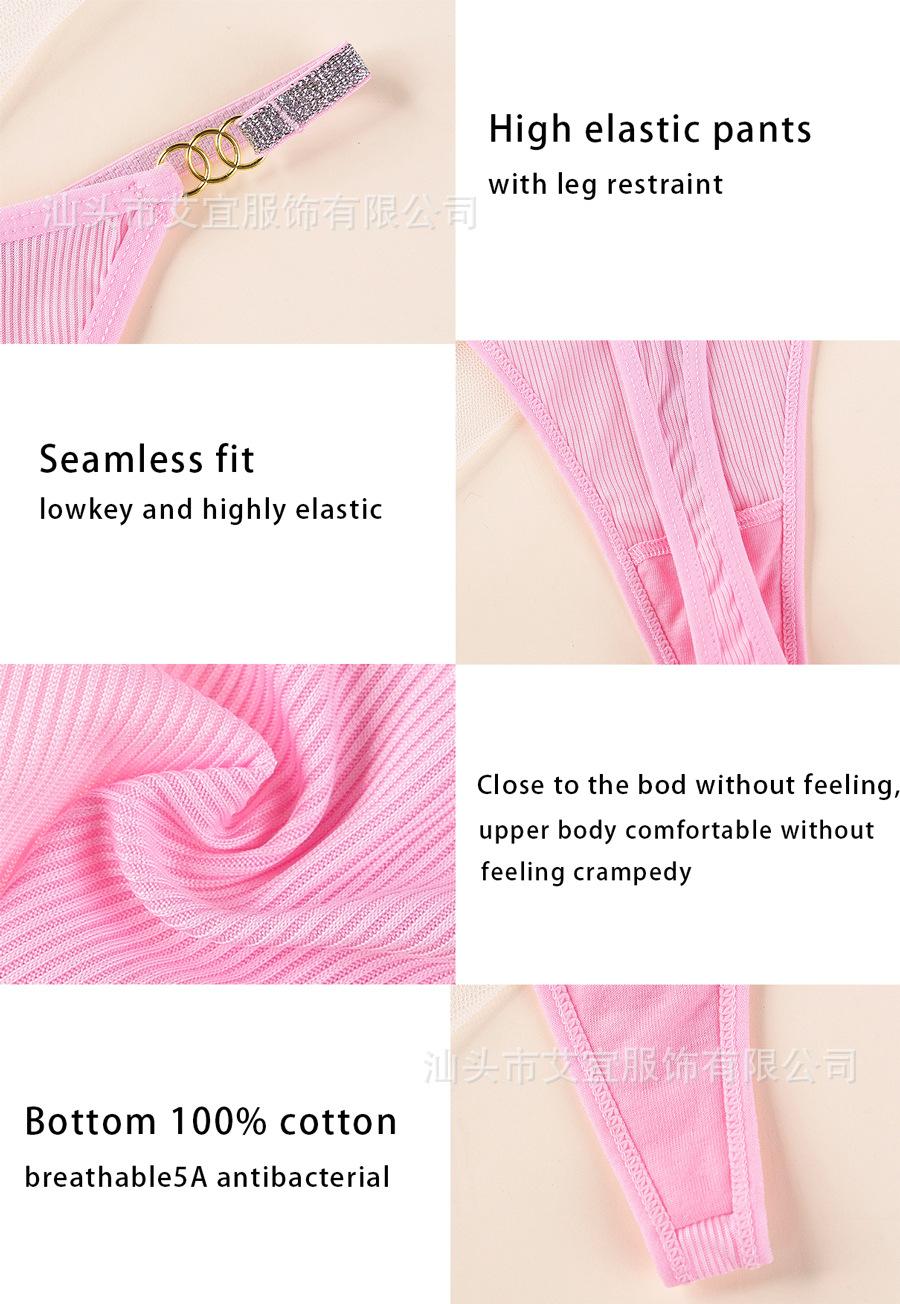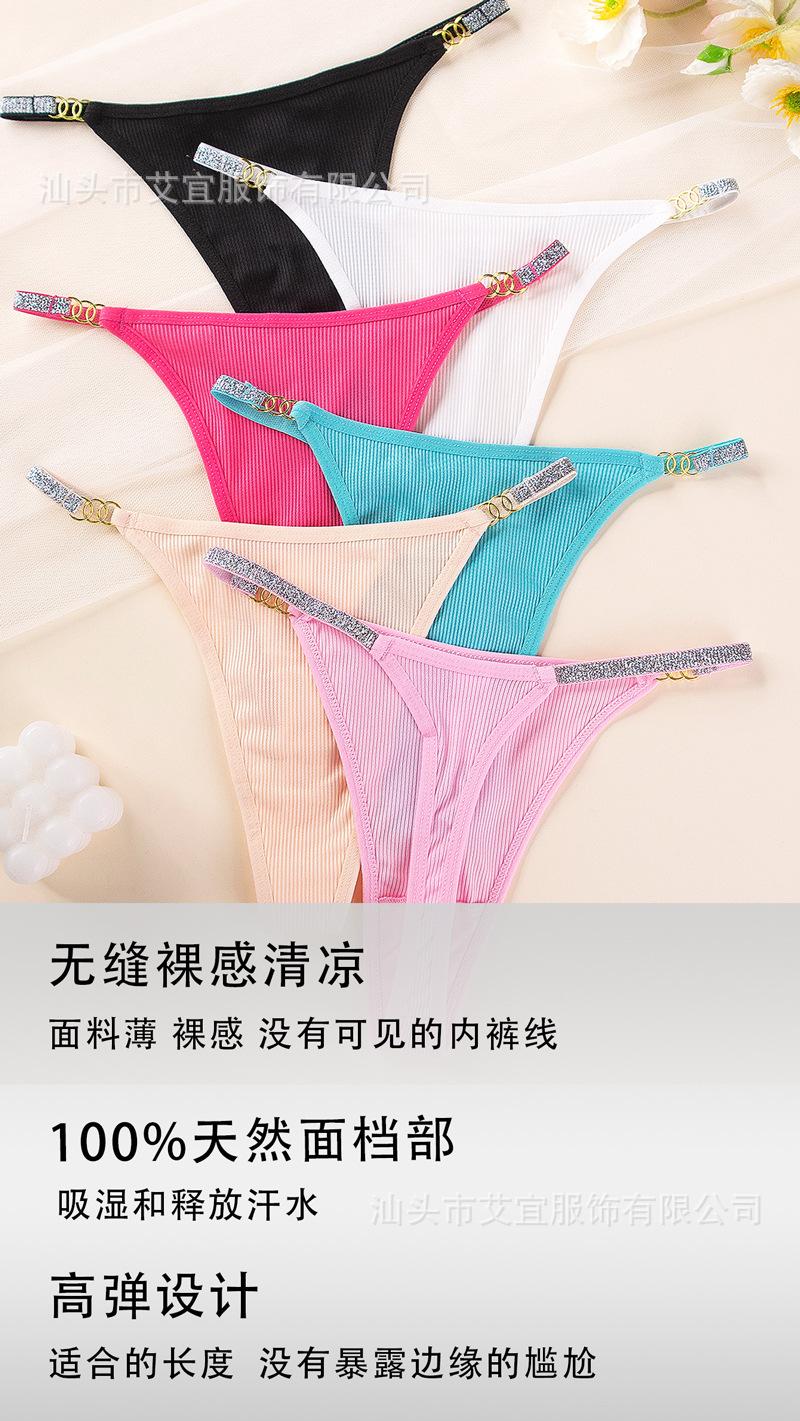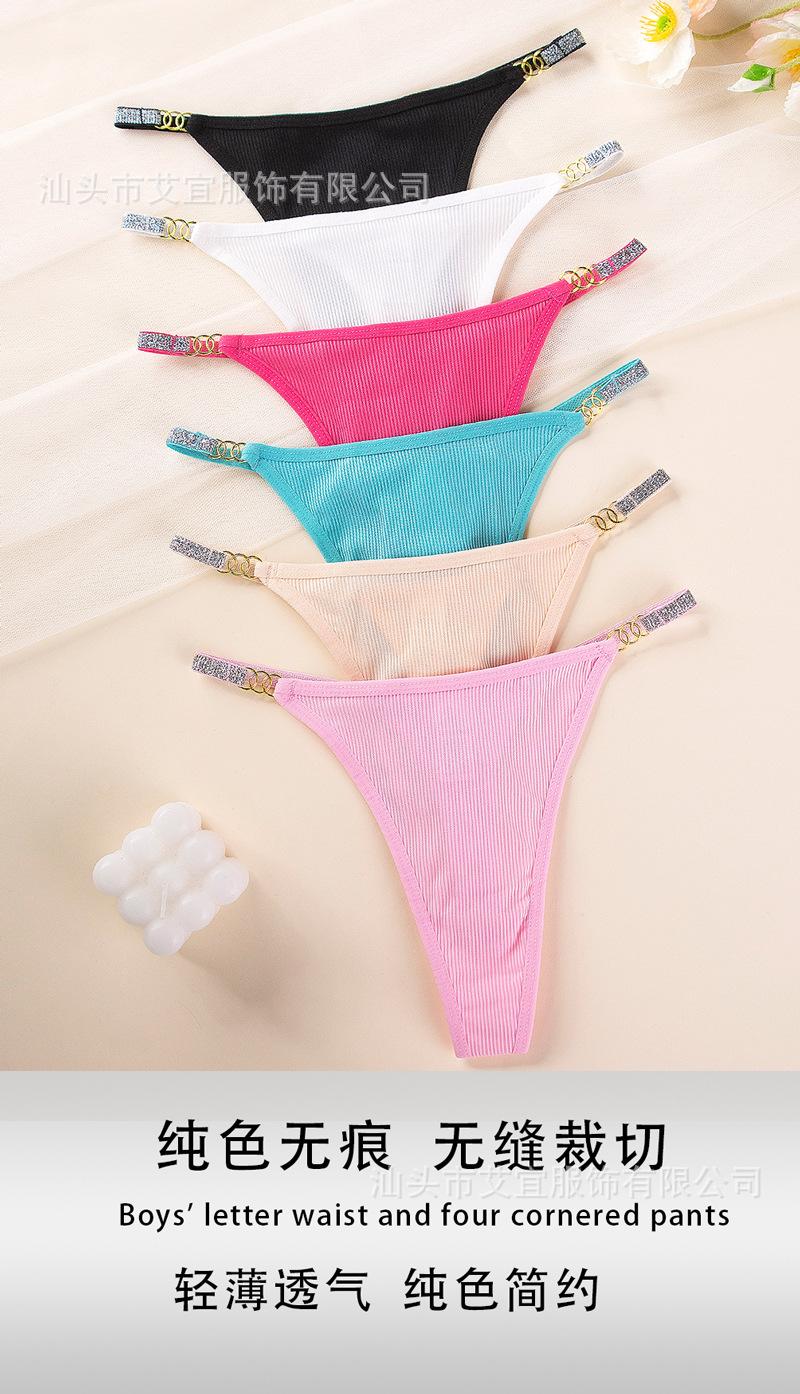 Comercio Transfronterizo Europeo y Americano Amazon Tk Encaje Europeo y Americano Cinturón de Hilo Plateado Color Sólido Tanga de Deseo Puro Ropa Interior de Cintura Baja para Mujer
