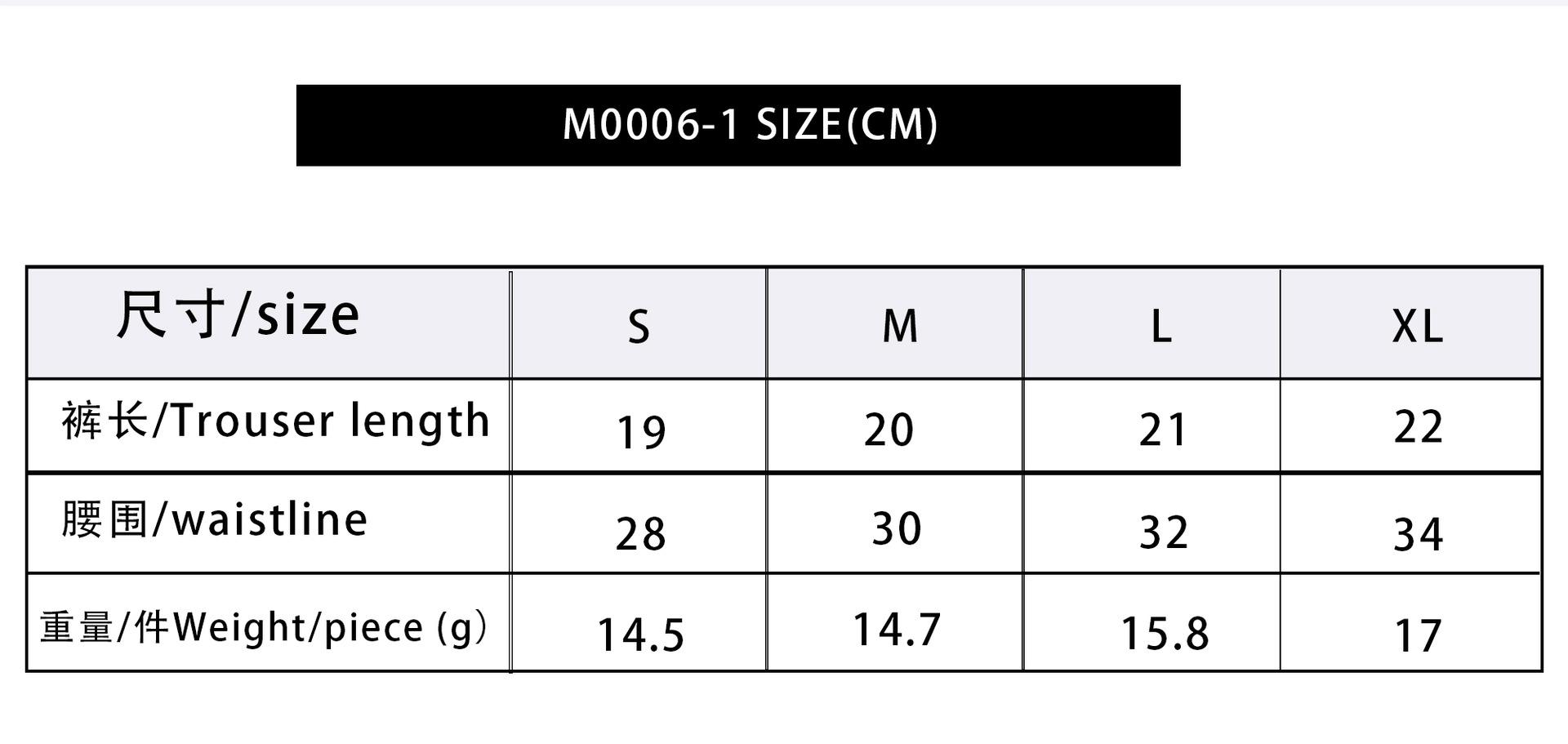 S, M, L, XL