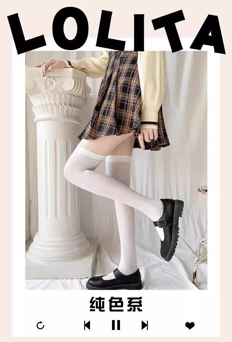 Calcetines de presión por encima de la rodilla, calcetines de terciopelo, medias de seda blancas japonesas de verano para mujer, medias negras JK hasta el muslo para estudiantes