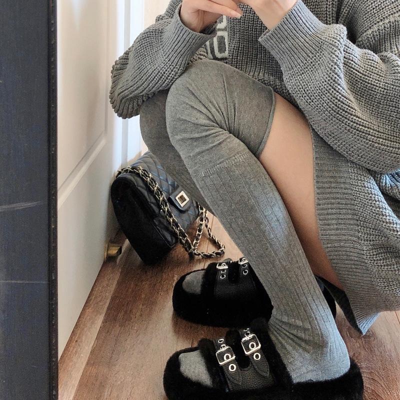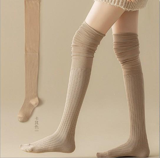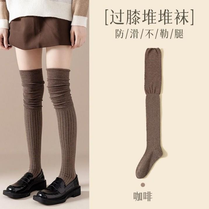 Calcetines altos de color sólido estilo otoño e invierno color Maillard calcetines para piernas botas calcetines hasta la rodilla calcetines de rizo con costuras personalizadas chica hot