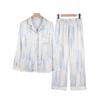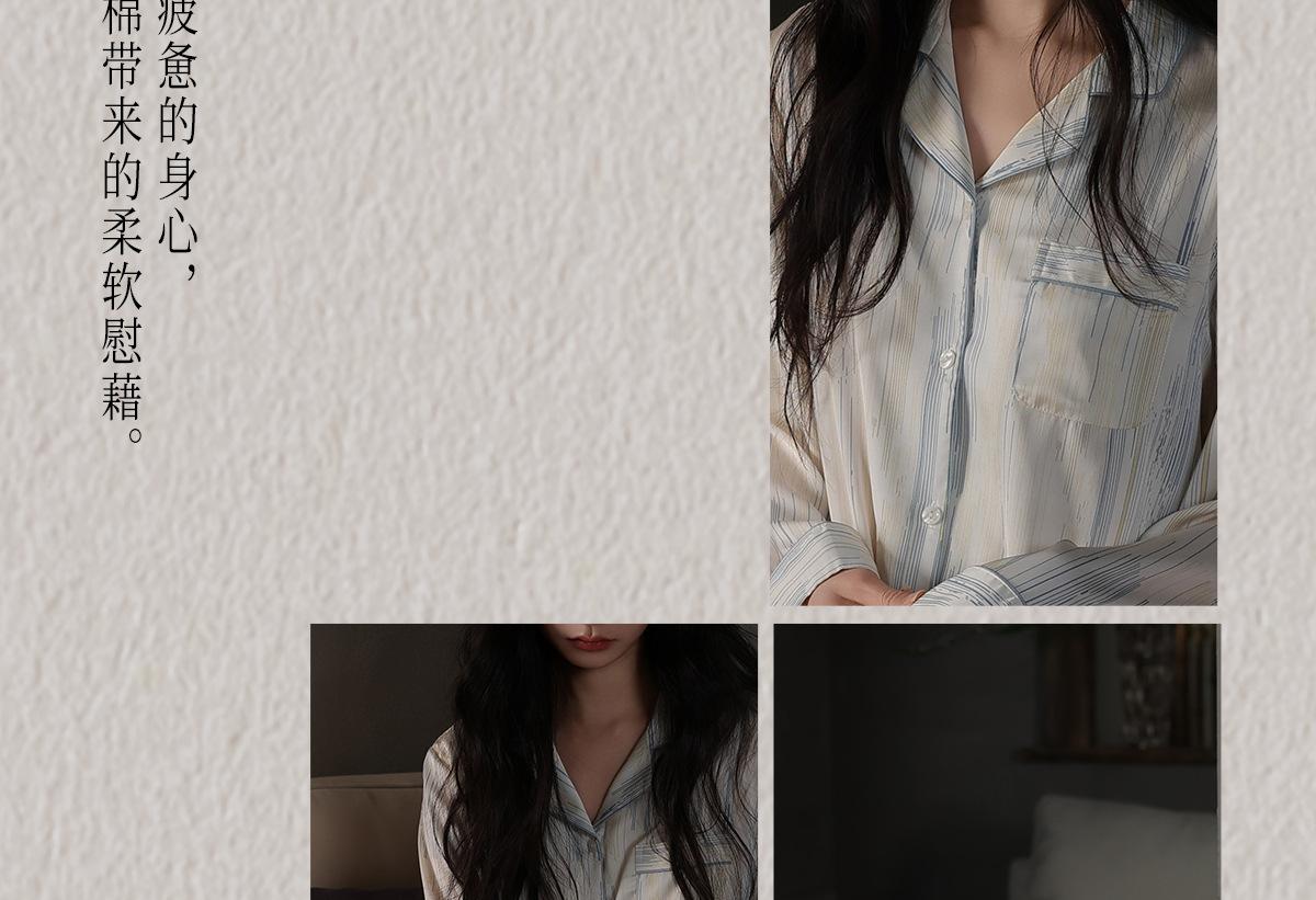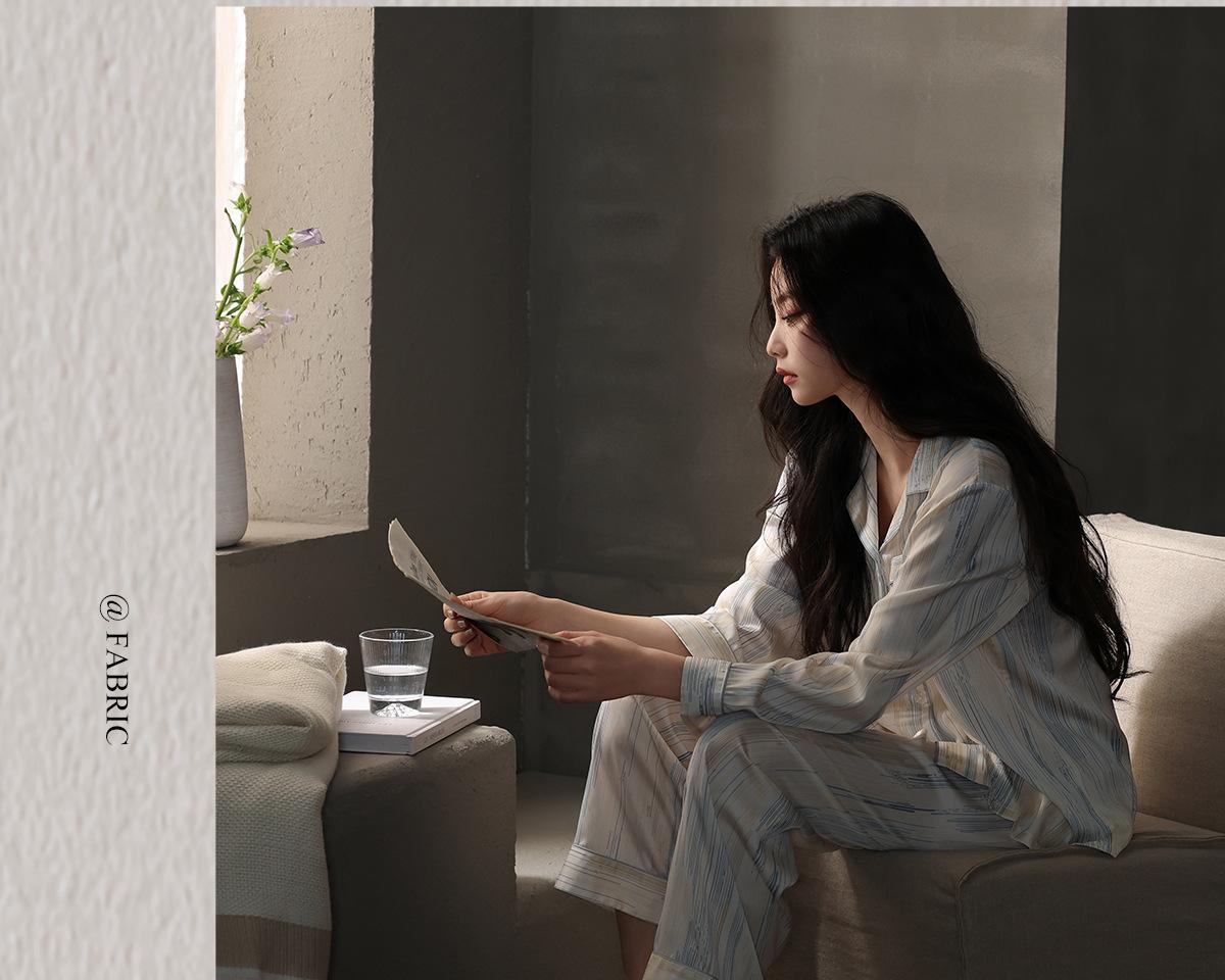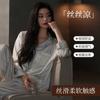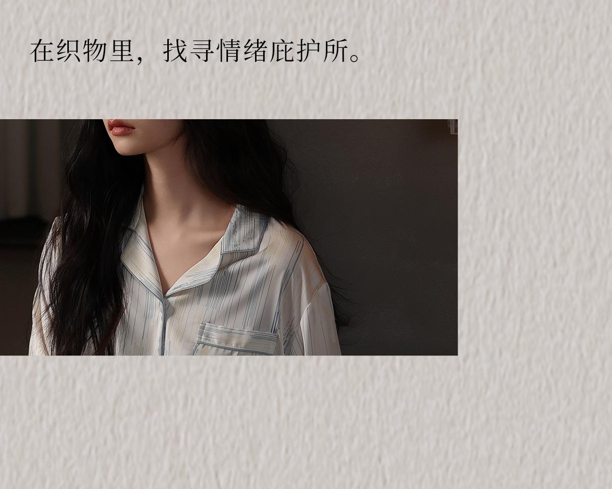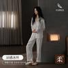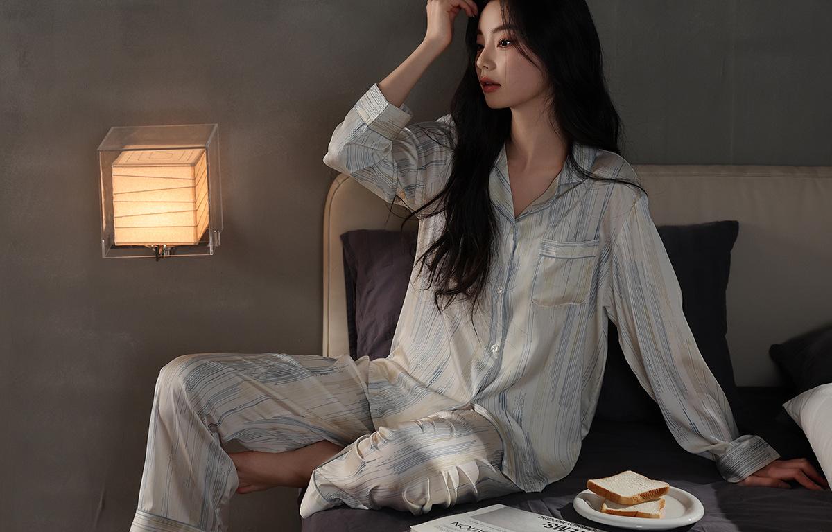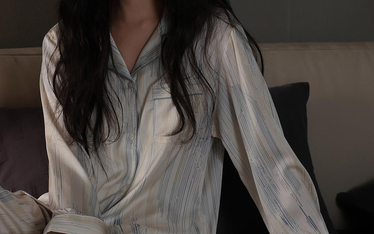 [Seda de hielo y nieve] Pijamas de nuevo estilo para mujer, primavera y verano, seda de hielo, talla grande, manga larga, rayas, contraste de color, ropa fina para el hogar.