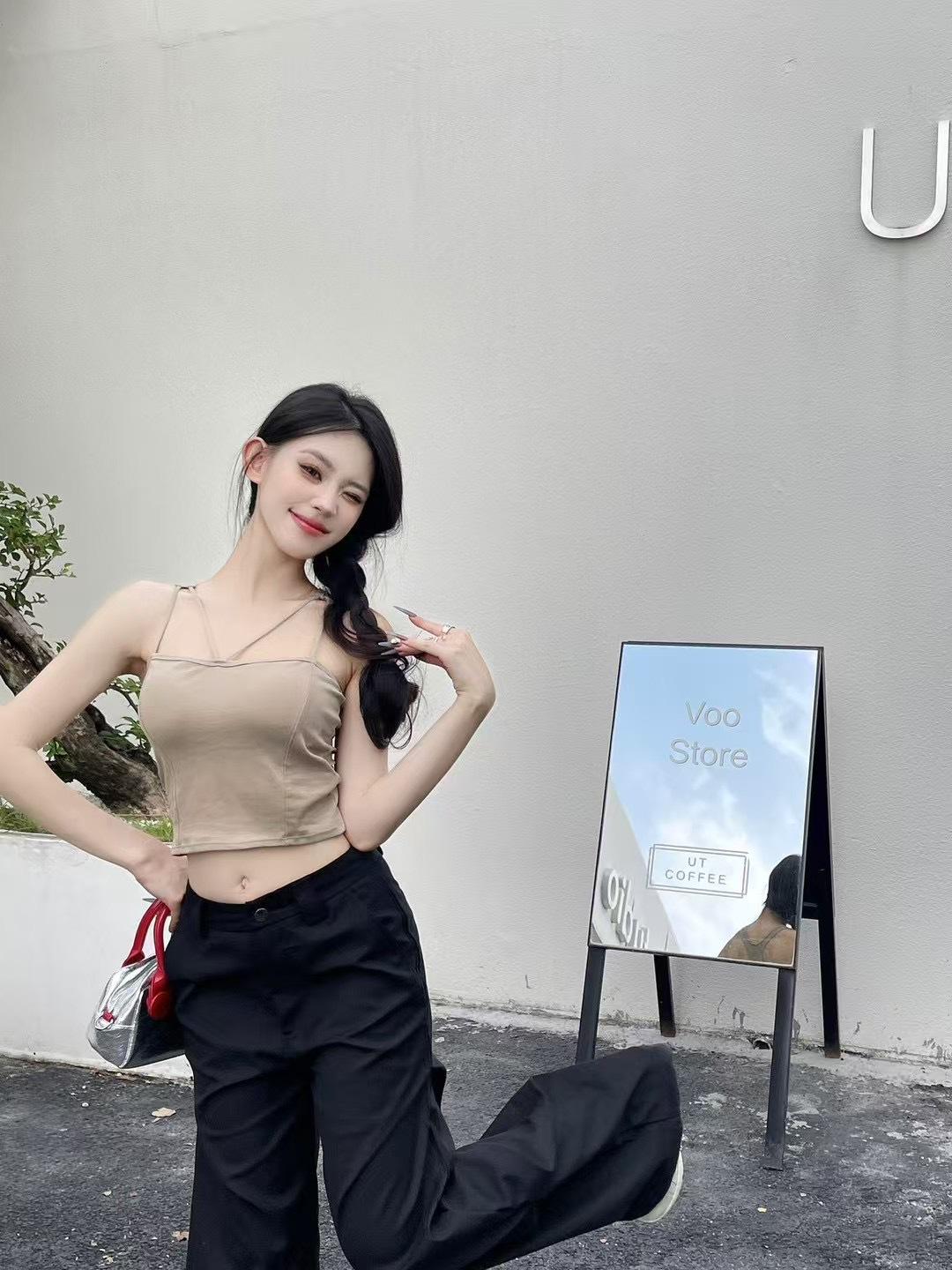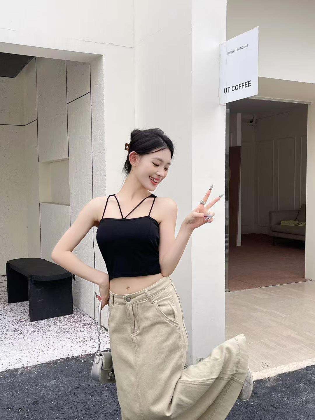 Verano Sexy Nuevo Diseño Recorte Versátil Tirante Copa en V Sexy Hermosa Espalda Top Exterior Chaleco de Mujer