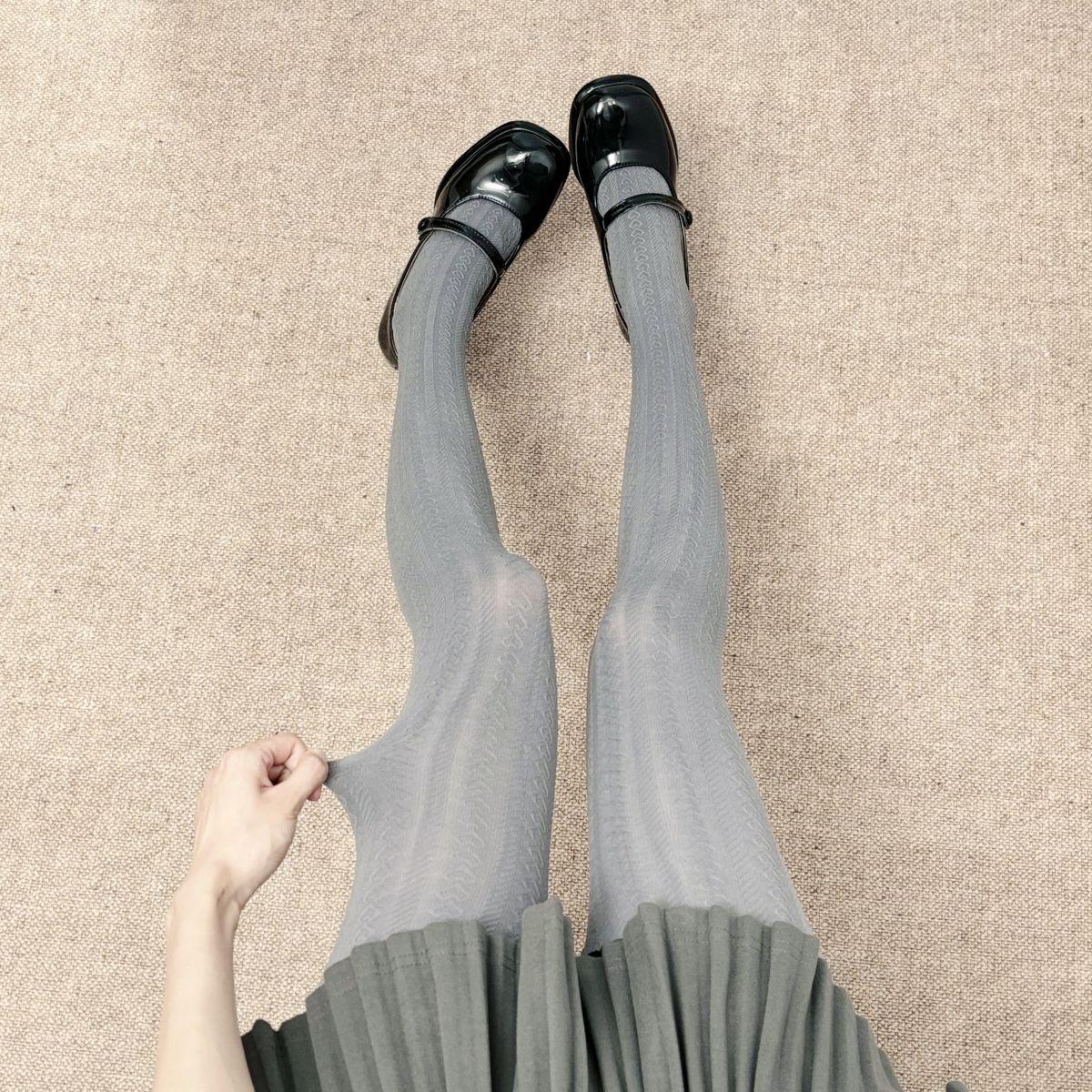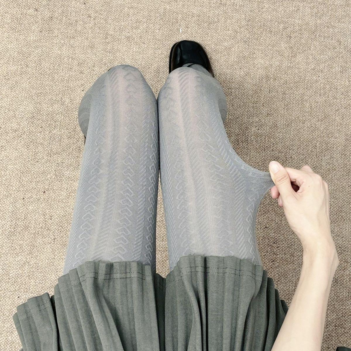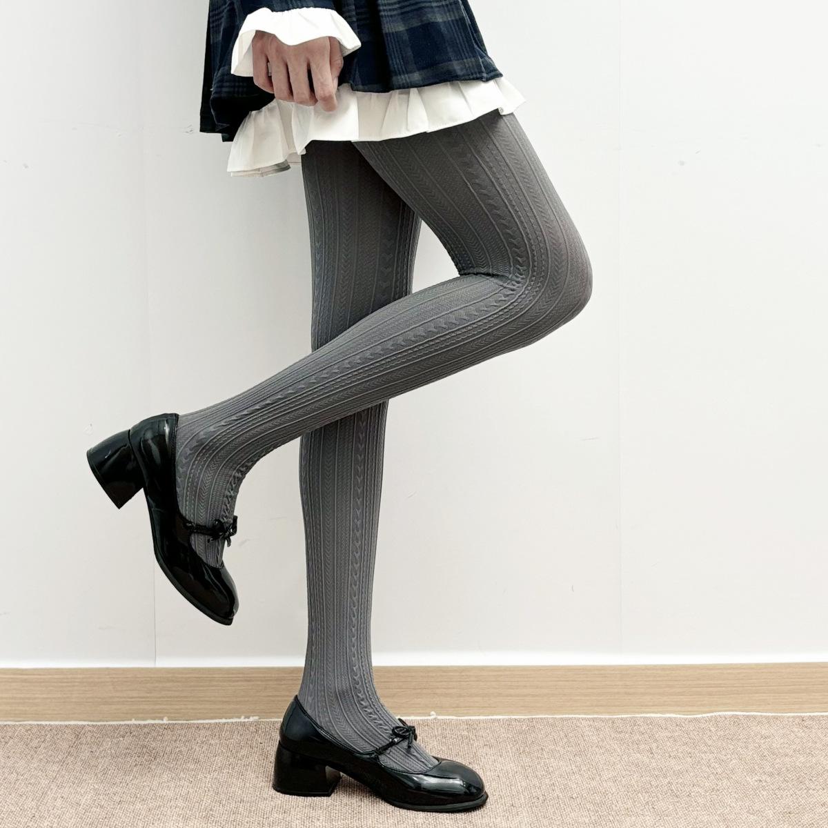 Medias de terciopelo gris vintage para mujer, elásticas, adelgazantes, con estampado de ondas, para primavera y otoño, sencillas y combinables.