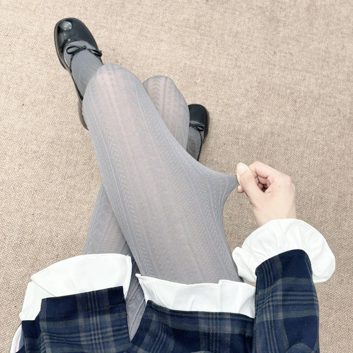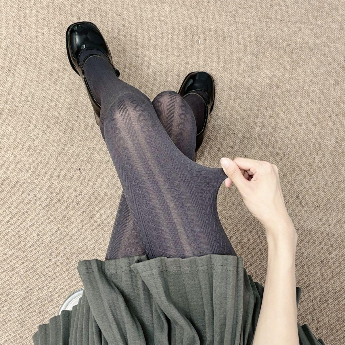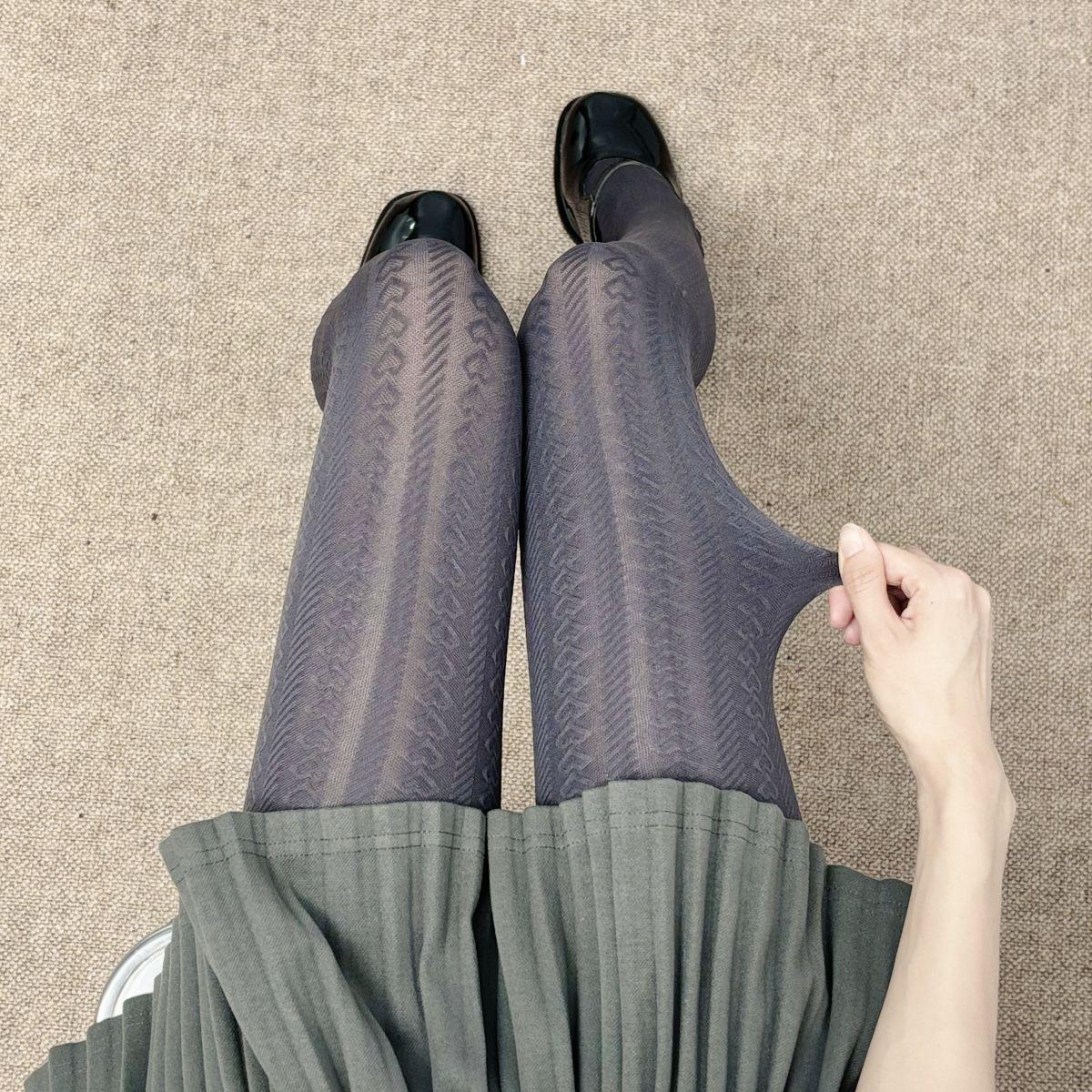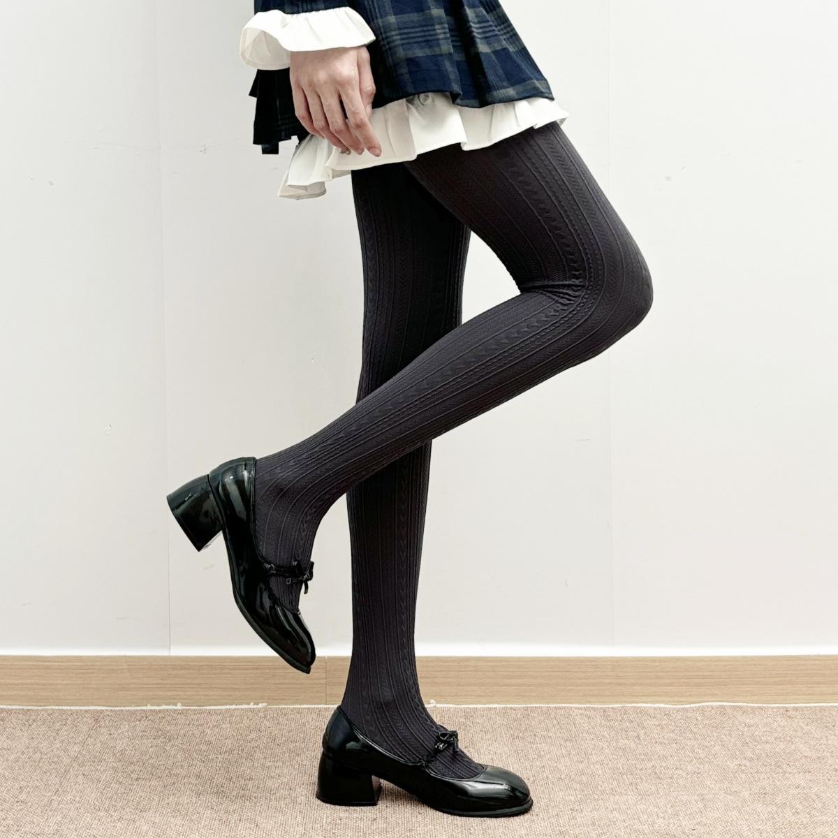 Medias de terciopelo gris vintage para mujer, elásticas, adelgazantes, con estampado de ondas, para primavera y otoño, sencillas y combinables.