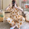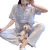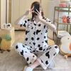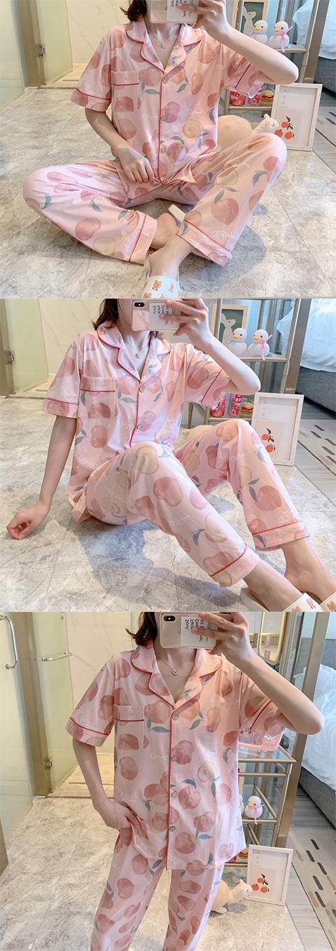 Pijama de Corazón Dulce Estilo Coreano Ins para Mujer Verano Lindo Estudiantes Manga Corta Pantalones Cárdigan Fino Traje de Ropa para el Hogar