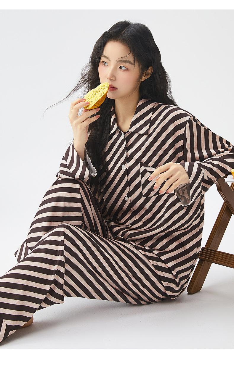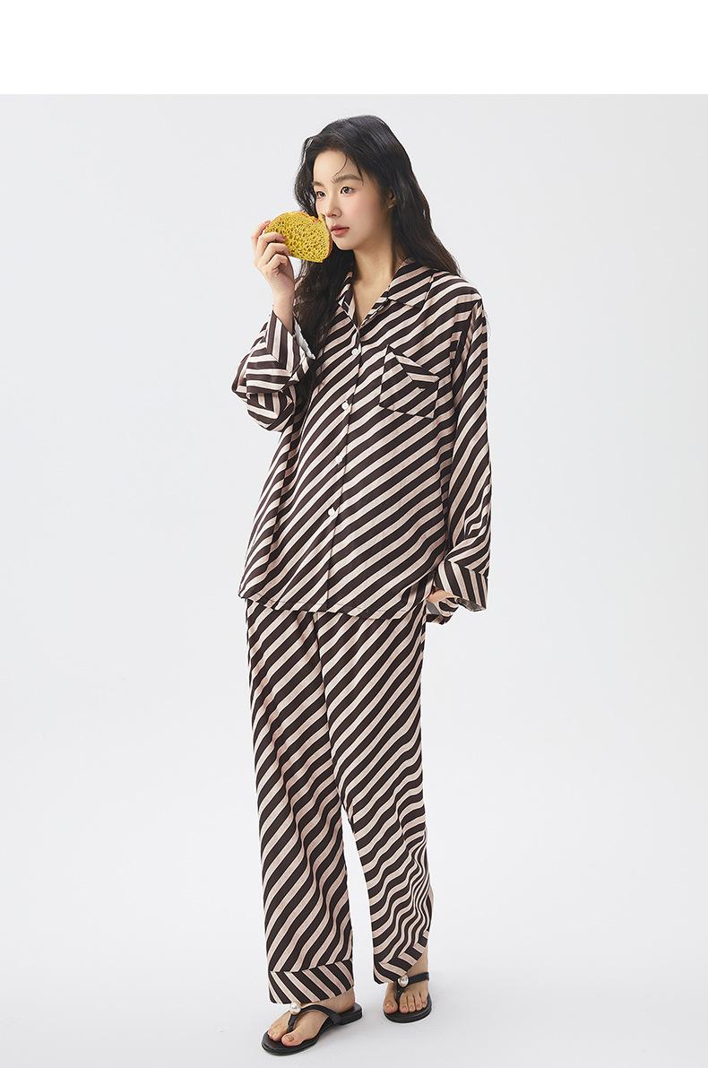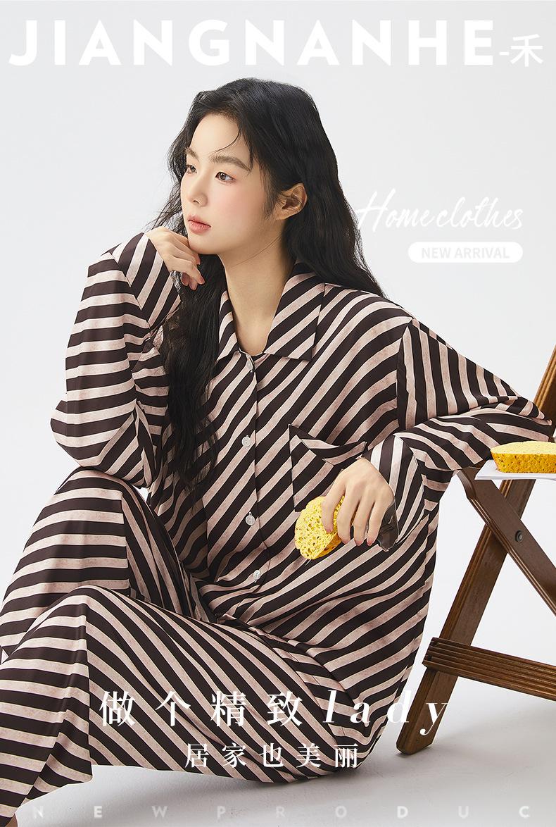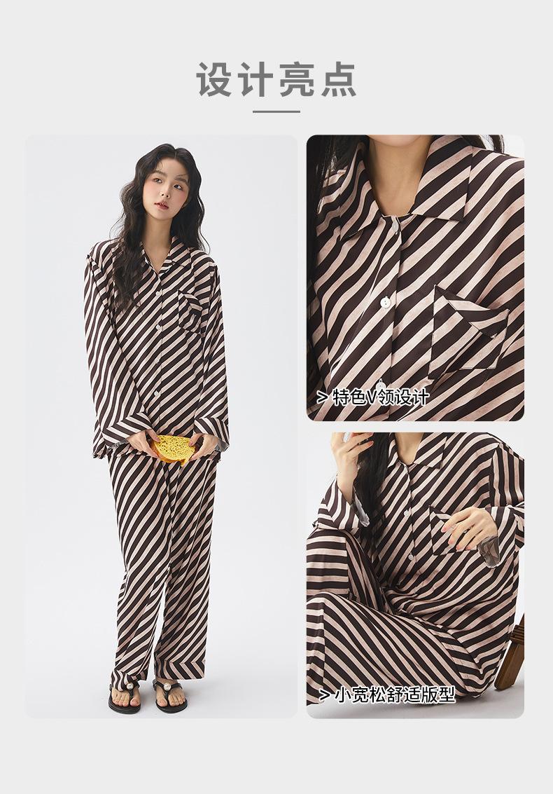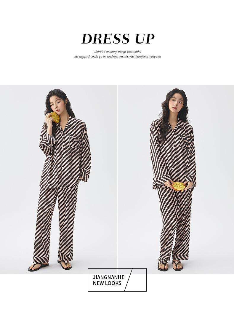 Jiangnan Wo 25 Primavera Nuevo Pijama de Seda de Hielo Manga al Hombro Café Dorado Ropa de Casa para Mujer Conjunto para Mujer Verano Comercio Exterior Transfronterizo