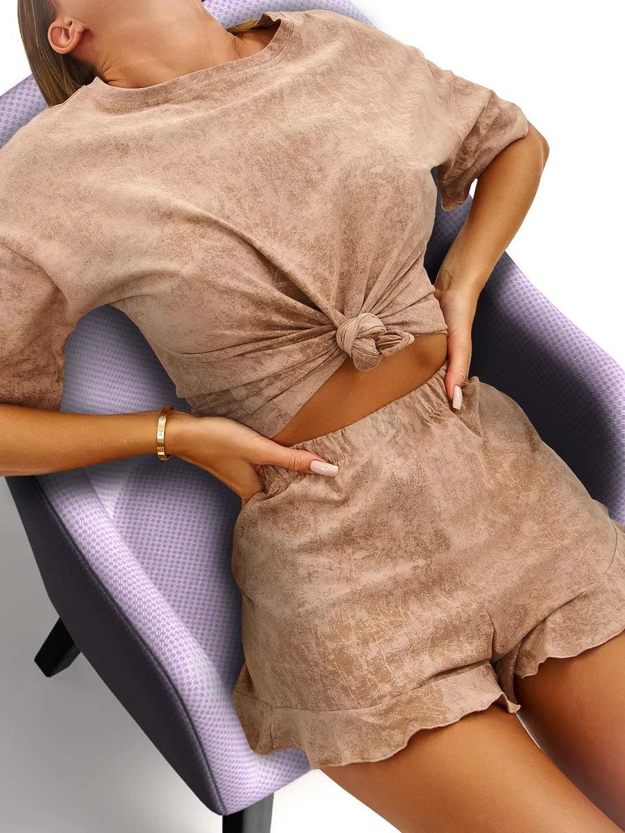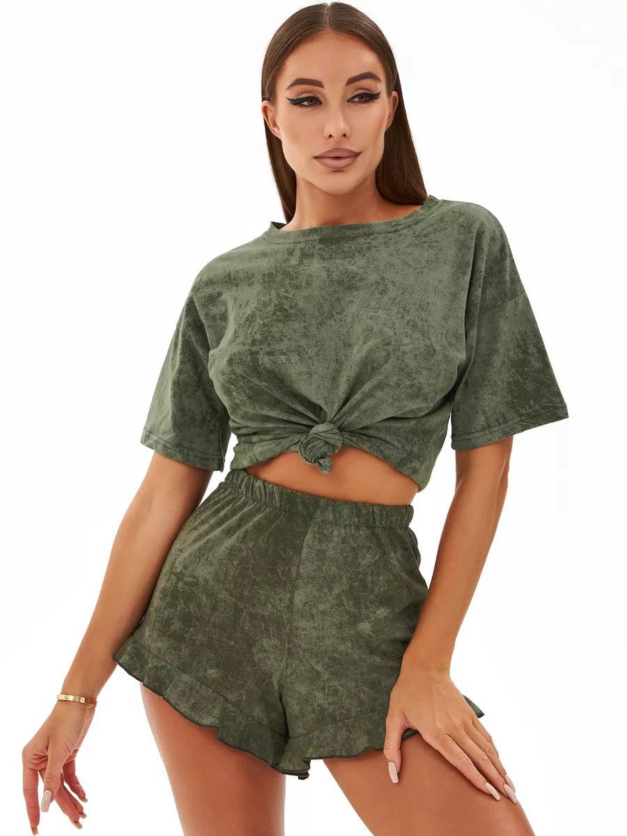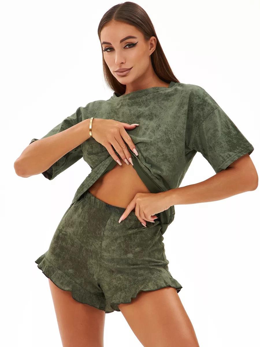 Conjunto de dos piezas de verano europeo y americano transfronterizo de manga corta y shorts para estar en casa para mujer, holgado y cómodo