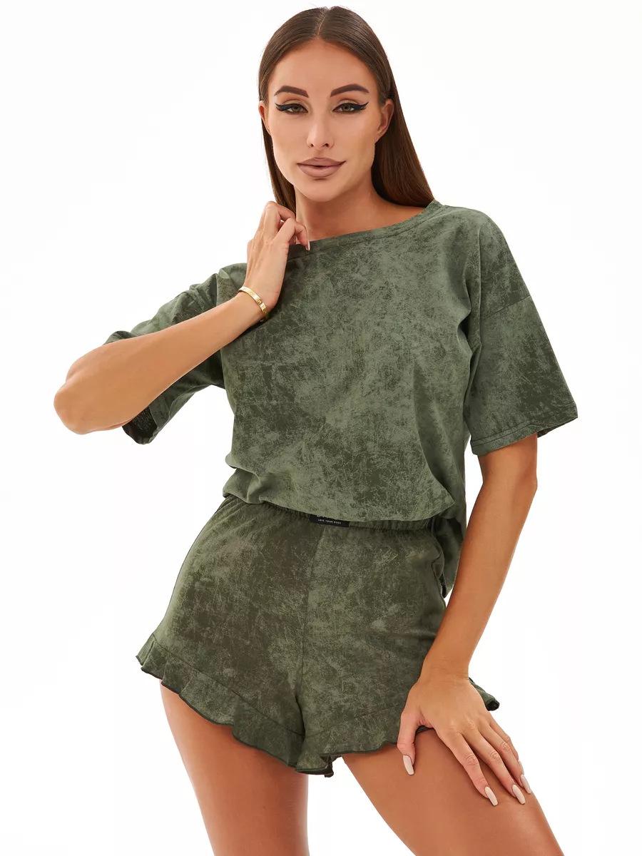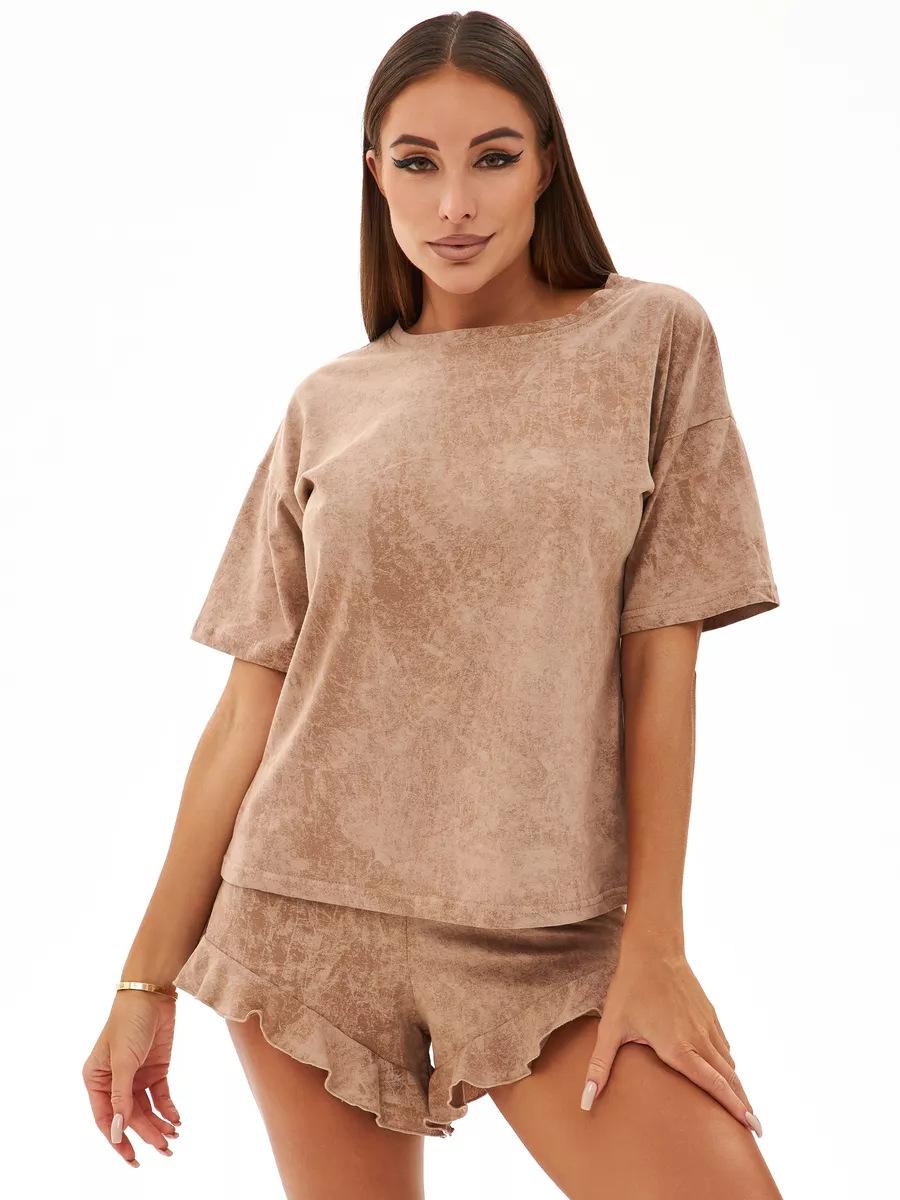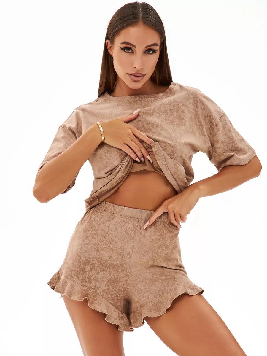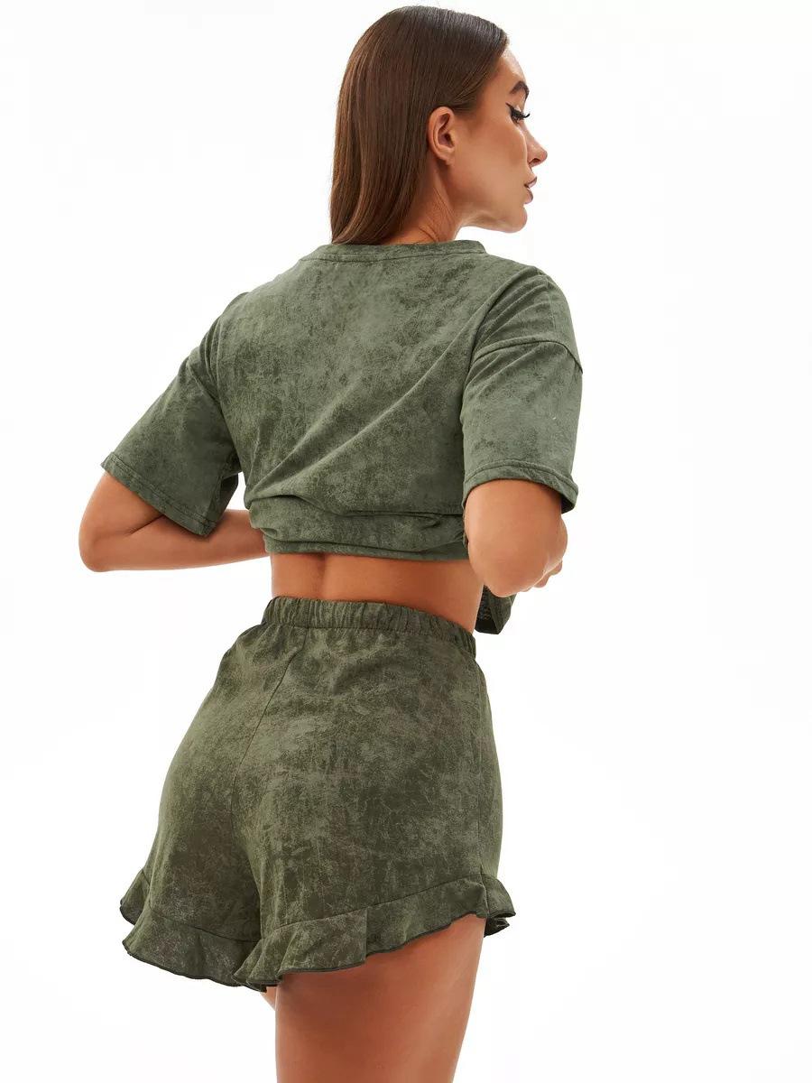 Conjunto de dos piezas de verano europeo y americano transfronterizo de manga corta y shorts para estar en casa para mujer, holgado y cómodo