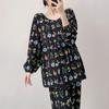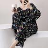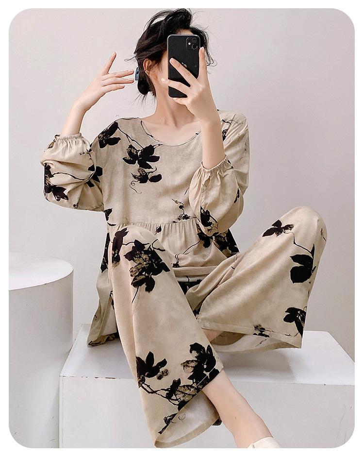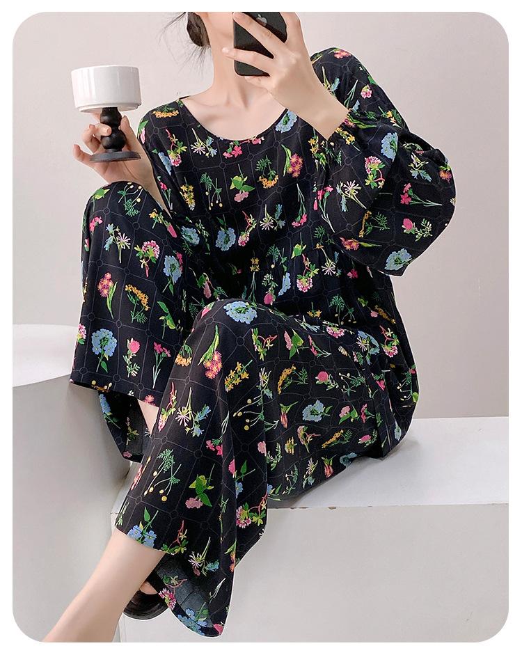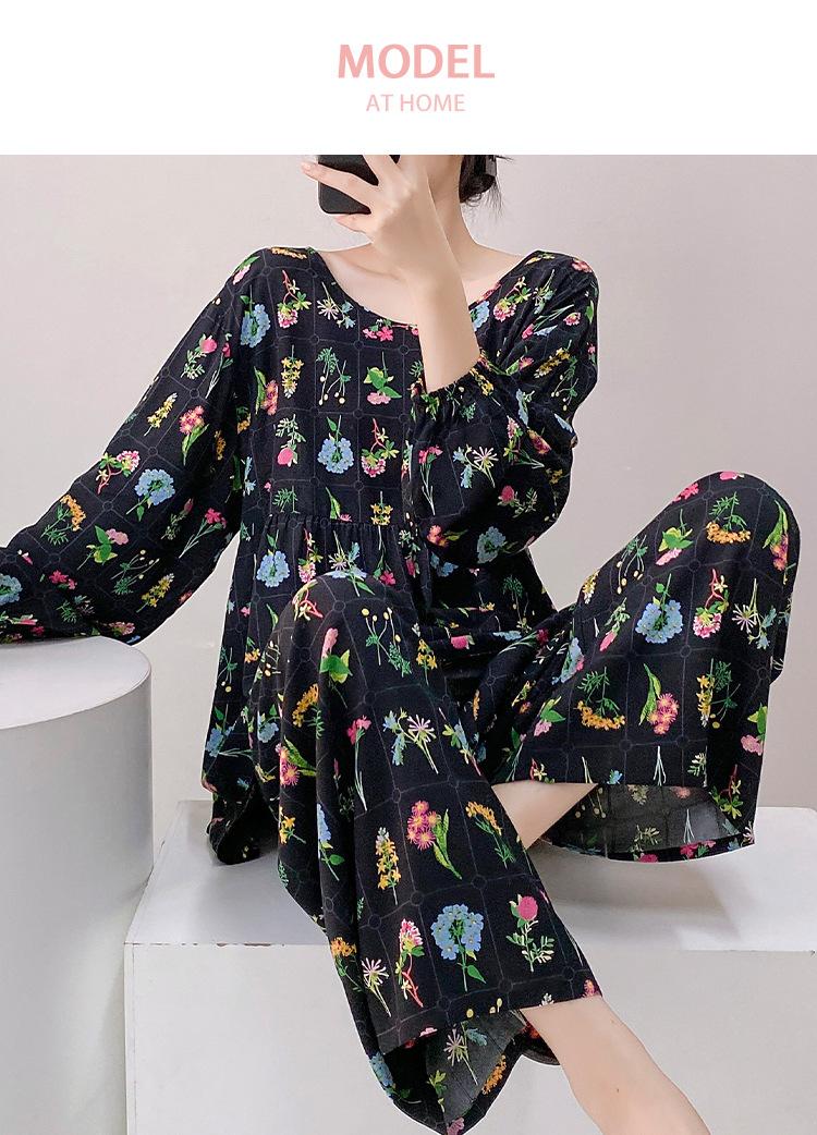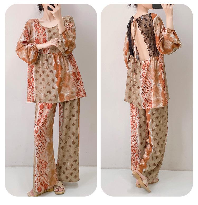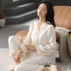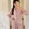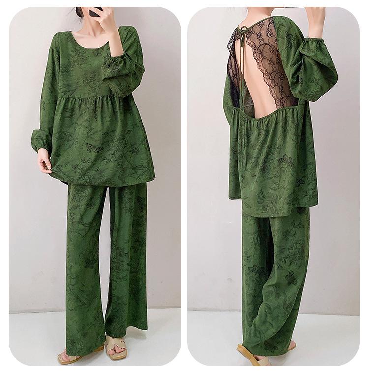 Pijama elegante de seda de algodón de manga larga de estilo francés para mujer, primavera y otoño, de alta gama, súper hermoso, con encaje negro, sin espalda, ropa para el hogar.
