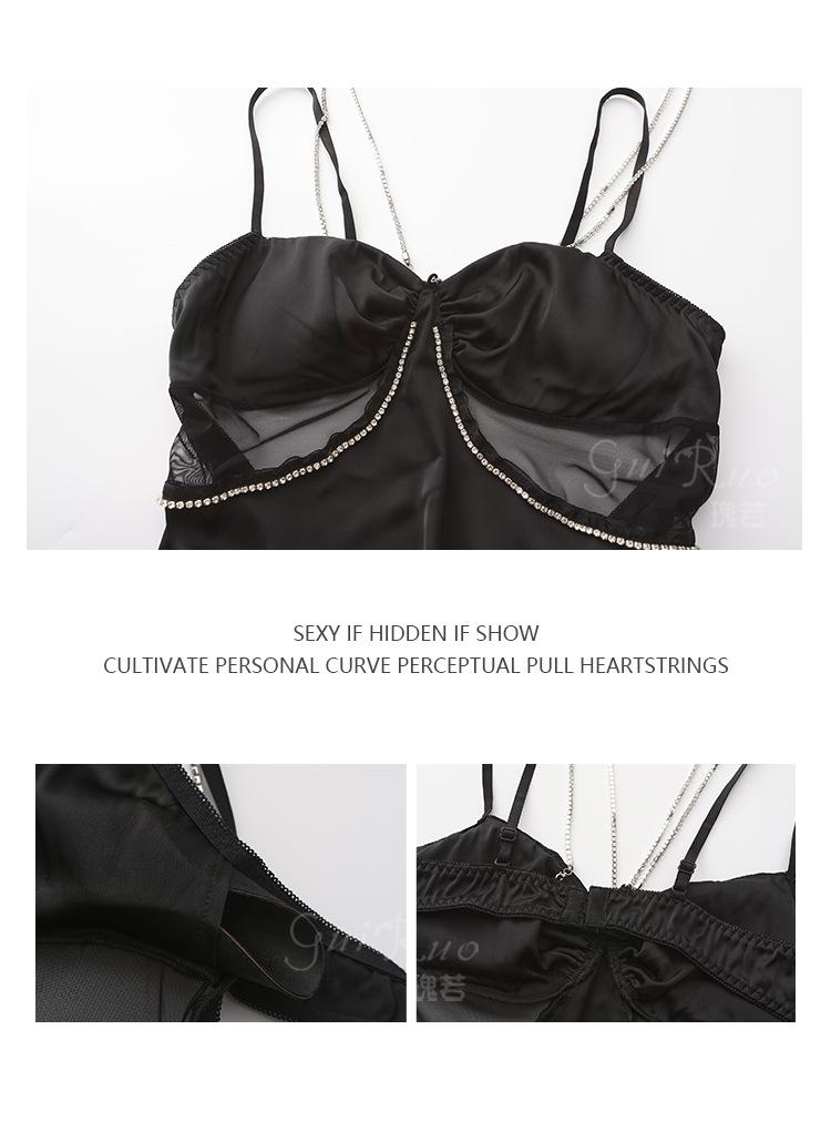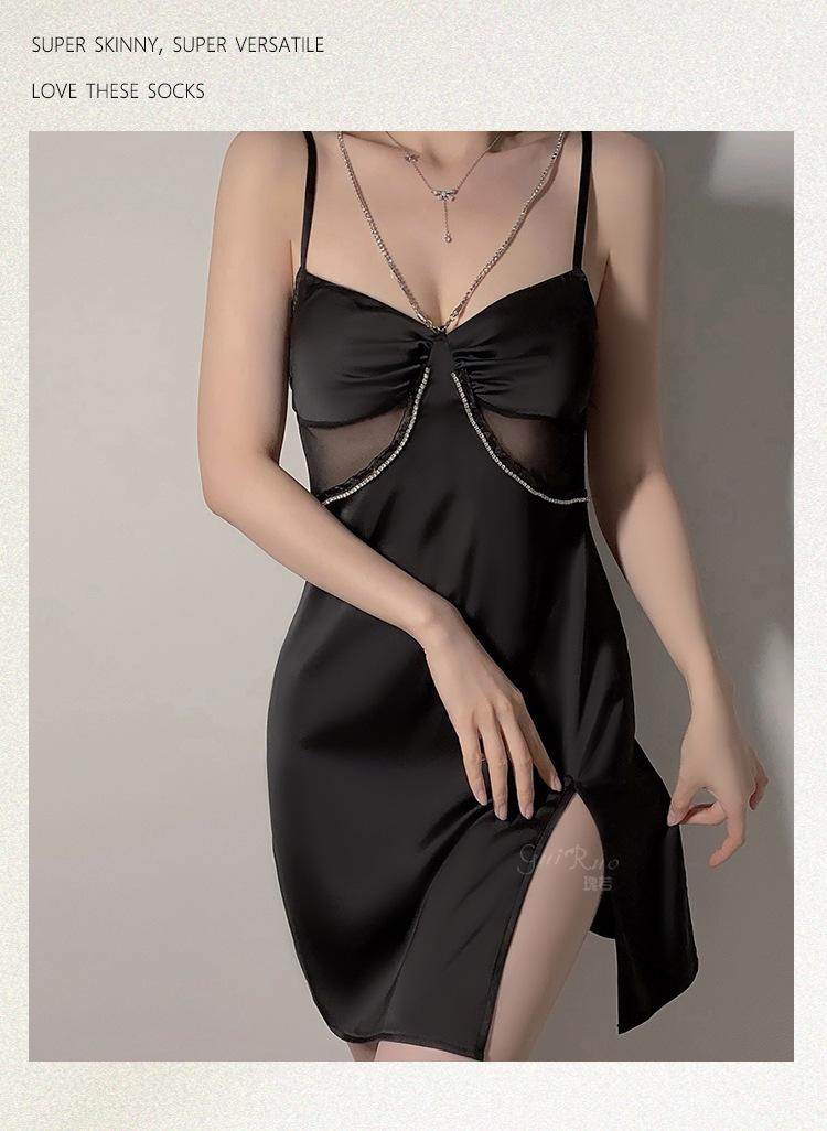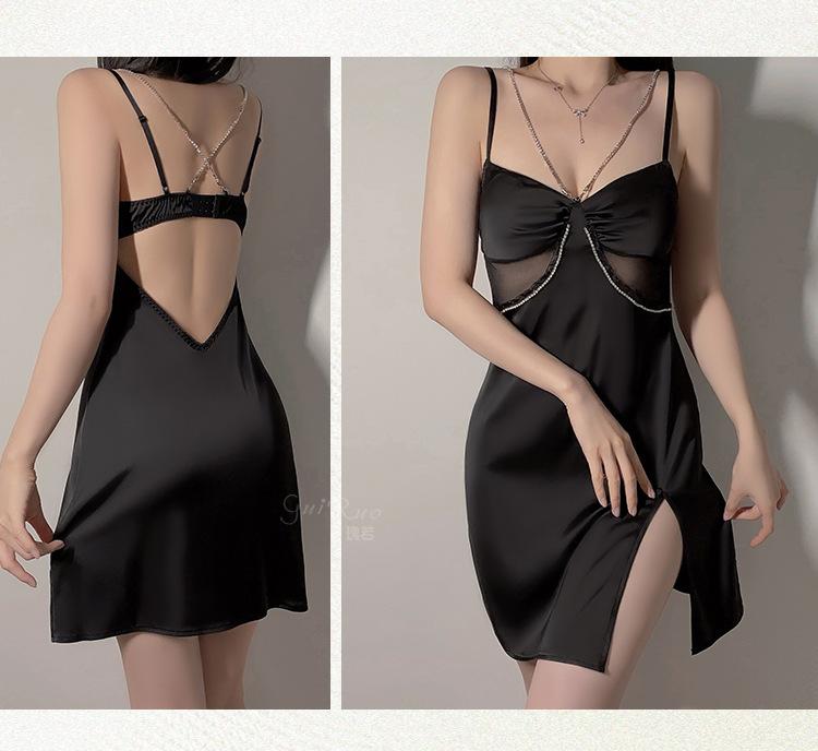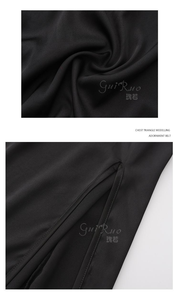 Camisón Guiruo de satén con abertura alta, espalda descubierta, escote en V profundo y almohadillas para el pecho, sexy y ajustado, C4637