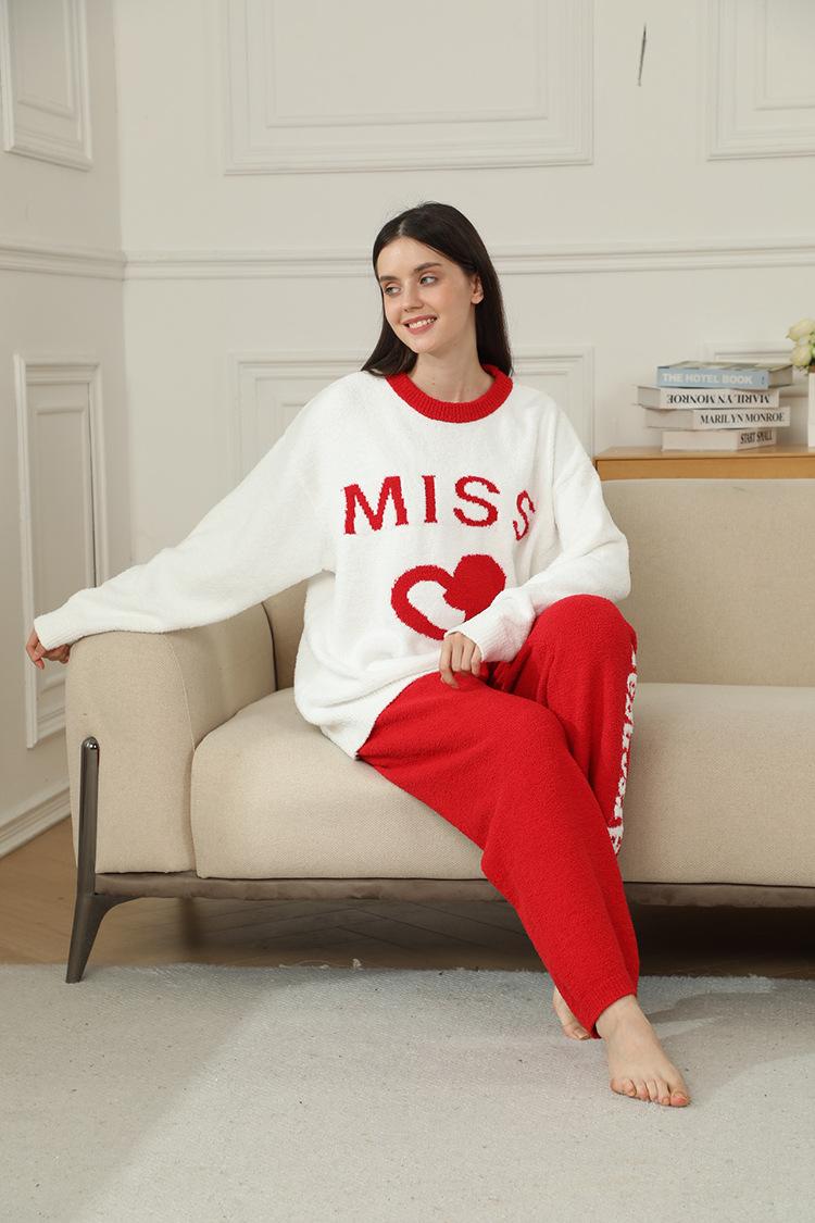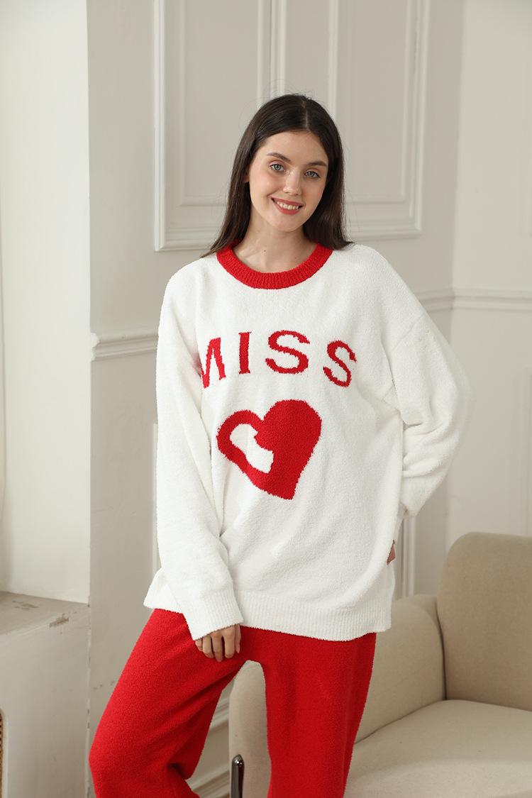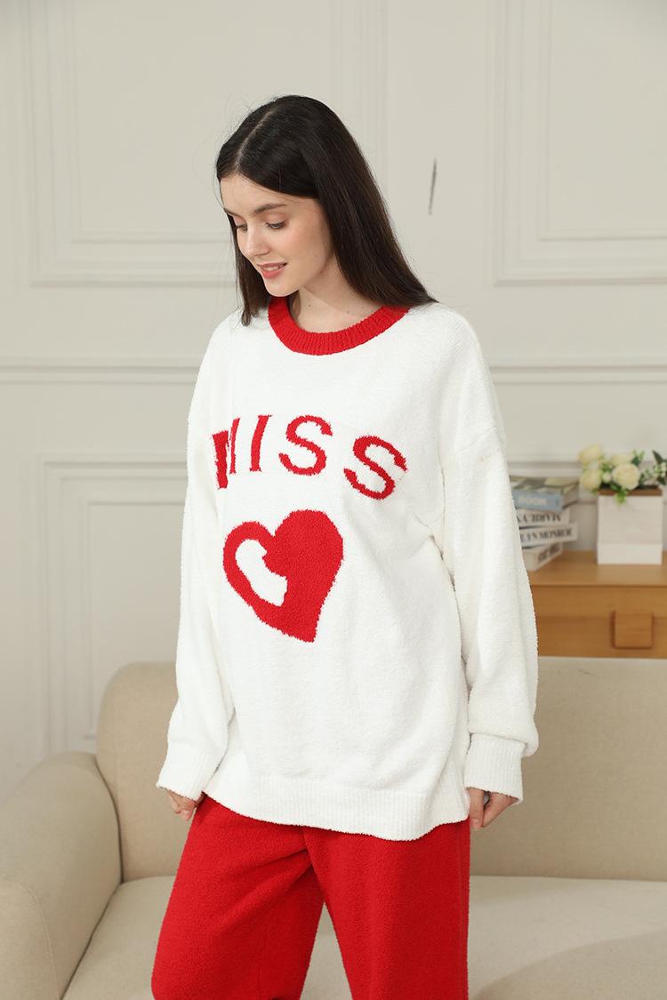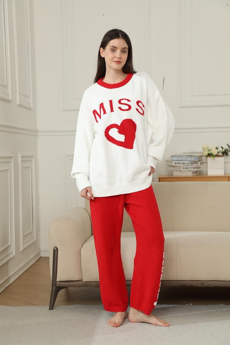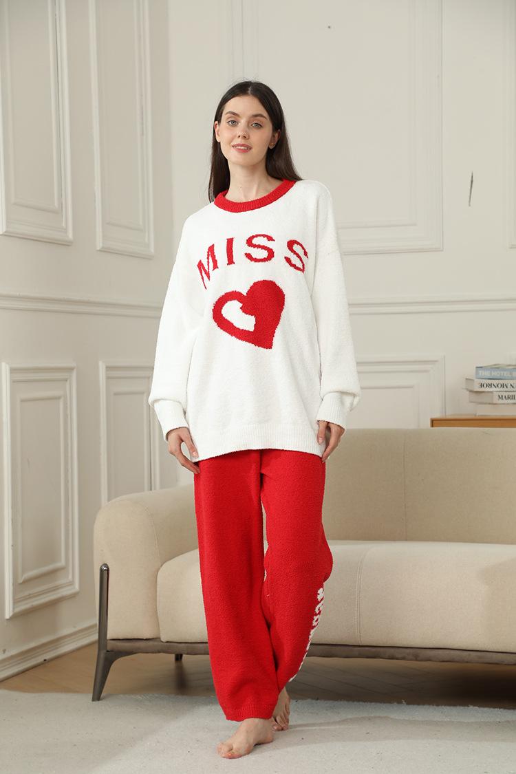 Otoño e invierno Nuevo Día de San Valentín Amor Hogar Ropa Exterior Pantalones de manga larga Traje casual Pijama cálido de terciopelo medio