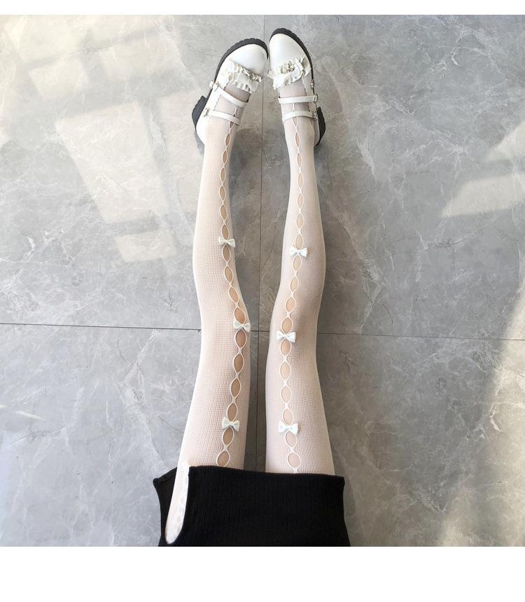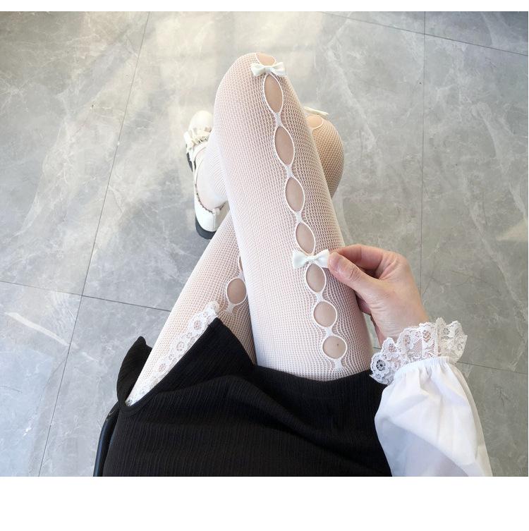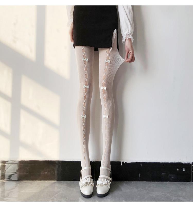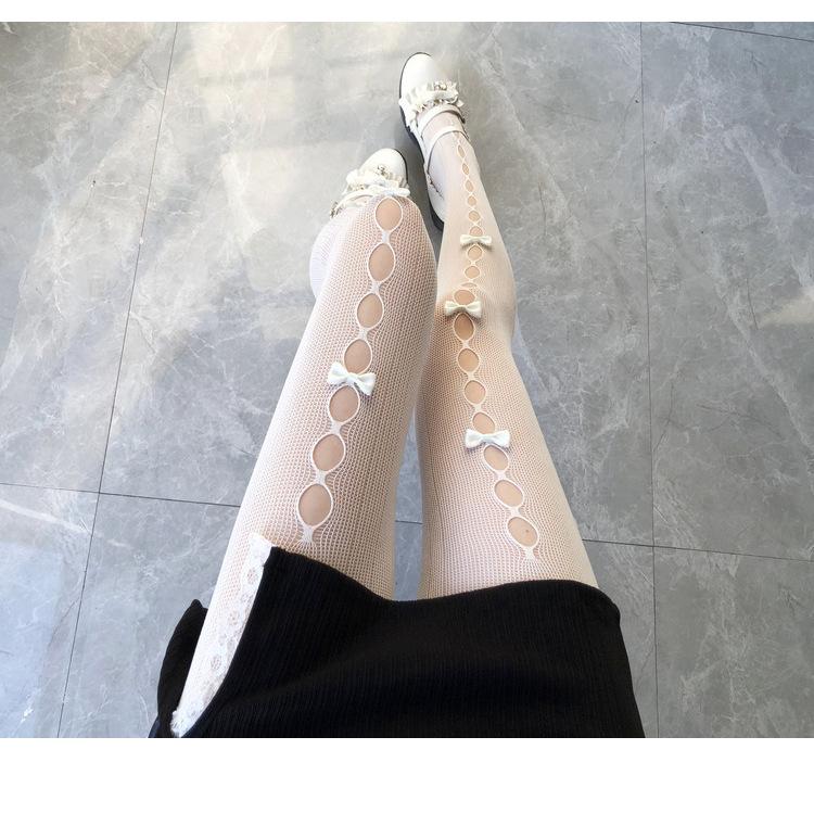 Medias de seda blanca con lazo para mujer, finas, de primavera y otoño, estilo japonés JK, de color blanco leche puro, sexys, de seda negra, con ganchos.