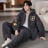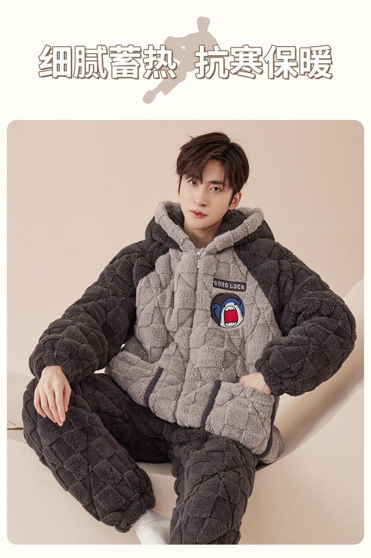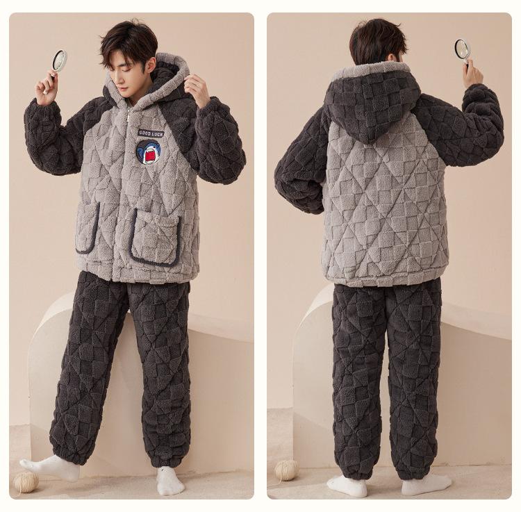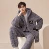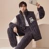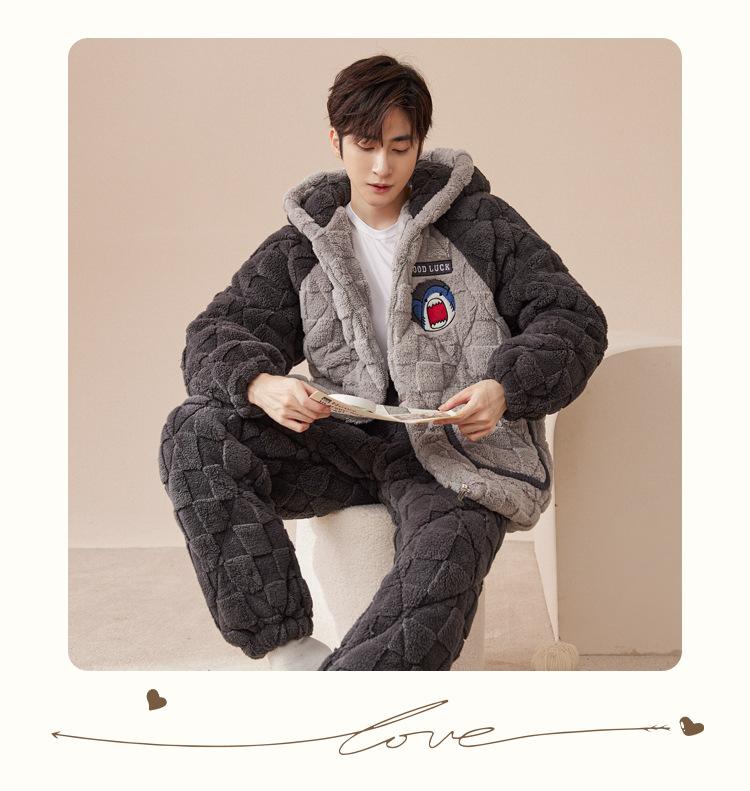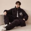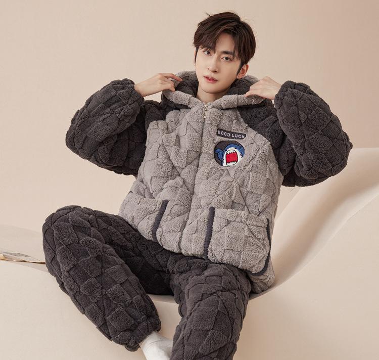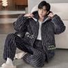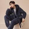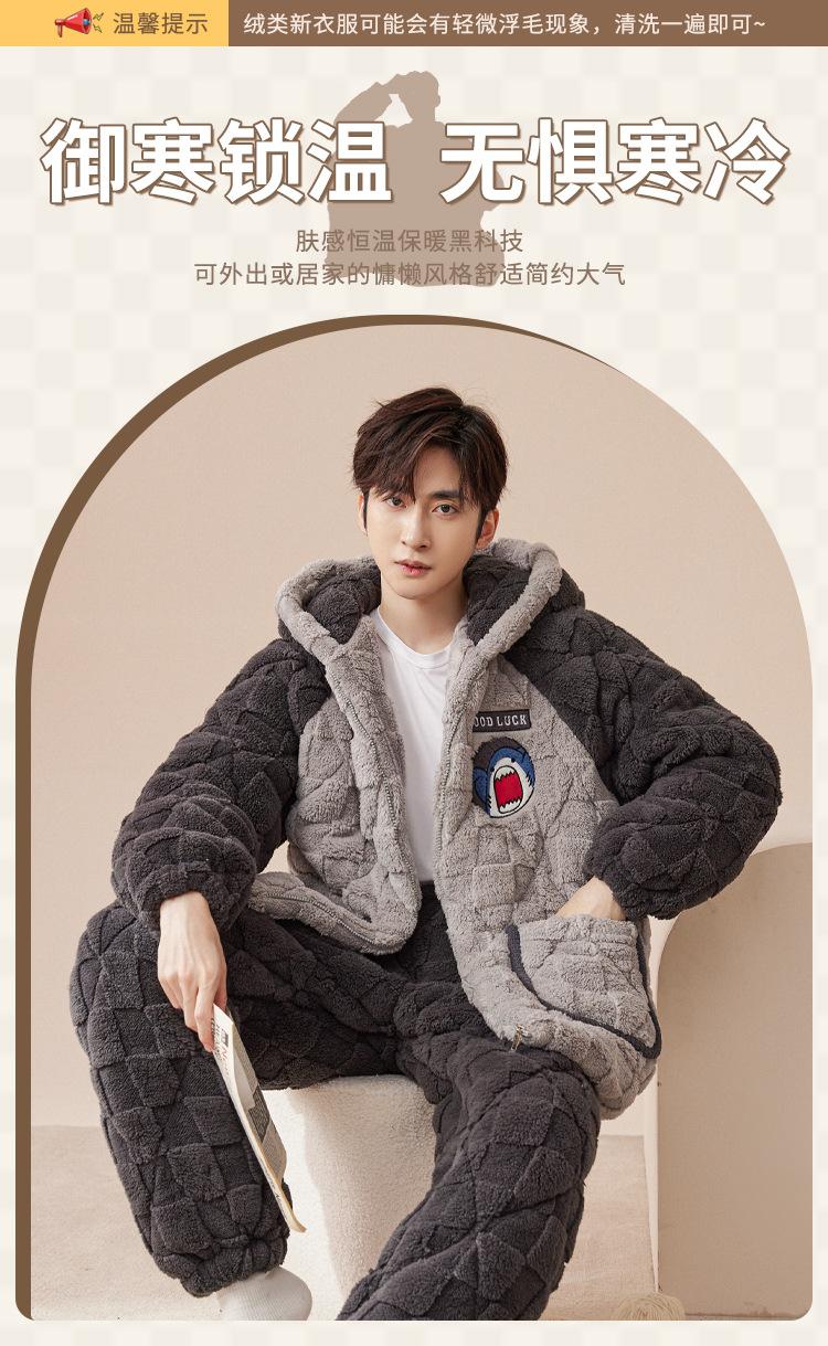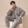 2024 Pijama Simple Juvenil de Vellón Coral con Cierre y Clip de Algodón para Hombre Otoño e Invierno Traje Grueso Ropa de Casa Franela