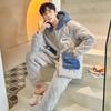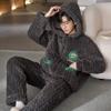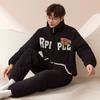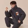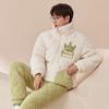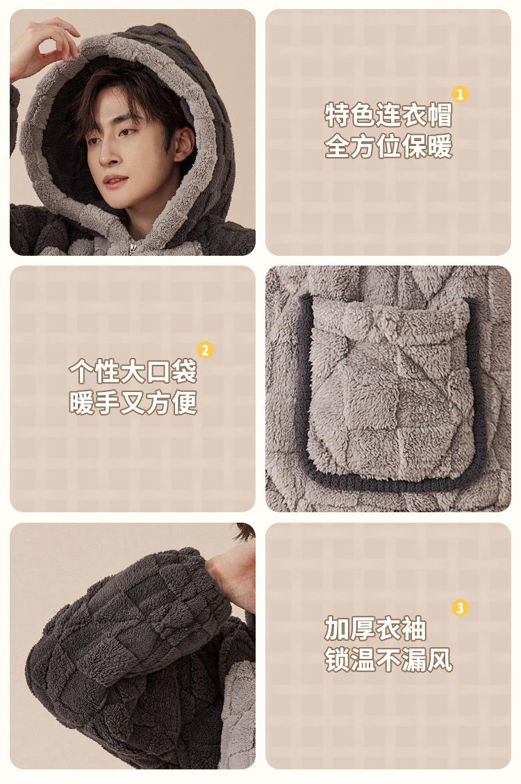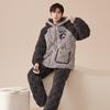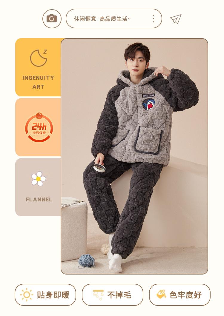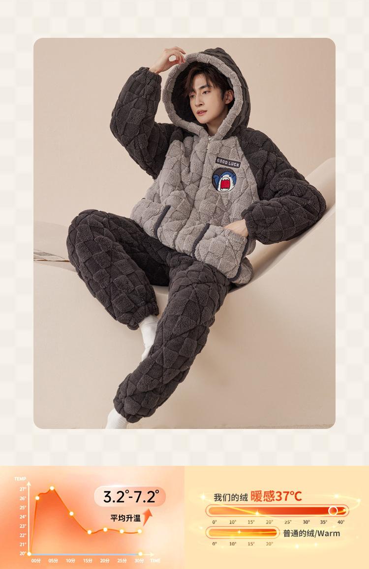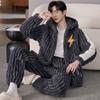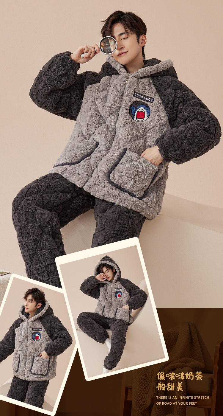 2024 Pijama Simple Juvenil de Vellón Coral con Cierre y Clip de Algodón para Hombre Otoño e Invierno Traje Grueso Ropa de Casa Franela