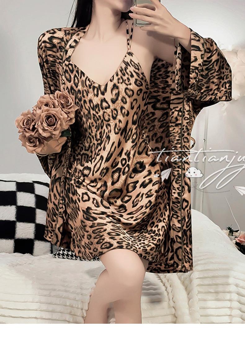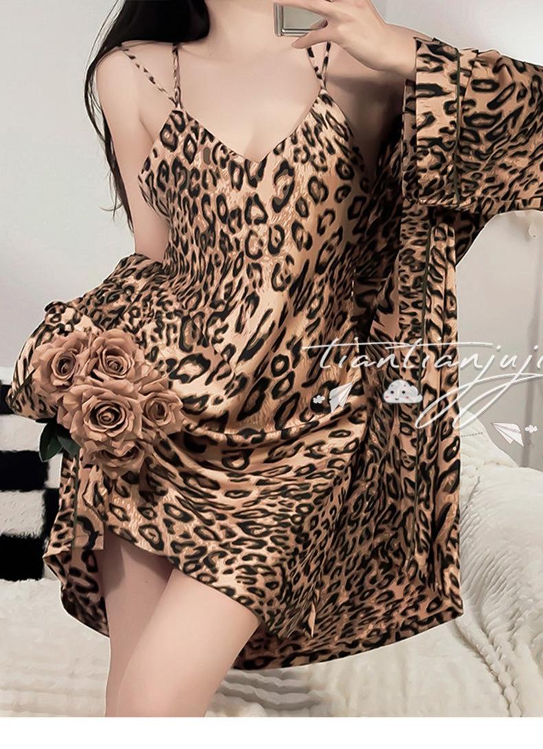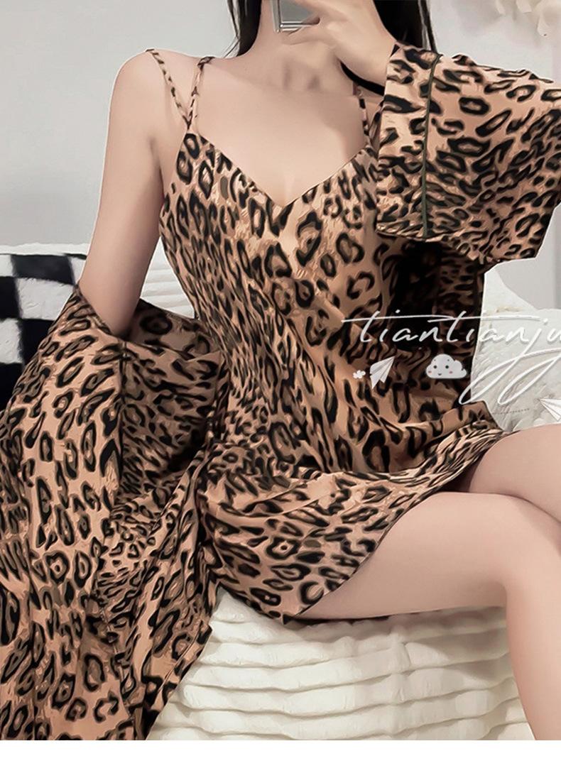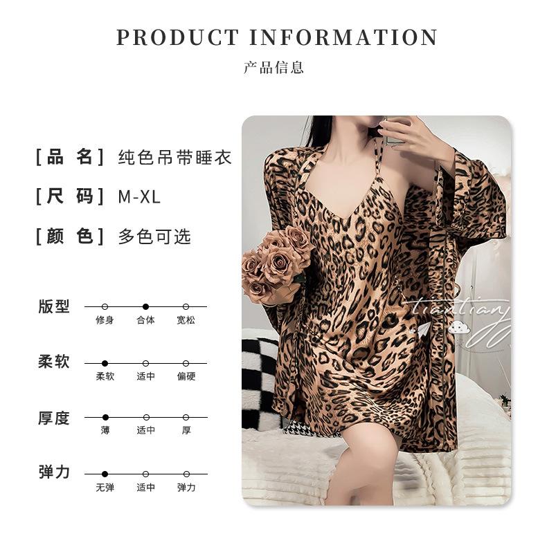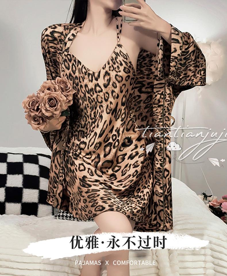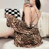 Pijama sexy con estampado de leopardo y tirantes, ropa interior de encaje para el hogar de seda de hielo, camisón para mujer, verano 2024, nuevo, corto