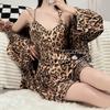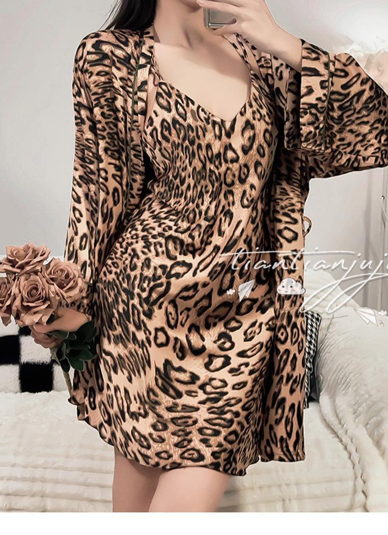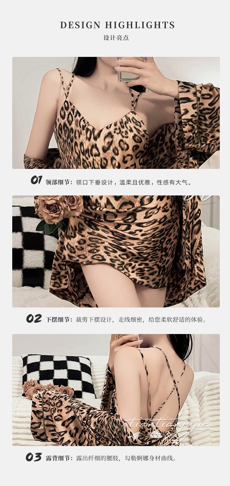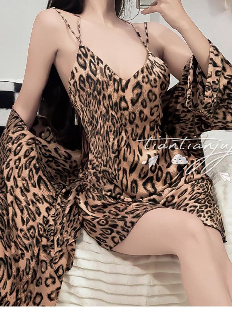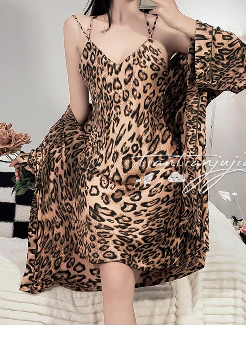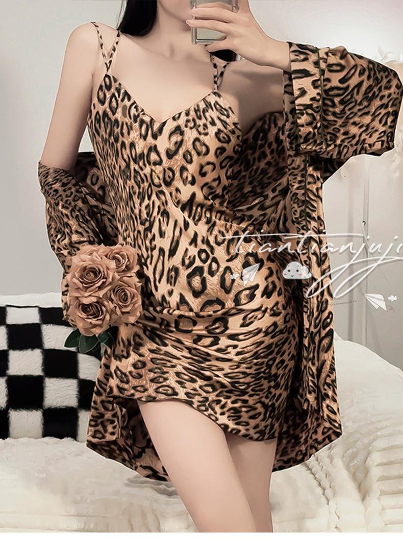 Pijama sexy con estampado de leopardo y tirantes, ropa interior de encaje para el hogar de seda de hielo, camisón para mujer, verano 2024, nuevo, corto
