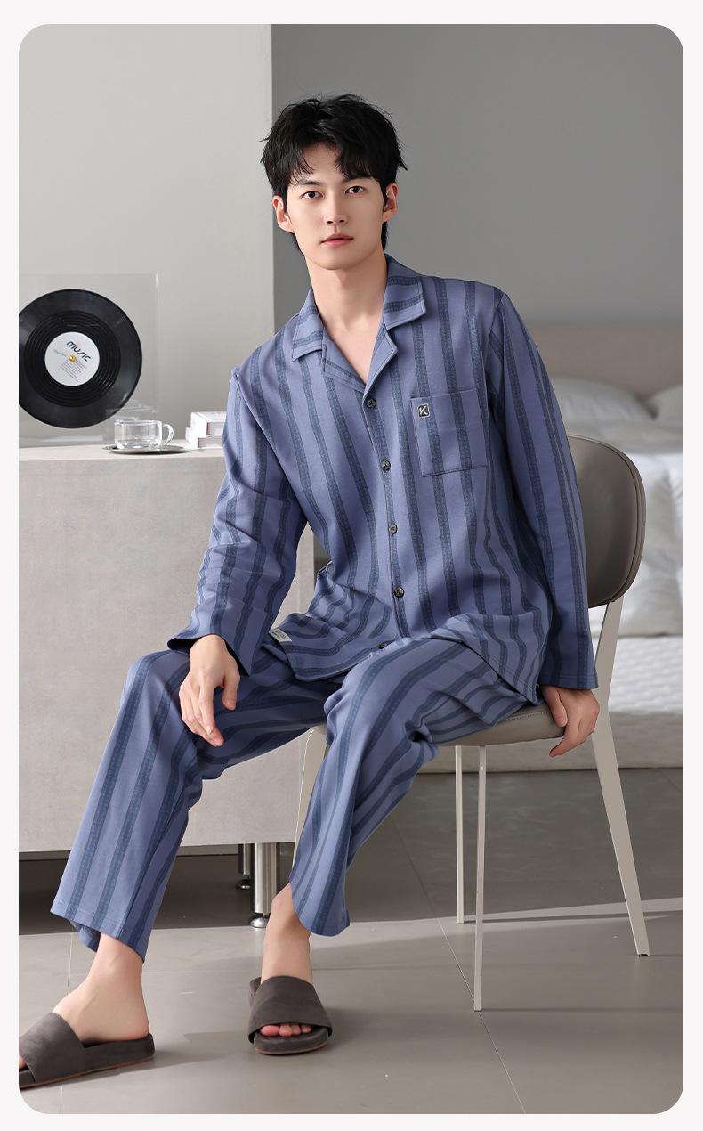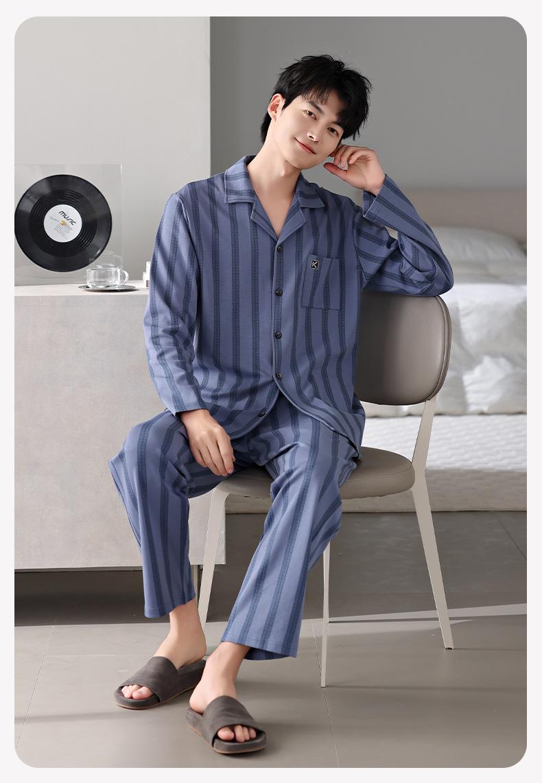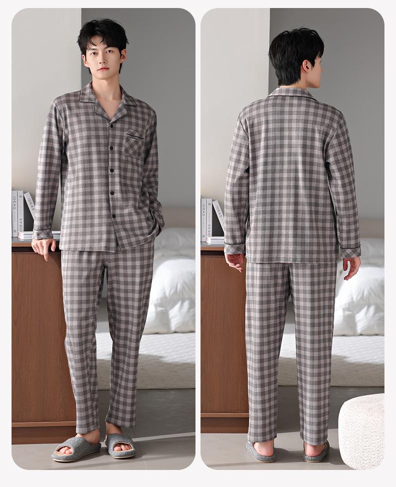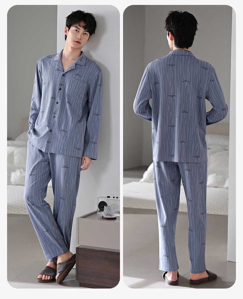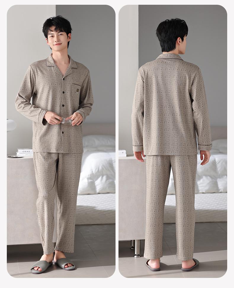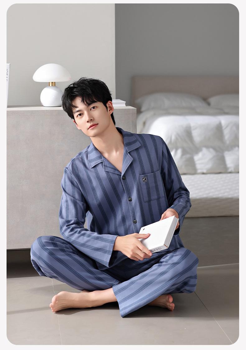 Pijamas de algodón puro para hombre, primavera y otoño, nuevo traje juvenil, informal, sencillo, de algodón puro, cárdigan de primavera, ropa de moda para el hogar.