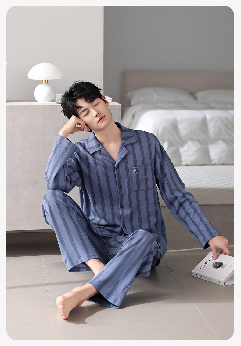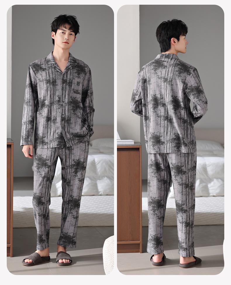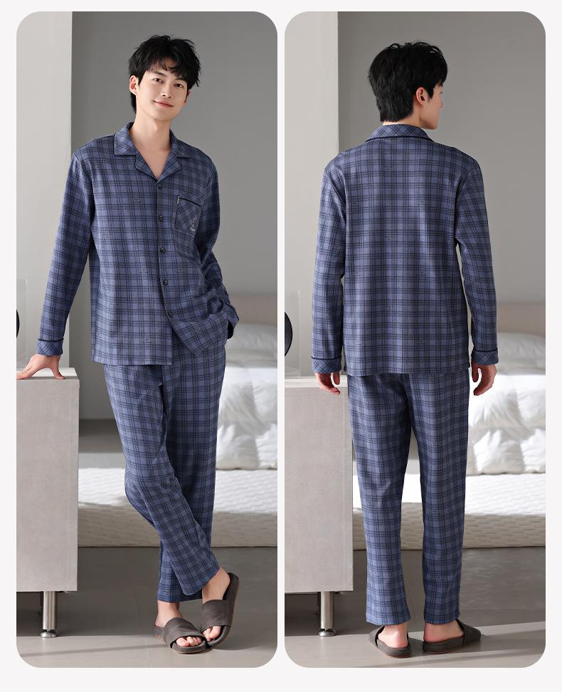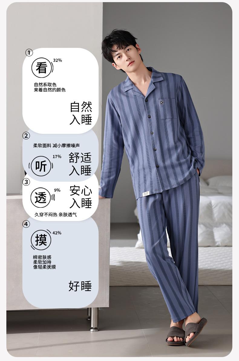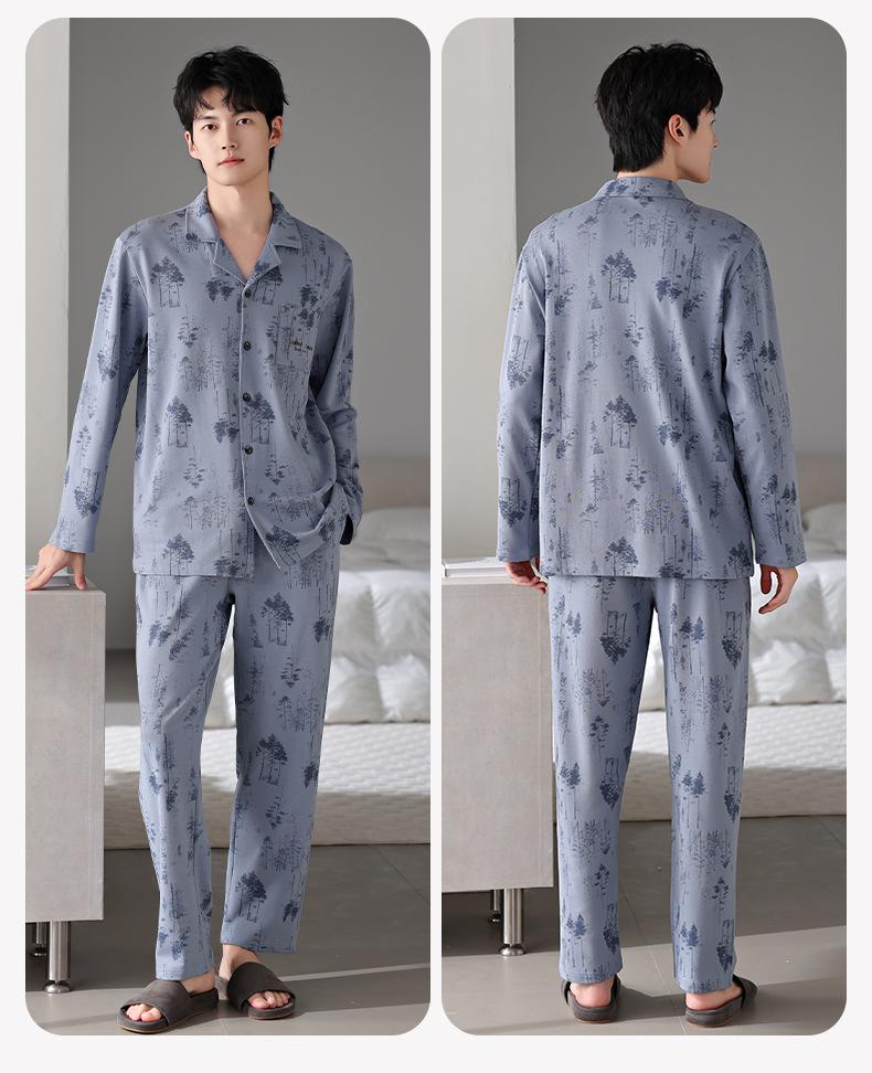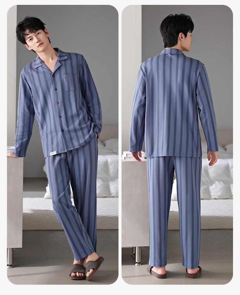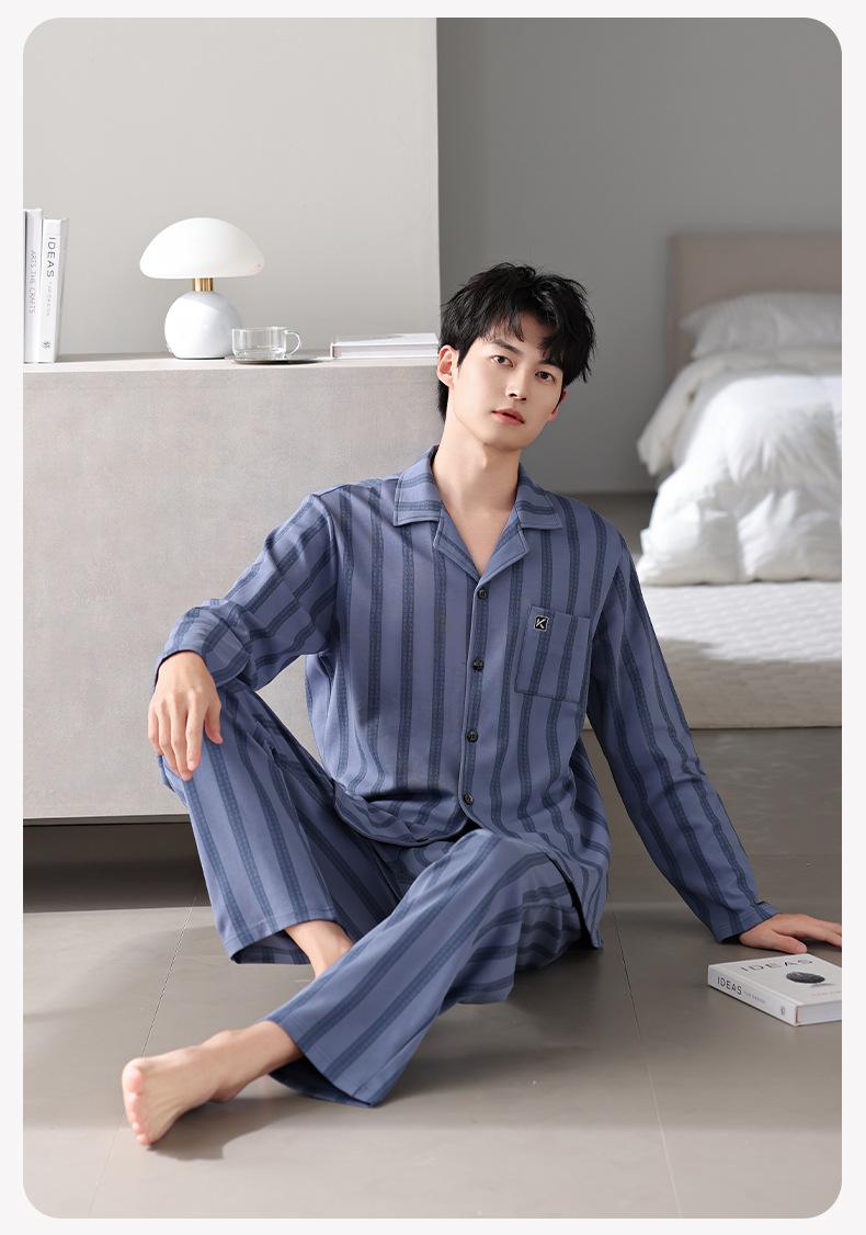Pijamas de algodón puro para hombre, primavera y otoño, nuevo traje juvenil, informal, sencillo, de algodón puro, cárdigan de primavera, ropa de moda para el hogar.