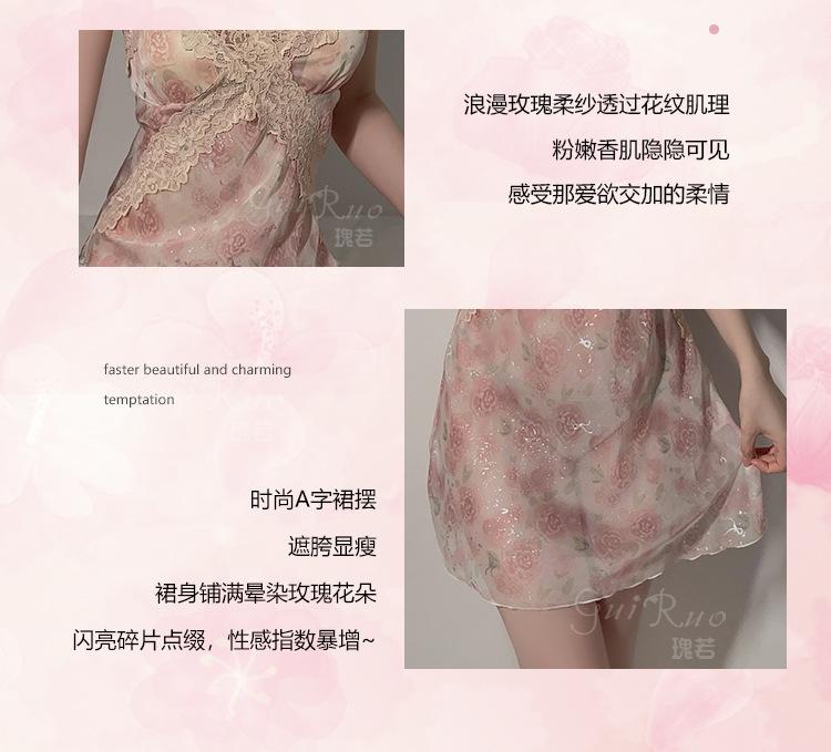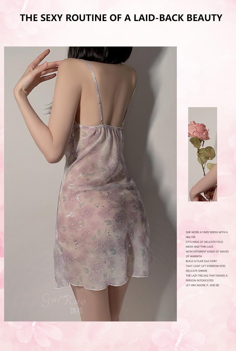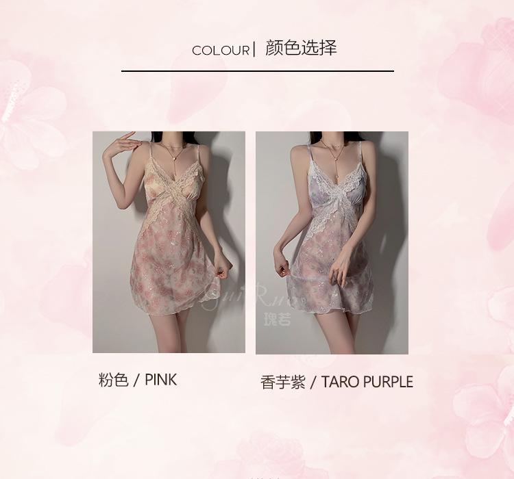 Guiruo Sexy Escote en V Profundo con Almohadilla para el Busto Pijama Tentación Deseo Puro Gasa Transparente Talla Grande Camisón Conjunto Ropa para el Hogar 4903
