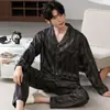 Compra [Suave, ligero y suave seda] Pijamas de seda de hielo para hombre, primavera y otoño, verano, tallas grandes, frescos, de manga larga, de marca, ropa de hogar holgada. al por mayor en Joom.pro