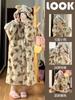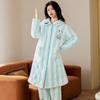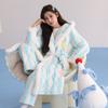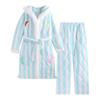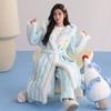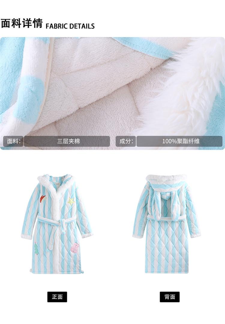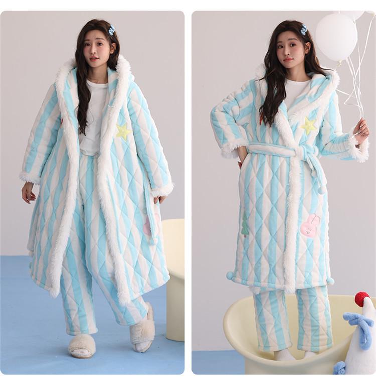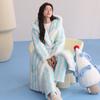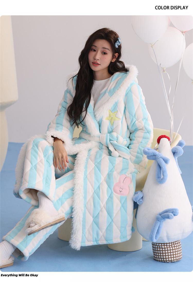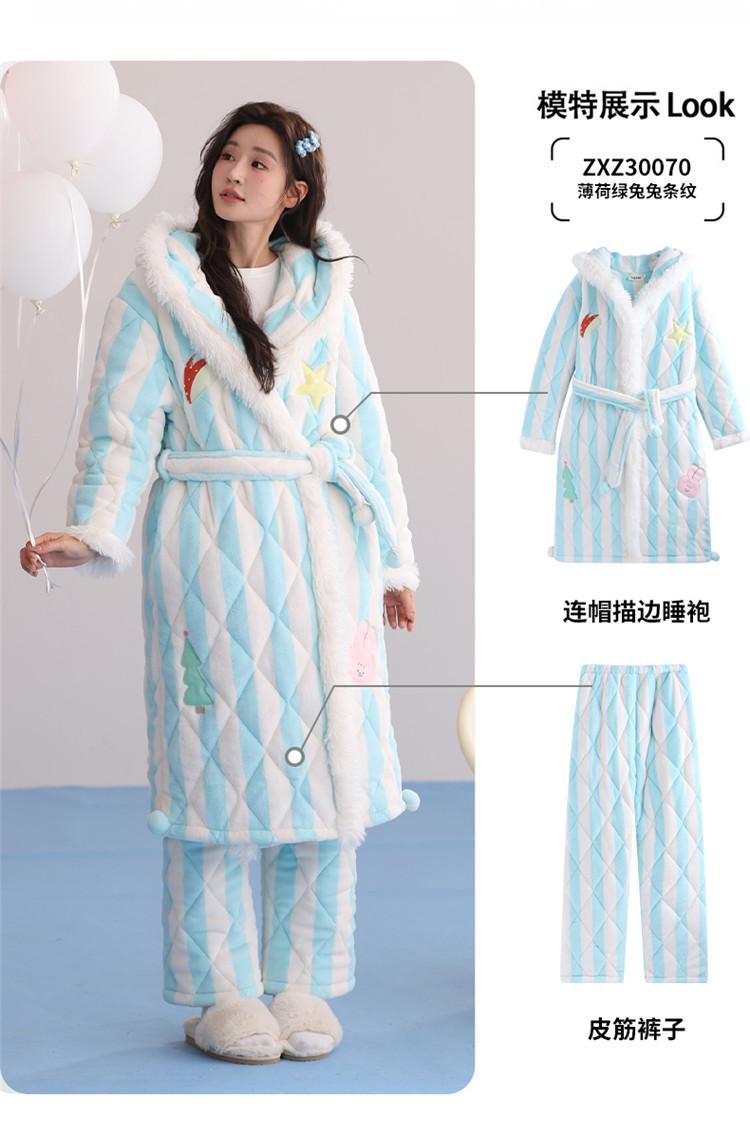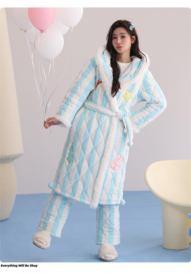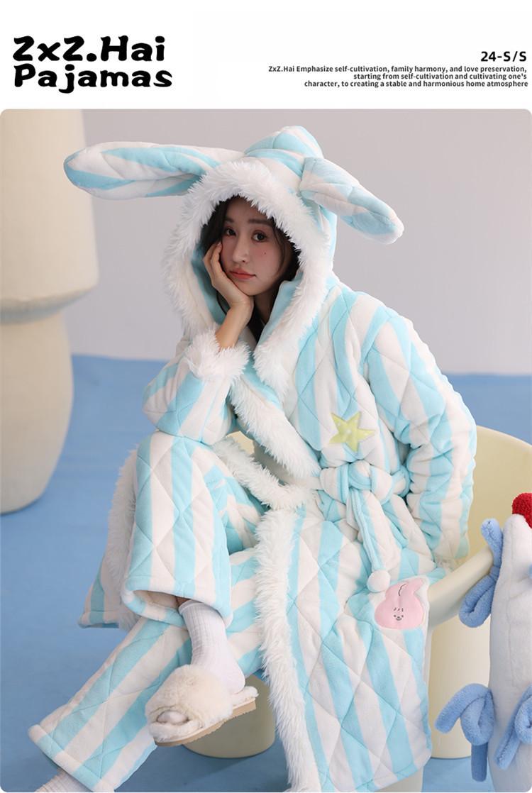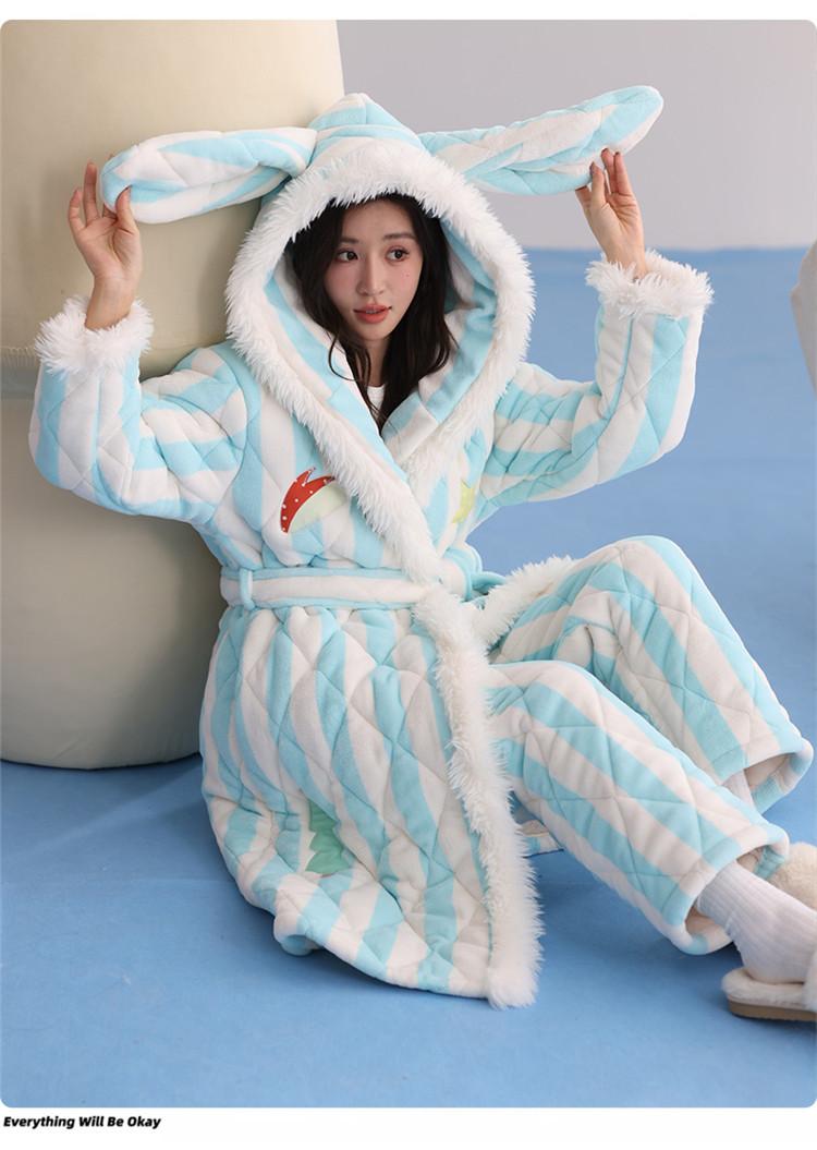 Bata de algodón súper gruesa con rayas de conejo verde menta para otoño e invierno, ropa cálida para el hogar, camisón de dibujos animados bonitos