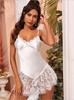 2025 Nuevo Estilo Lujuria Pura Pijama Camisón de Tirantes Primavera y Verano Encaje de Seda Imitación Blanco Camisón de Tirantes Sexy Modificado