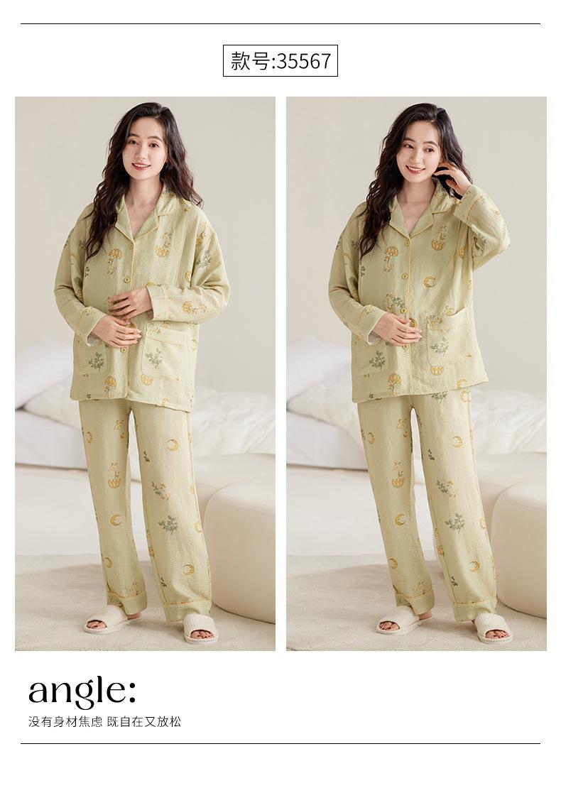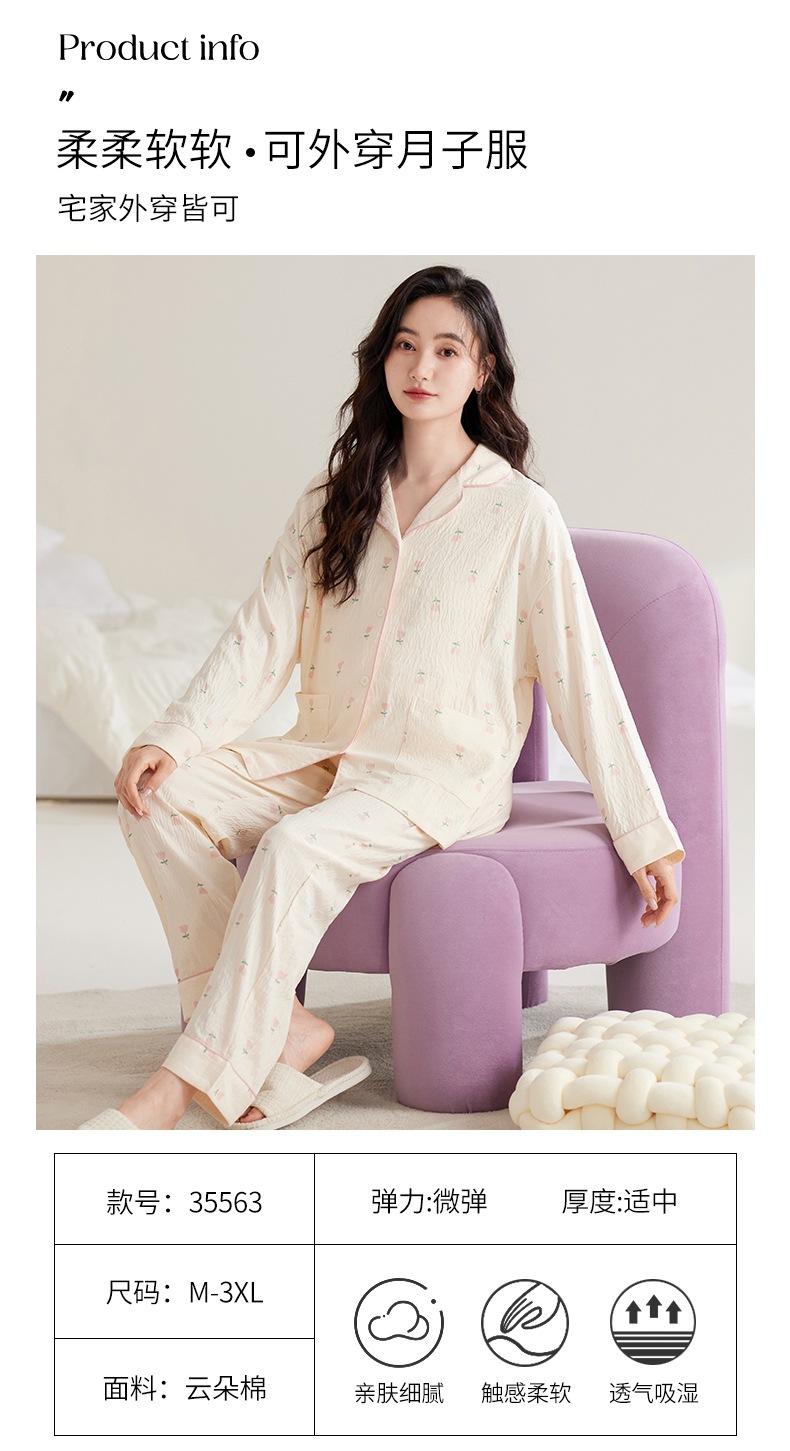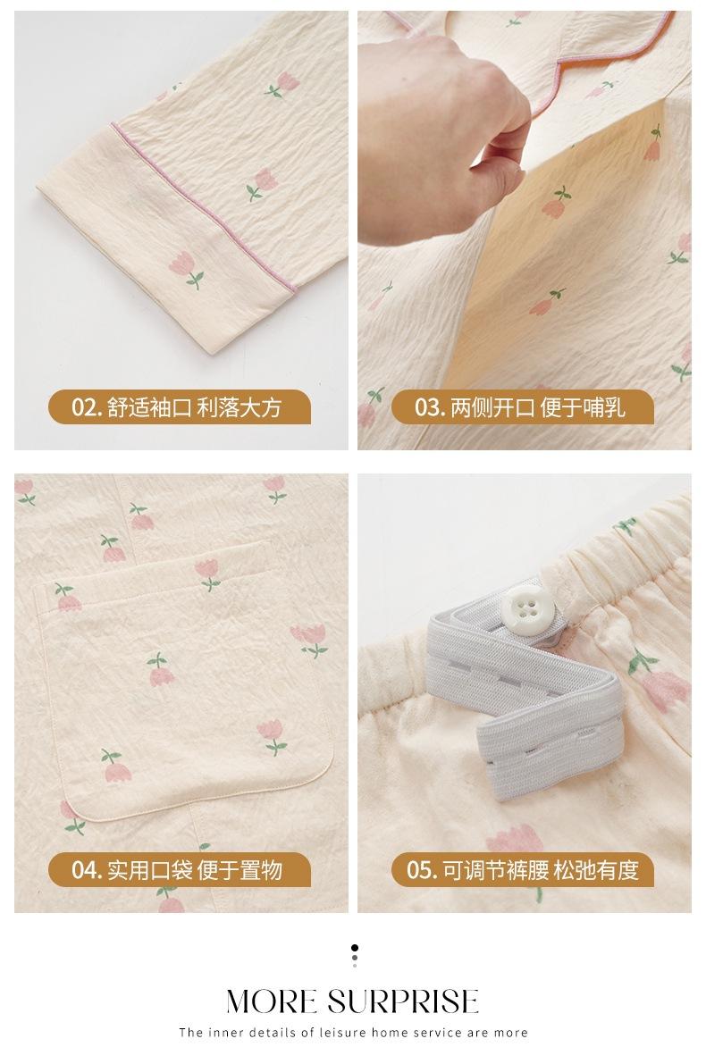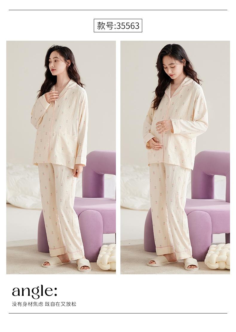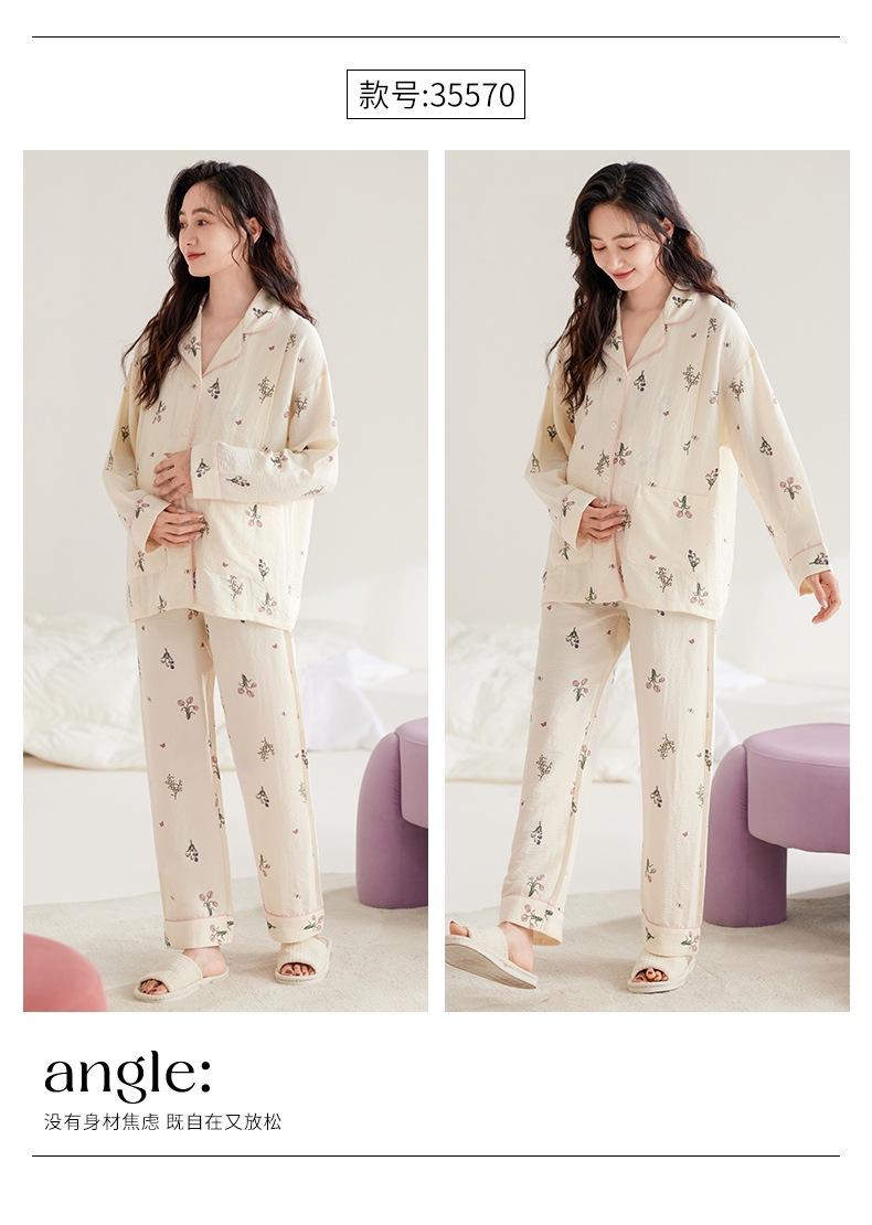 En stock Nuevo pijama para maternidad Primavera y Otoño Nubes Algodón Gasa Cárdigan Solapa para Embarazadas Traje de Maternidad Posparto