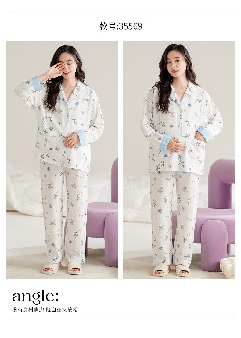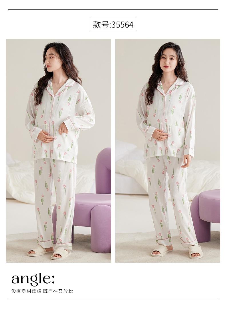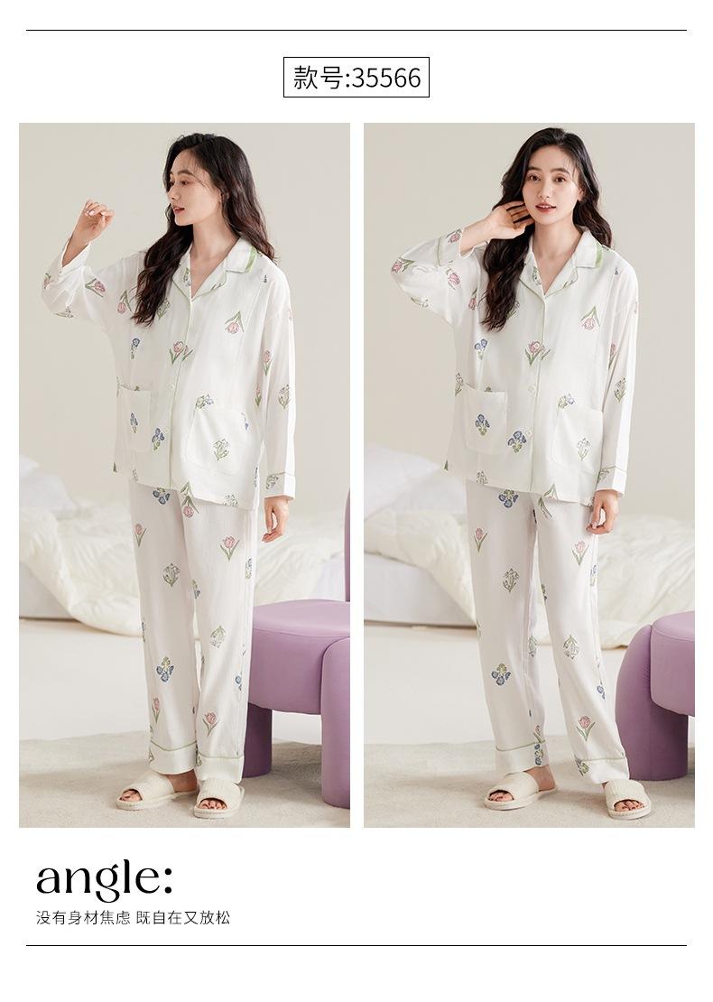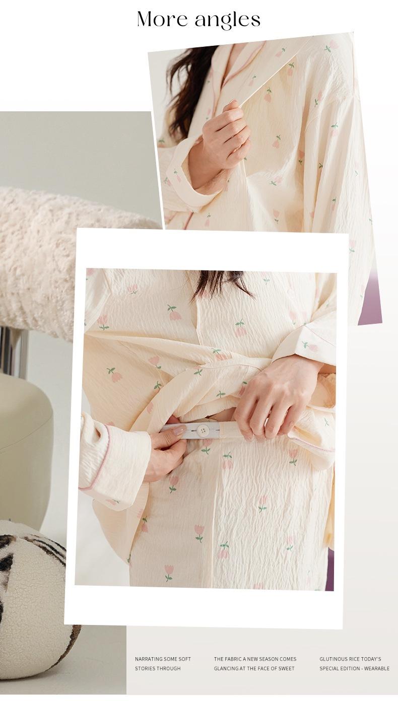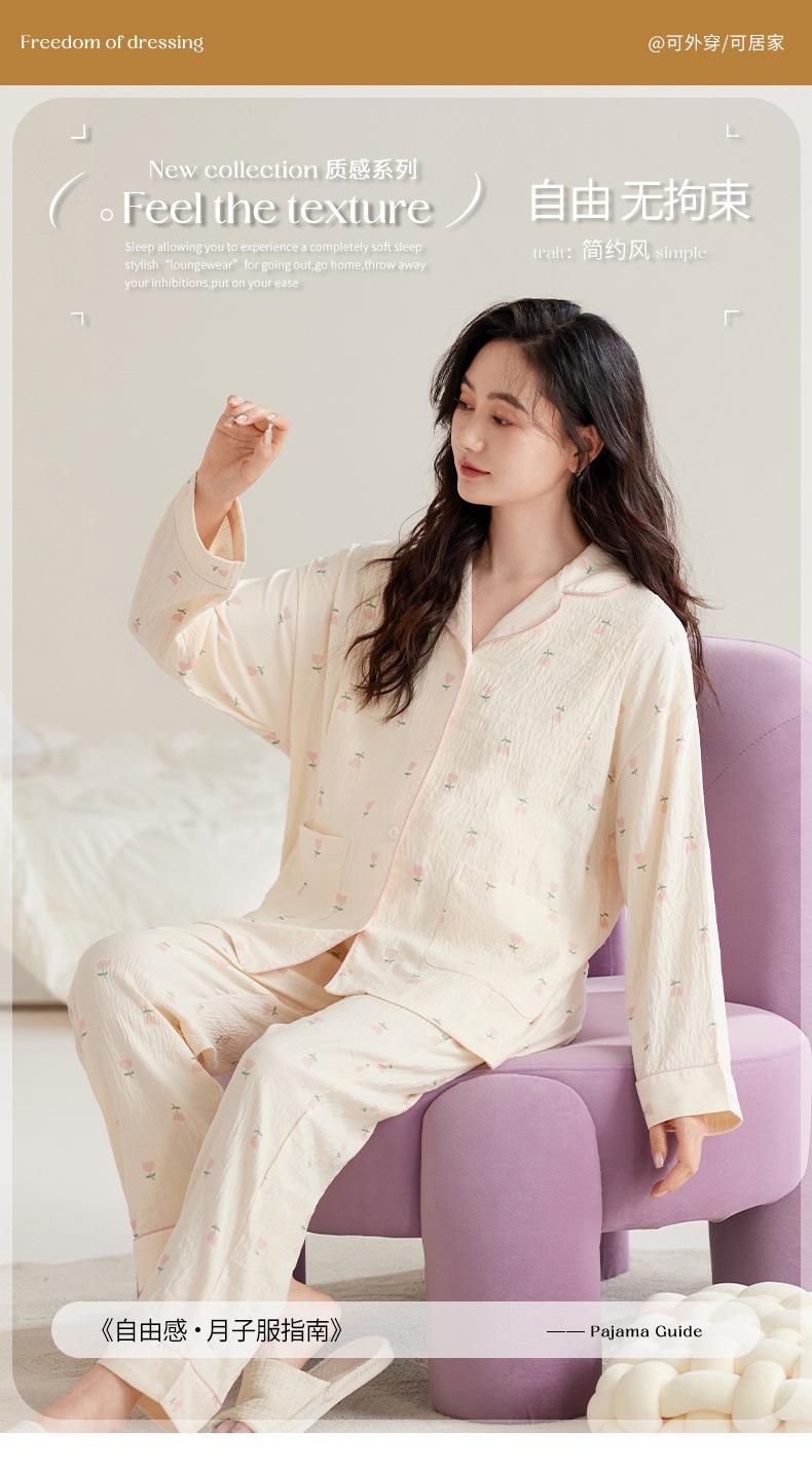 En stock Nuevo pijama para maternidad Primavera y Otoño Nubes Algodón Gasa Cárdigan Solapa para Embarazadas Traje de Maternidad Posparto