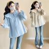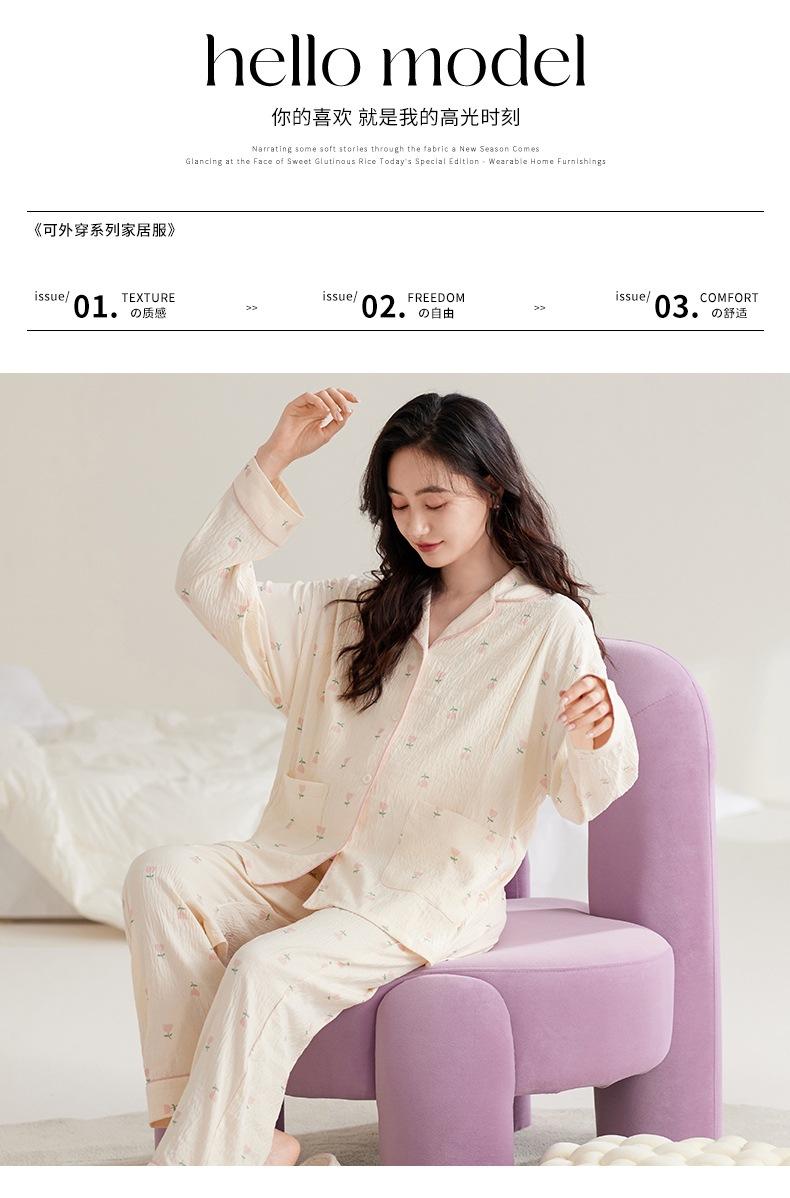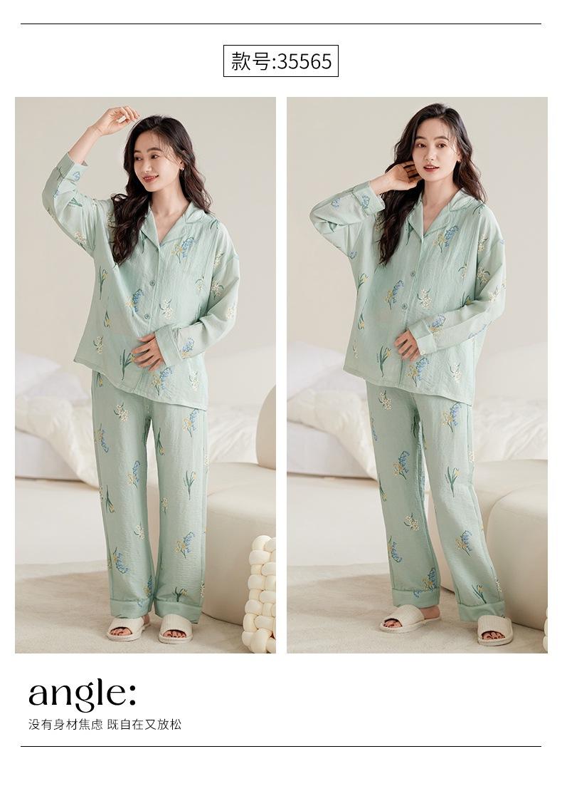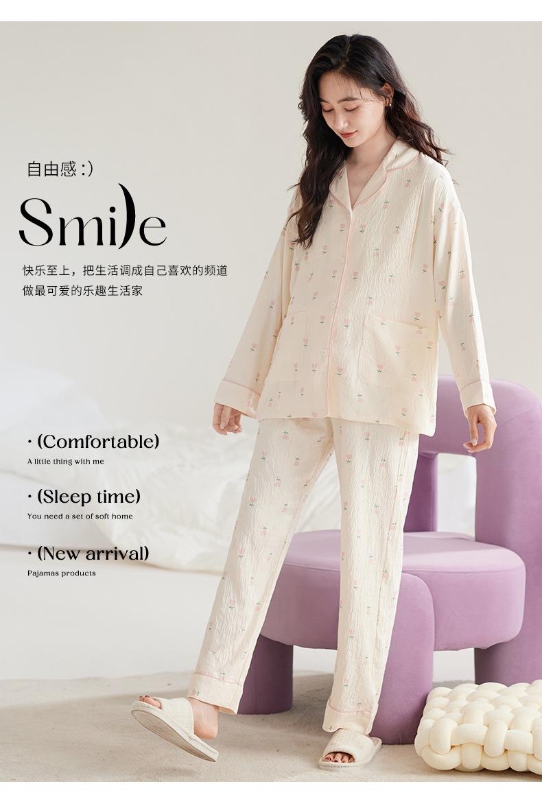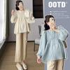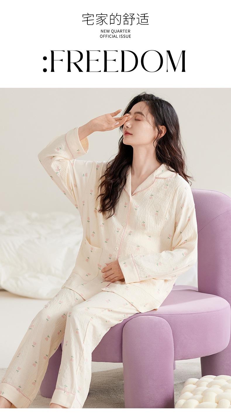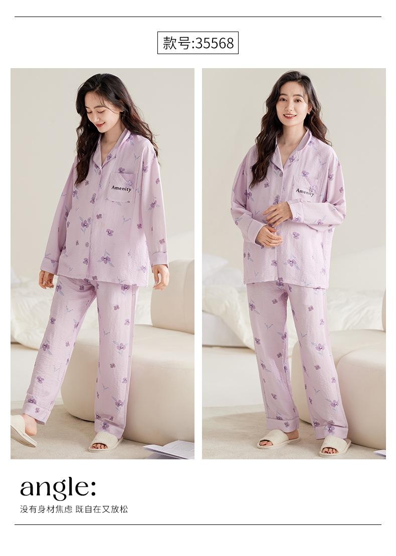 En stock Nuevo pijama para maternidad Primavera y Otoño Nubes Algodón Gasa Cárdigan Solapa para Embarazadas Traje de Maternidad Posparto