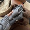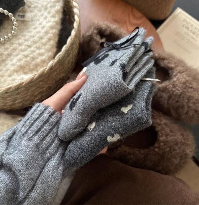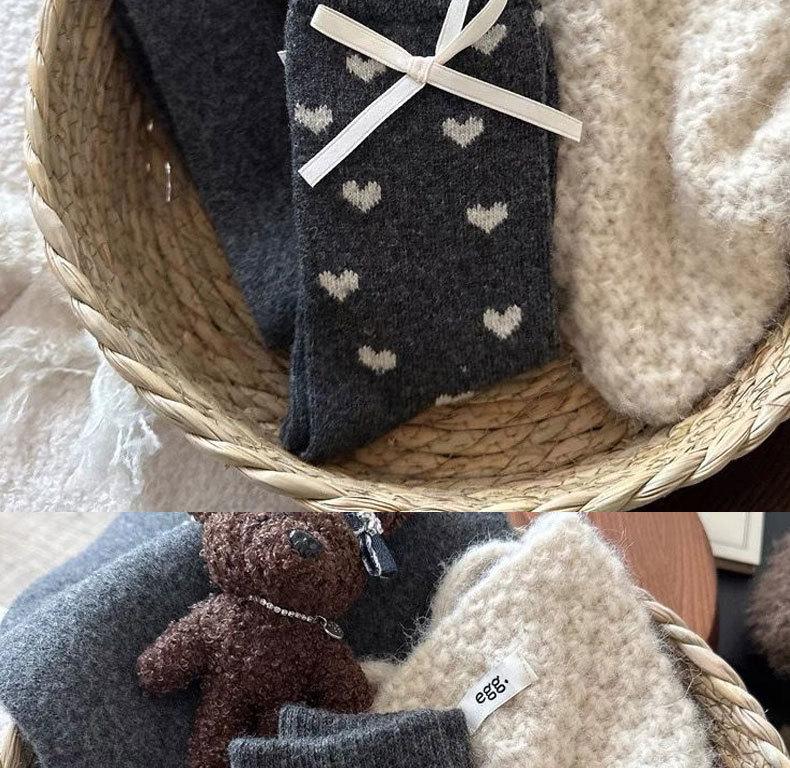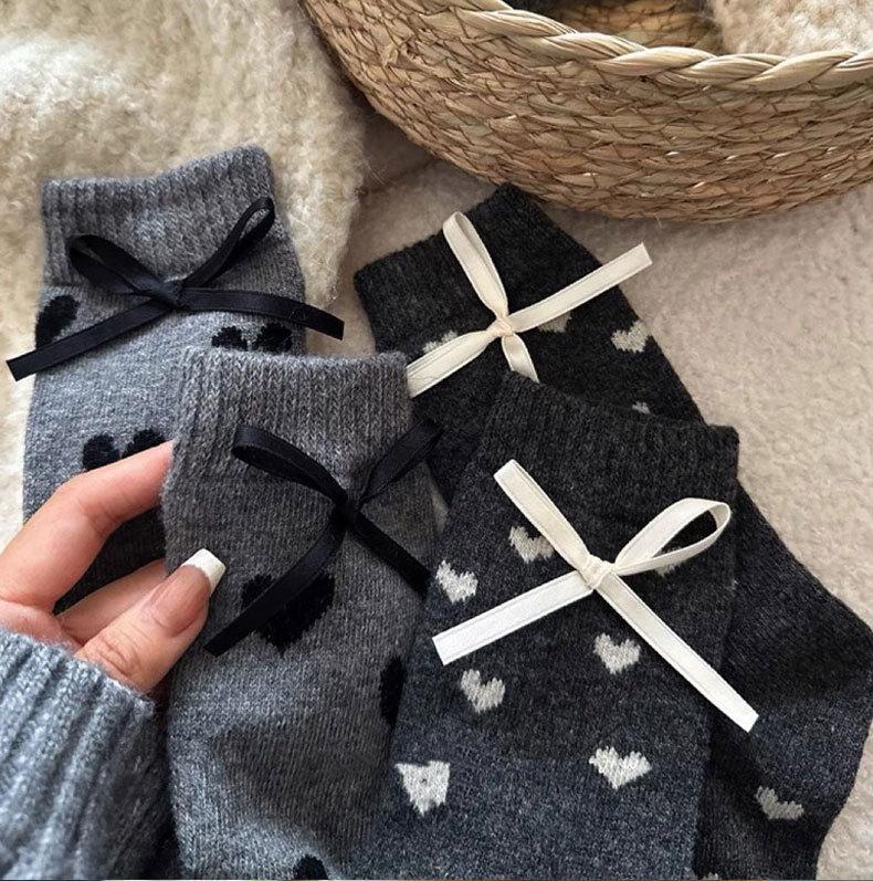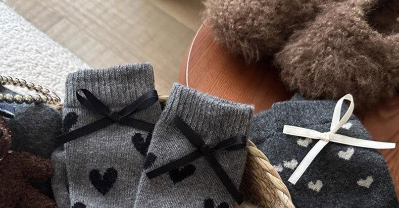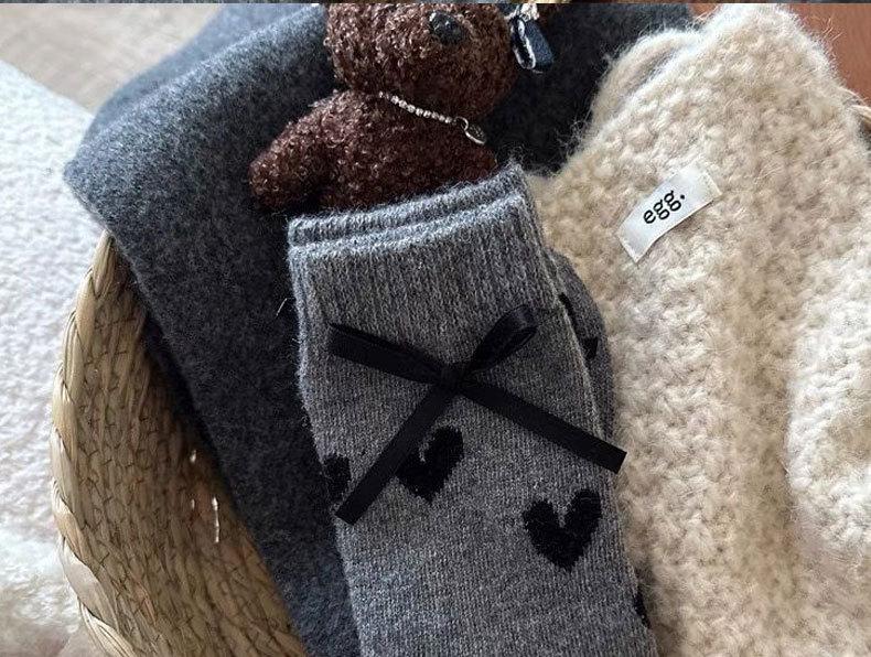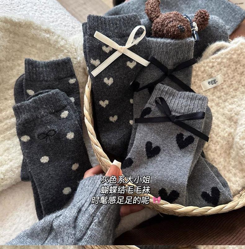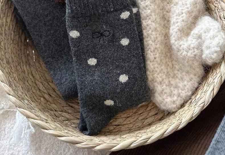 Calcetines de invierno para mujer, gruesos, con lazo de lunares, estilo coreano, cálidos, grises, apilados, de tubo medio