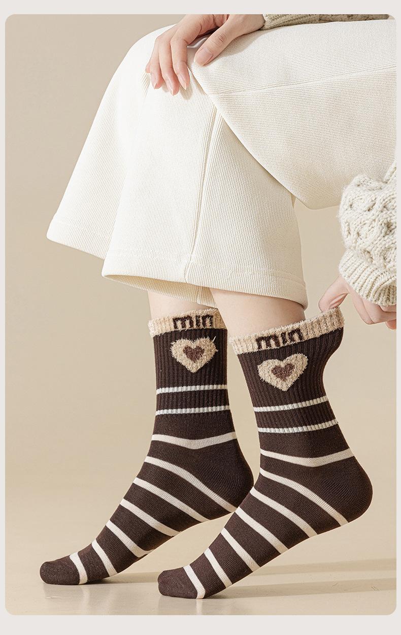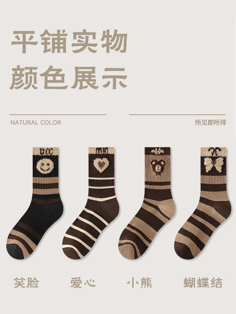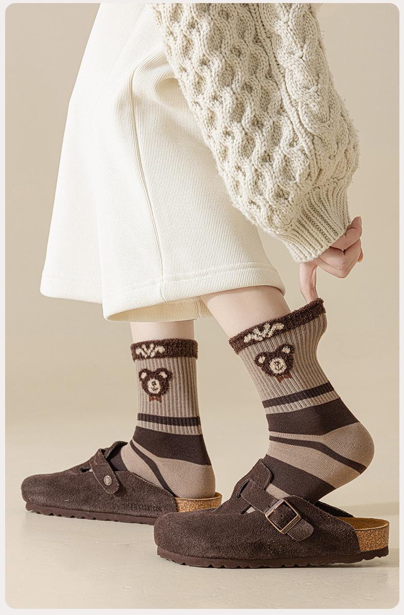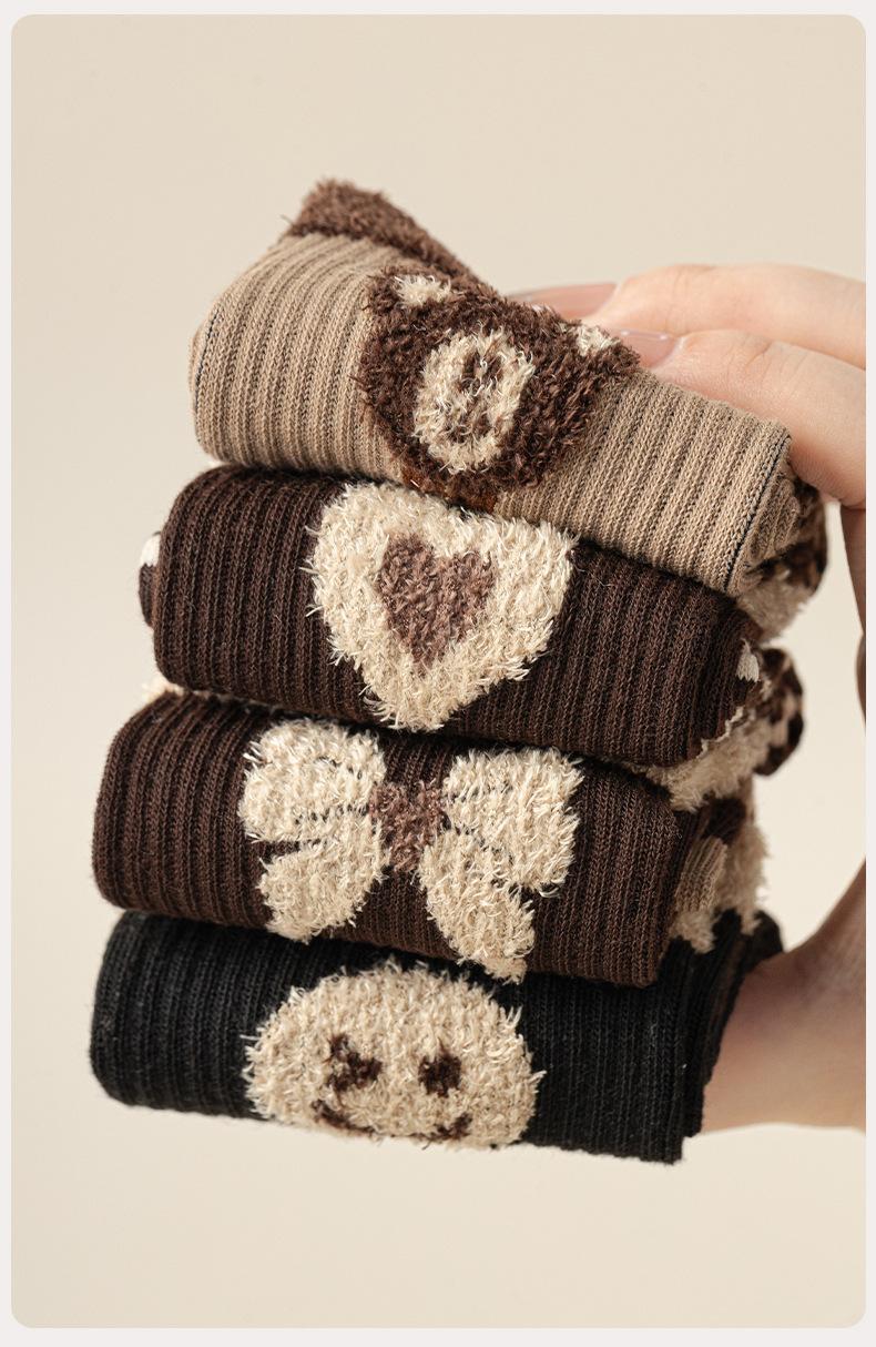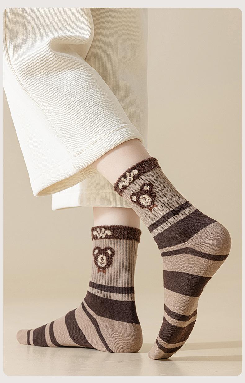 Calcetines de mujer, calcetines de moda de otoño e invierno, calcetines de marea, calcetines de algodón de color Maillard, calcetines de pelo de oso, venta al por mayor